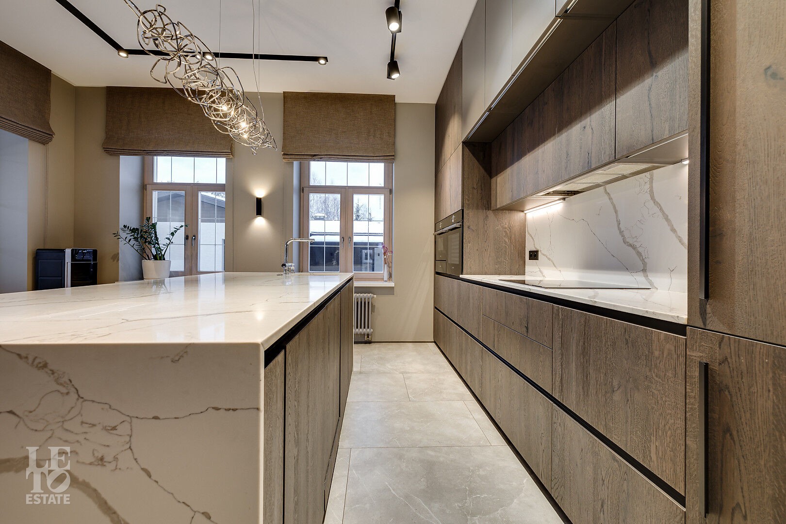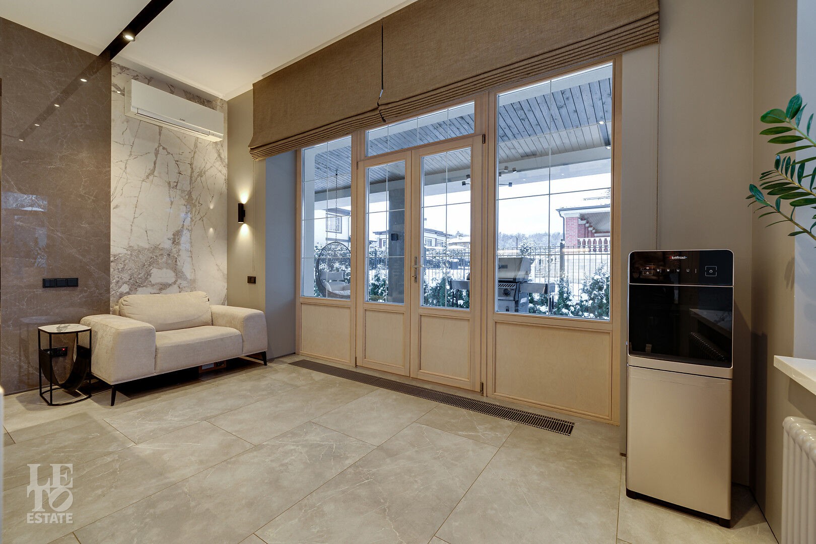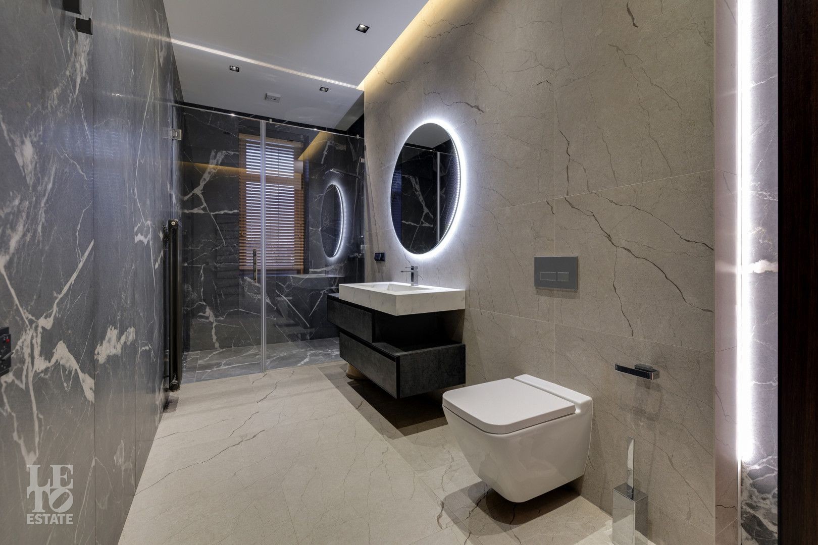 Дом полностью отделан и меблирован, готов к постоянному проживанию. Интерьер выполнен в современном стиле, в светлых, мягких пастельных тонах, с использованием декоративных элементов из дерева.