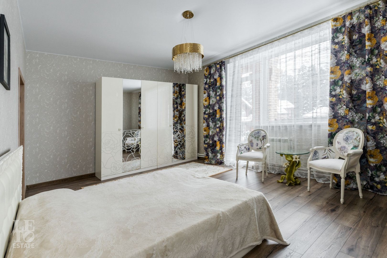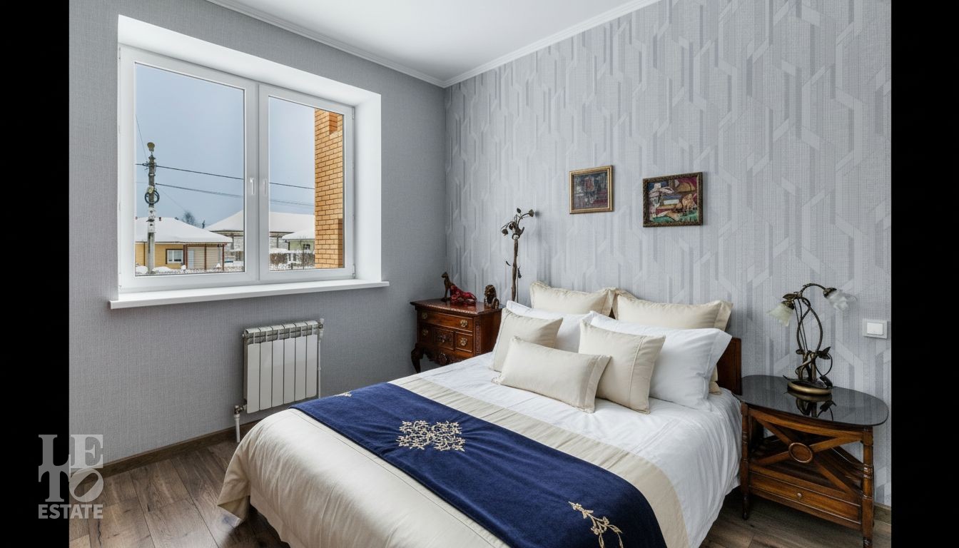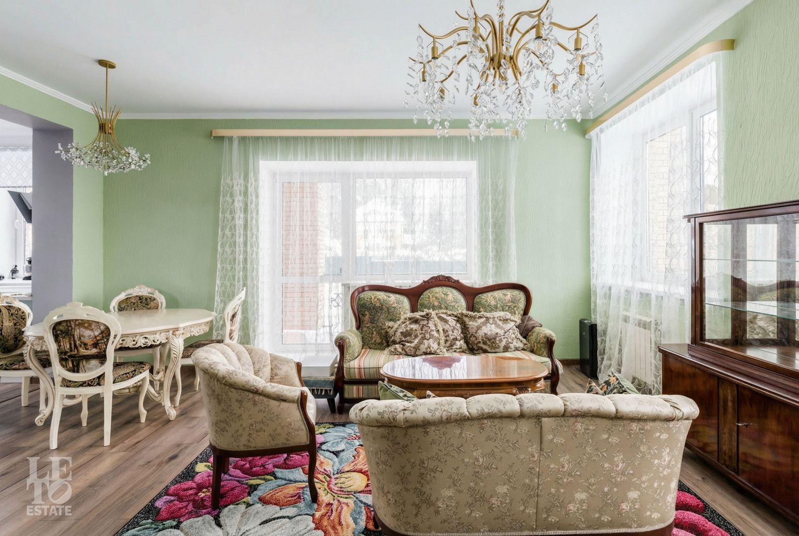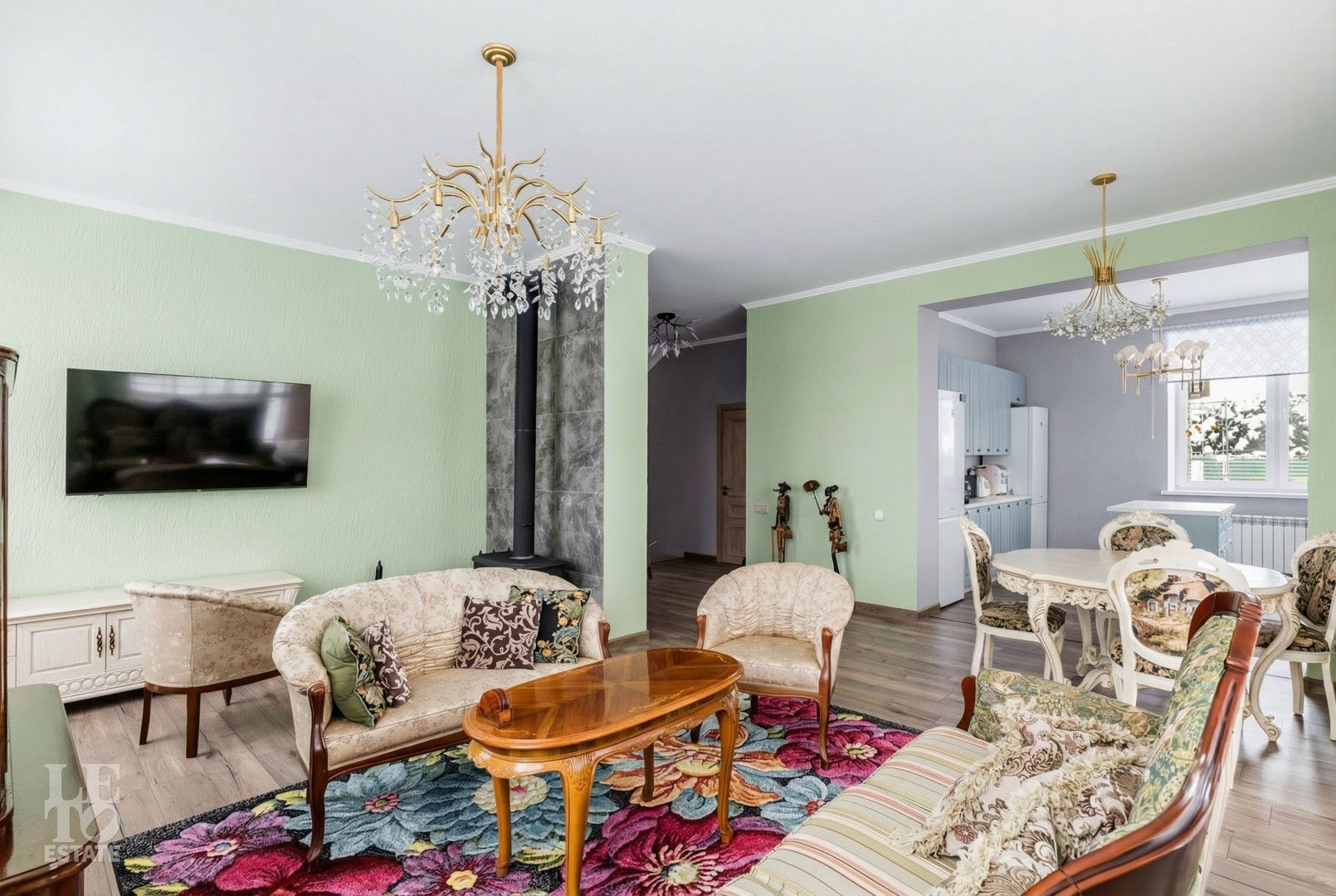 Двухэтажный кирпичный дом с цокольным этажом и гаражом на 2 машины. Общая площадь 372 м². Дом сдан в 2018 году, дизайнерский интерьер выполнен в 2023 году. Полная готовность к проживанию — с мебелью и техникой.