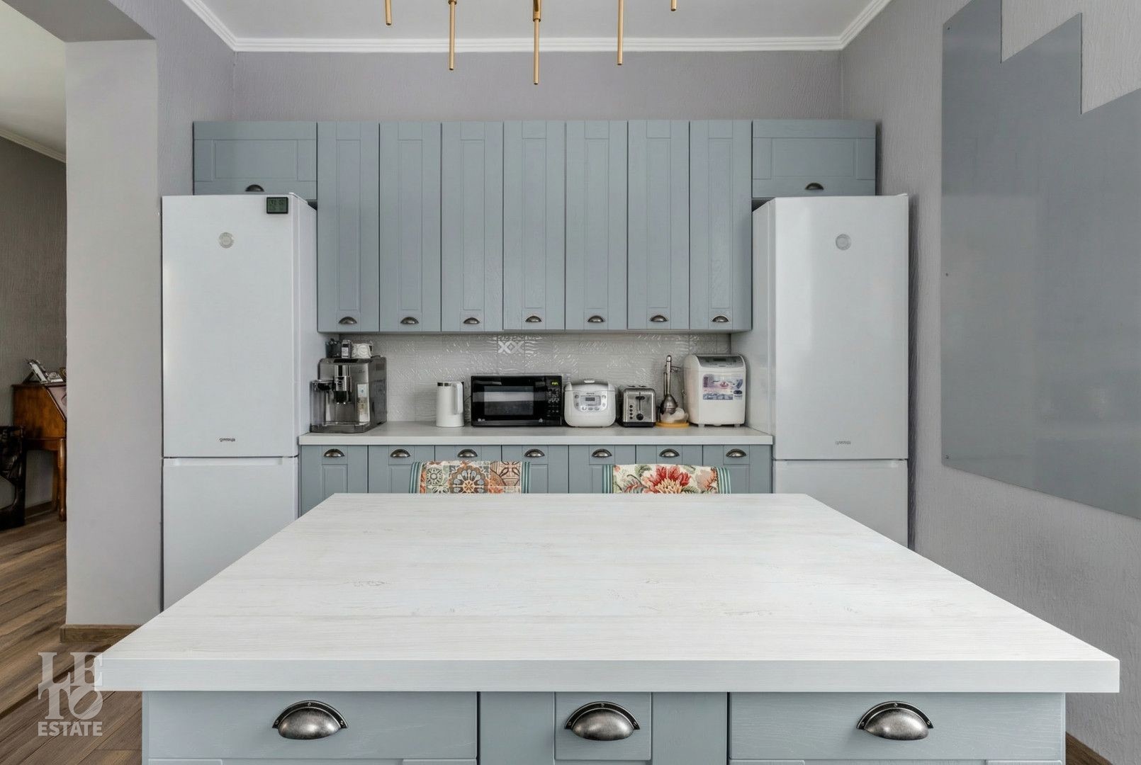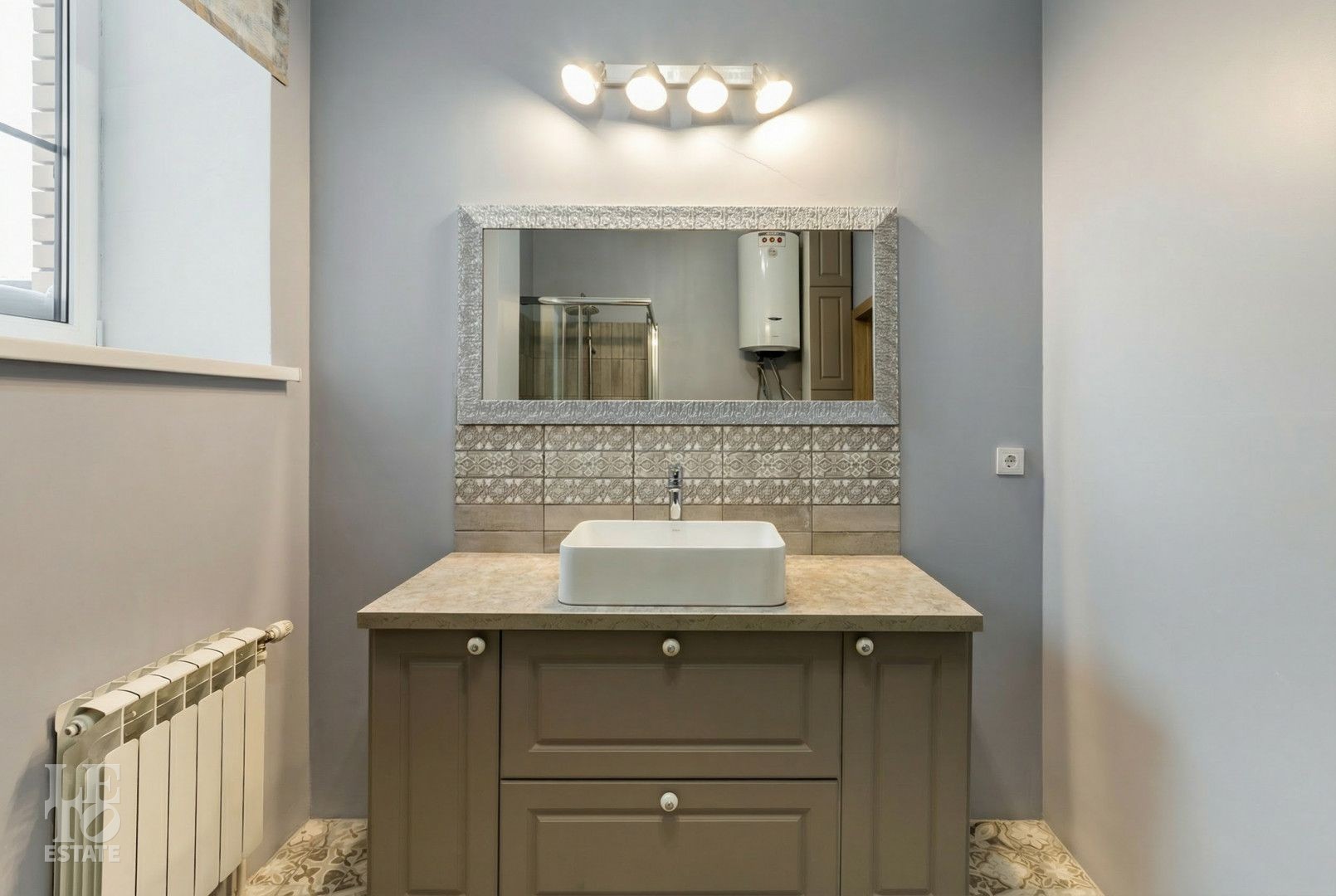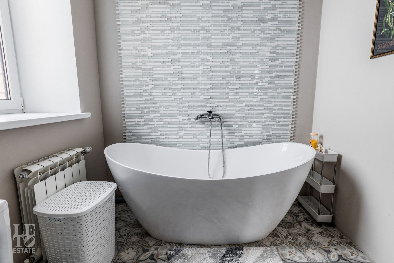 Двухэтажный кирпичный дом с цокольным этажом и гаражом на 2 машины. Общая площадь 372 м². Дом сдан в 2018 году, дизайнерский интерьер выполнен в 2023 году. Полная готовность к проживанию — с мебелью и техникой.