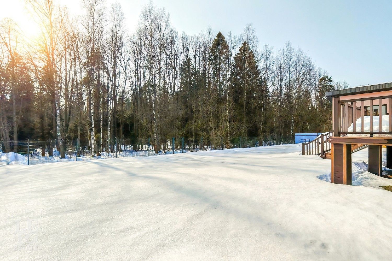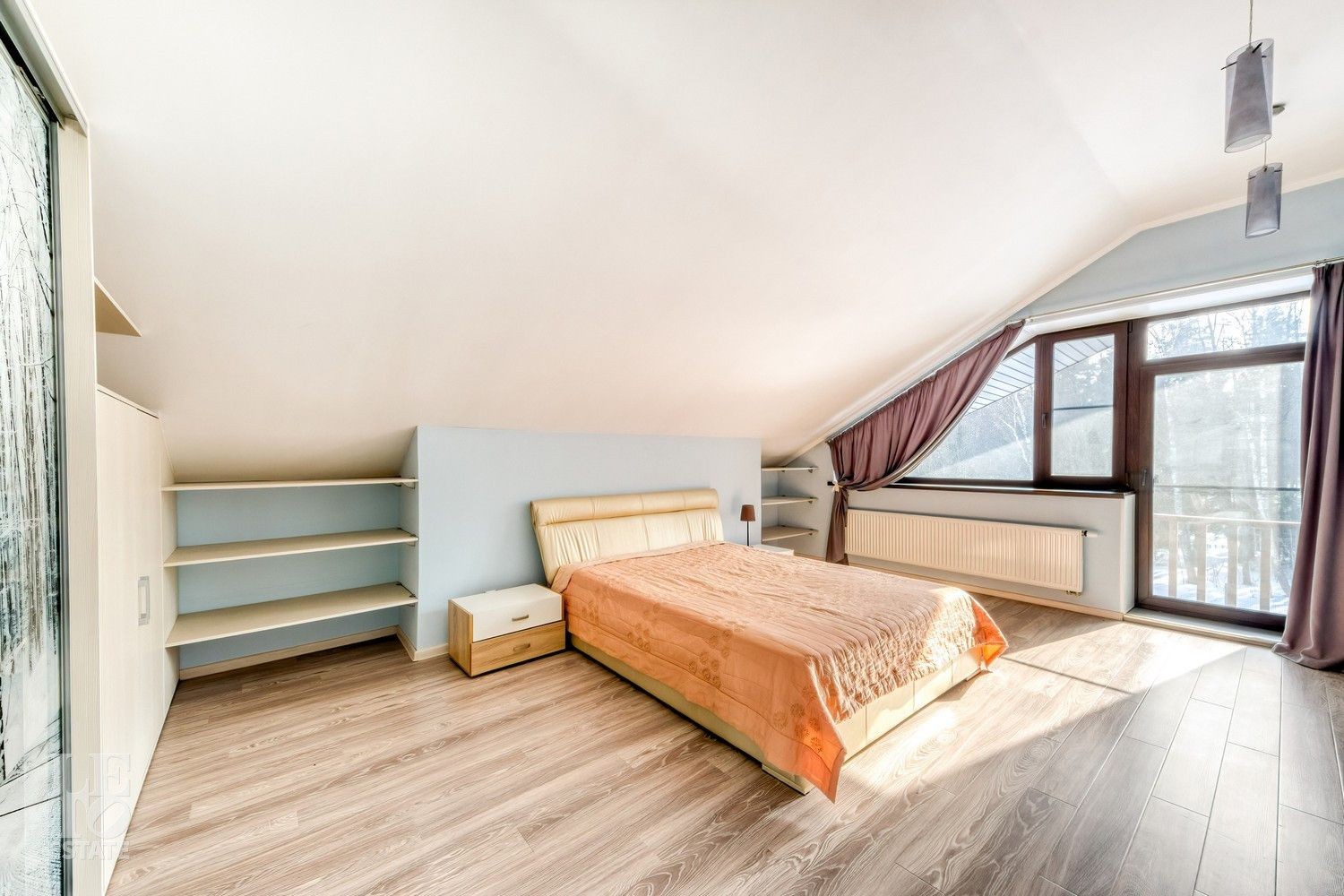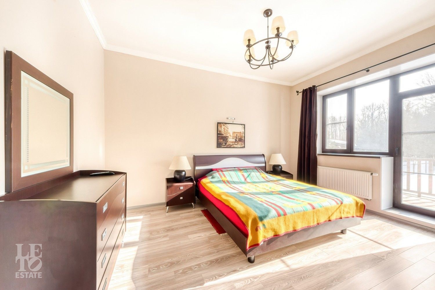 Простор и свет: Продуманная планировка включает 6 спален и 5 санузлов. Центр притяжения дома — гостиная со «вторым светом»: высота потолка в максимальной точке достигает 7,5 метров, а панорамное окно в пол открывает живописный вид на лес;
