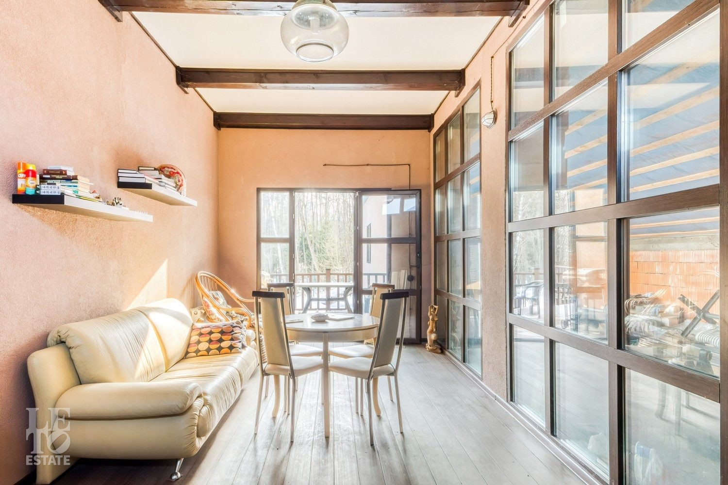 Открытые пространства: Для любителей загородной жизни — две летние террасы с выходом из дома, а также два балкона: один с видом на живописный поселок, другой — на лес и пруд.