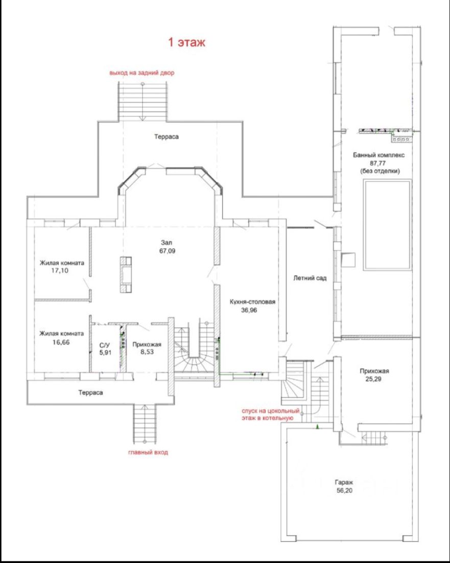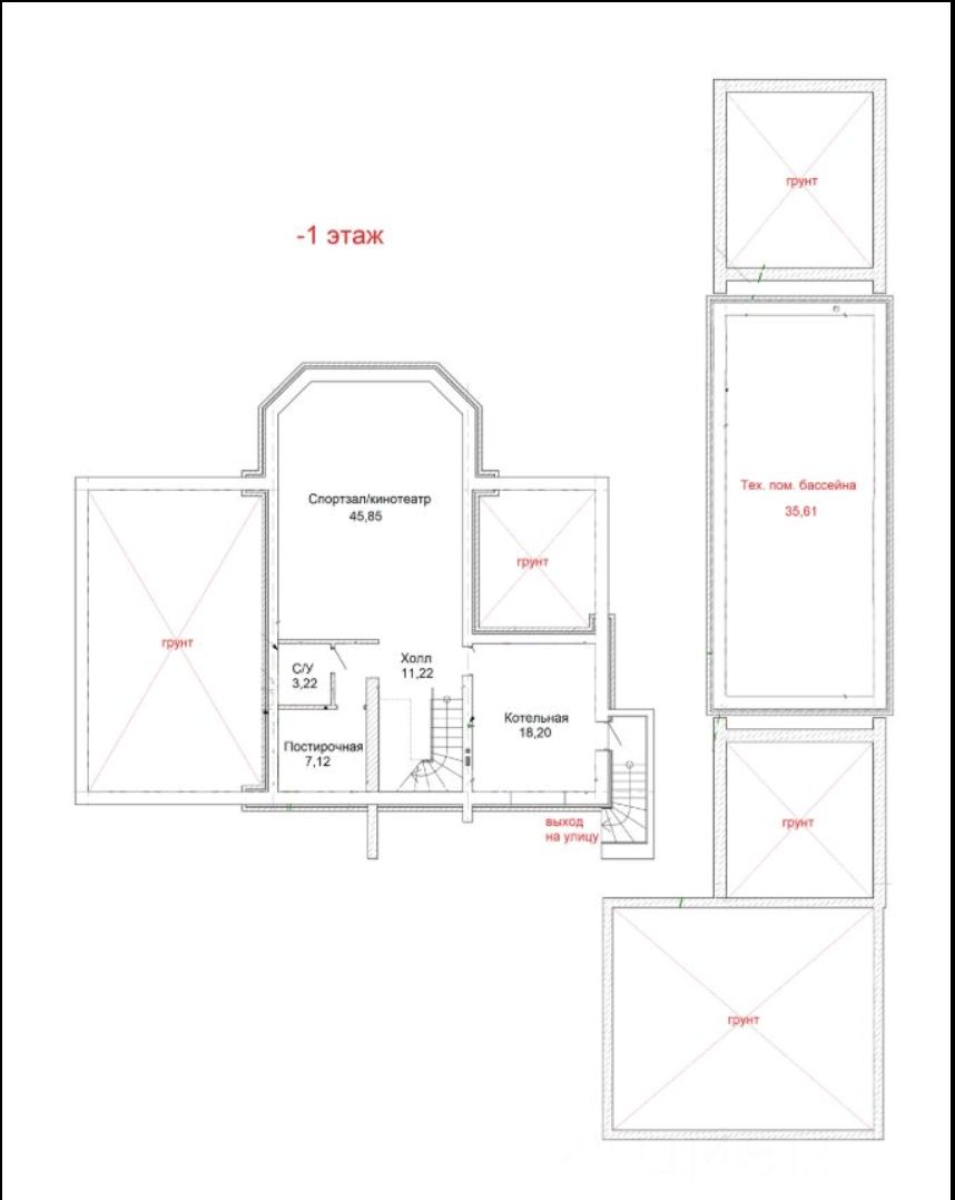 Цокольный этаж: холл, санузел, постирочная, свободное помещение, котельная с выходом на улицу;