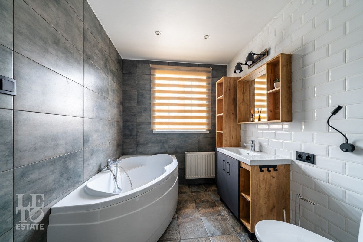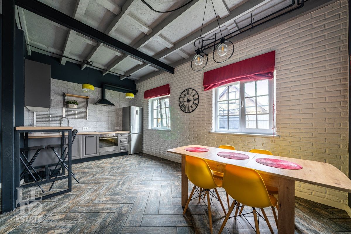 В дуплексе выполнен качественный свежий ремонт в стиле Лофт. На первом этаже расположена просторная кухня, гостиная, столовая, кабинет, санузел, гардеробная и постирочная комната. На втором этаже три комфортных спальни и один совмещенный санузел с ванной. Дуплекс отлично подойдет для комфортного проживания.