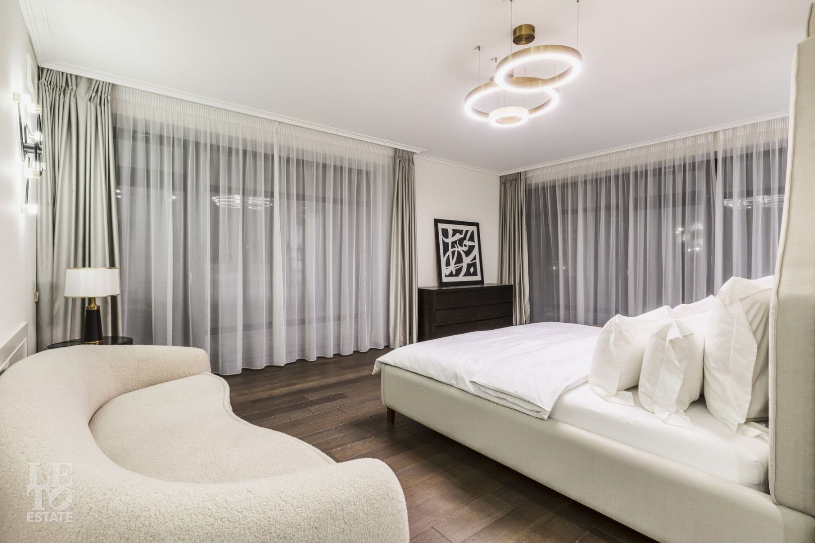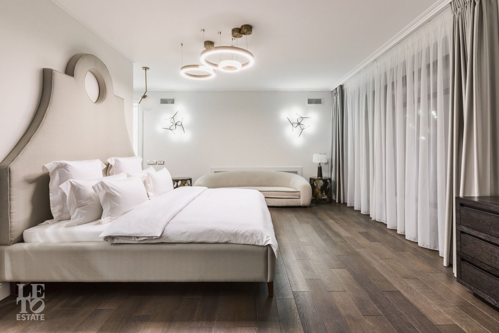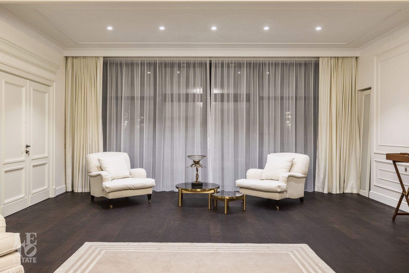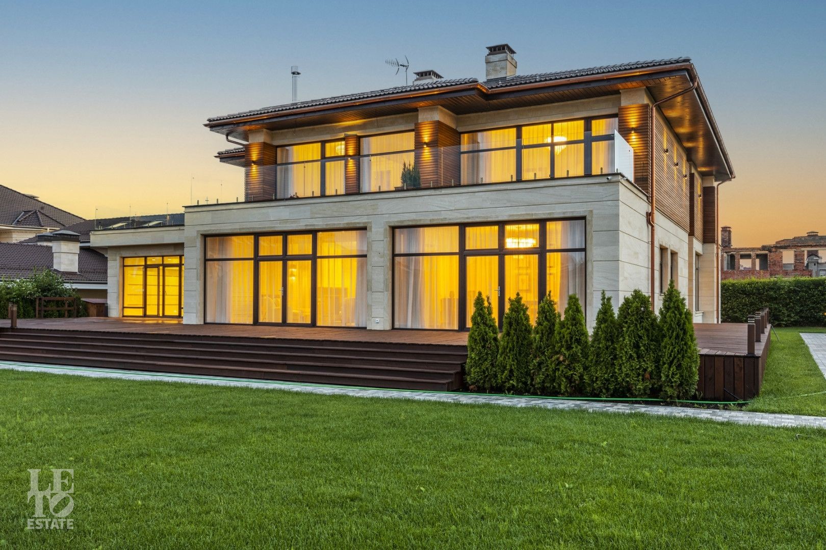 Во внутренней отделке дома использованы натуральные и дорогостоящие материалы - натуральный камень, мрамор и древесина редких пород. Кухня оборудована всей необходимой встроенной техникой ведущих мировых производителей. В доме представлено шесть спален, пять из которых оборудованы гардеробными и санузлами с ванными. Приятным дополнение к дому служит SPA-зона с бассейном и сауной. Для вашего удобства отапливаемый гараж на два авто и комната для персонала расположены в отдельной зоне дома.