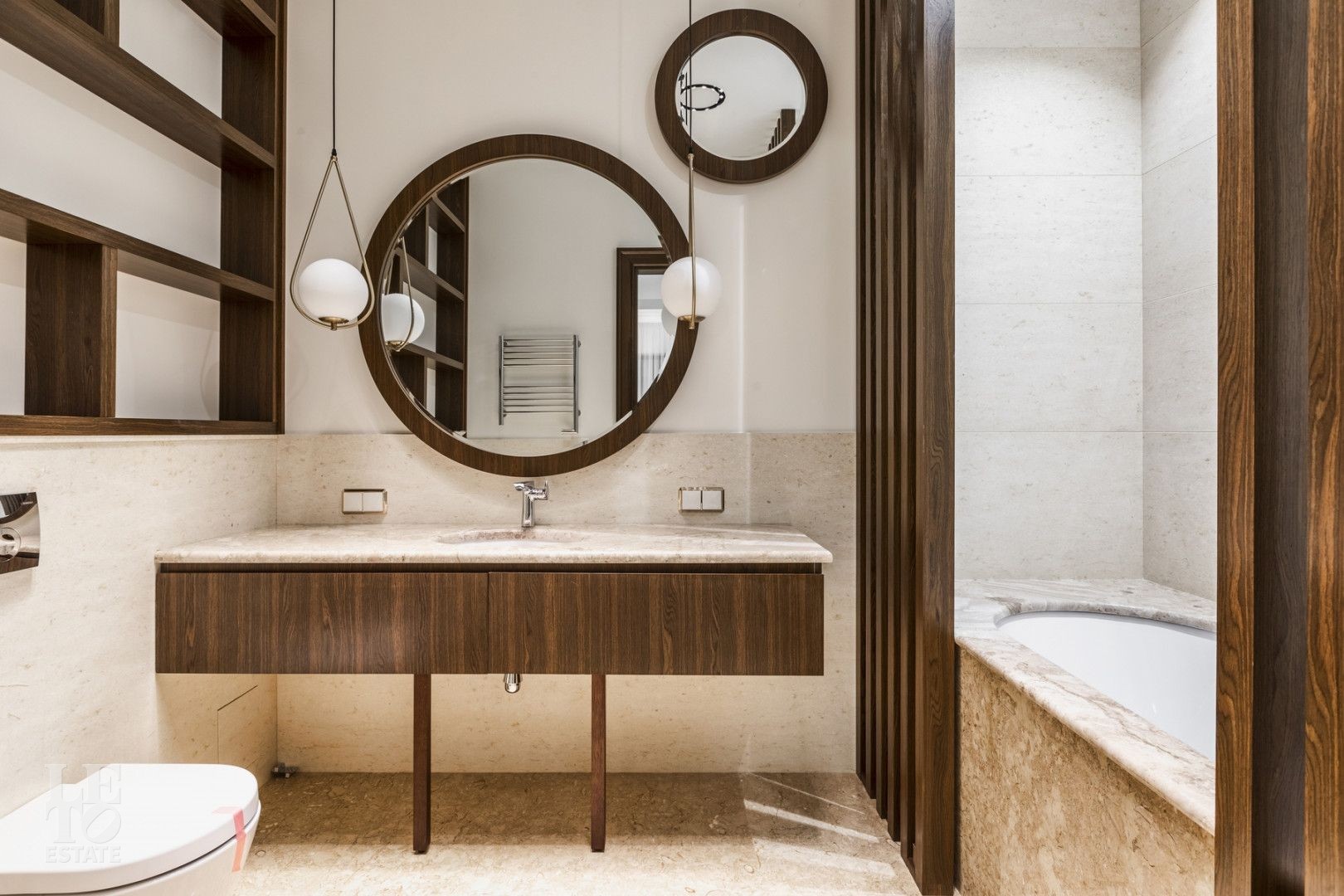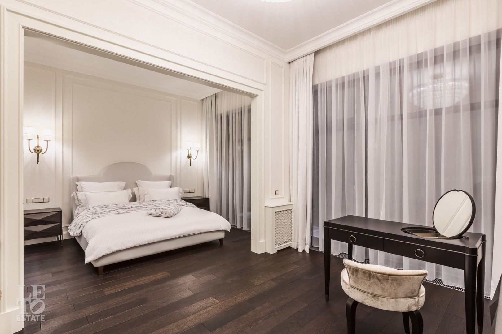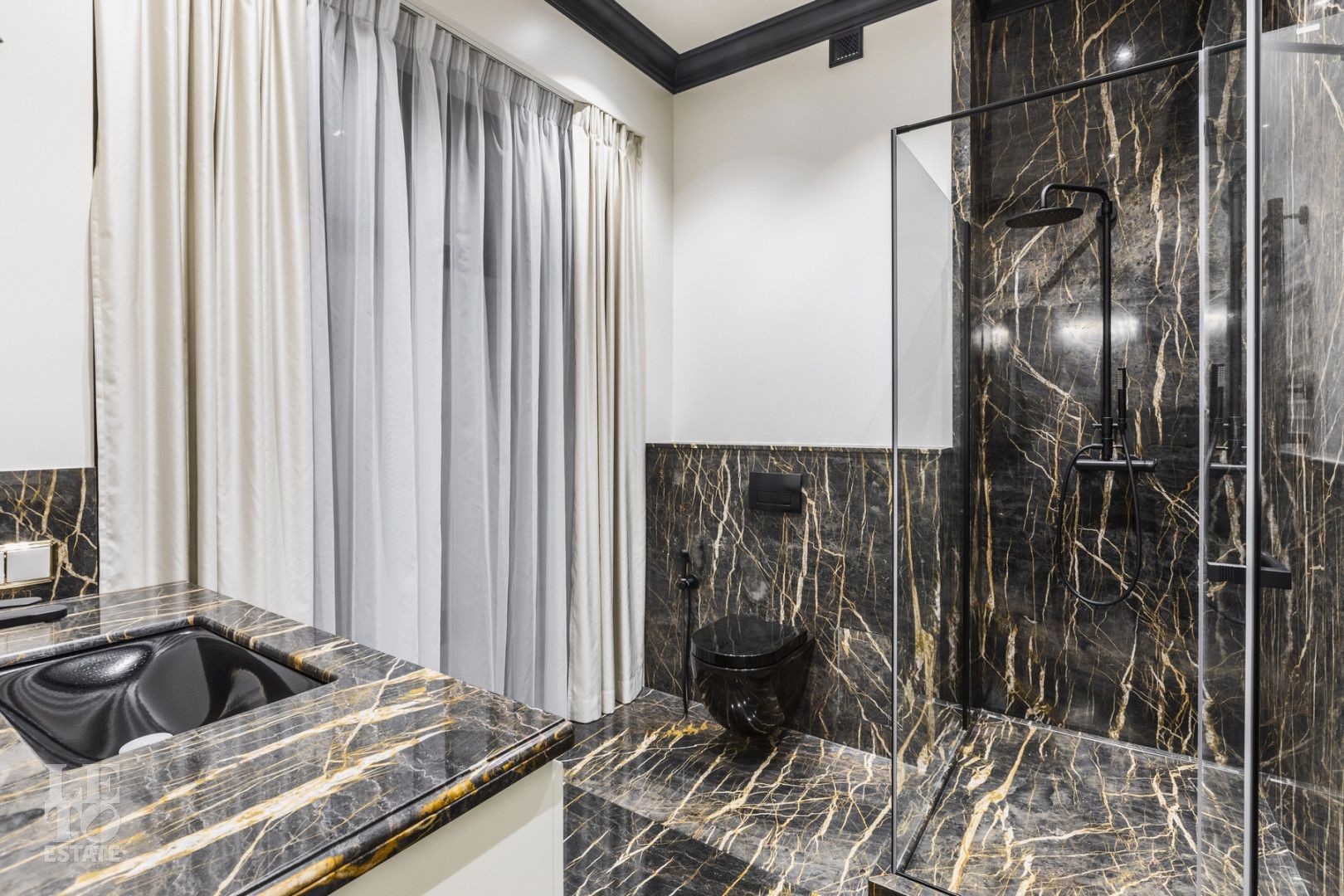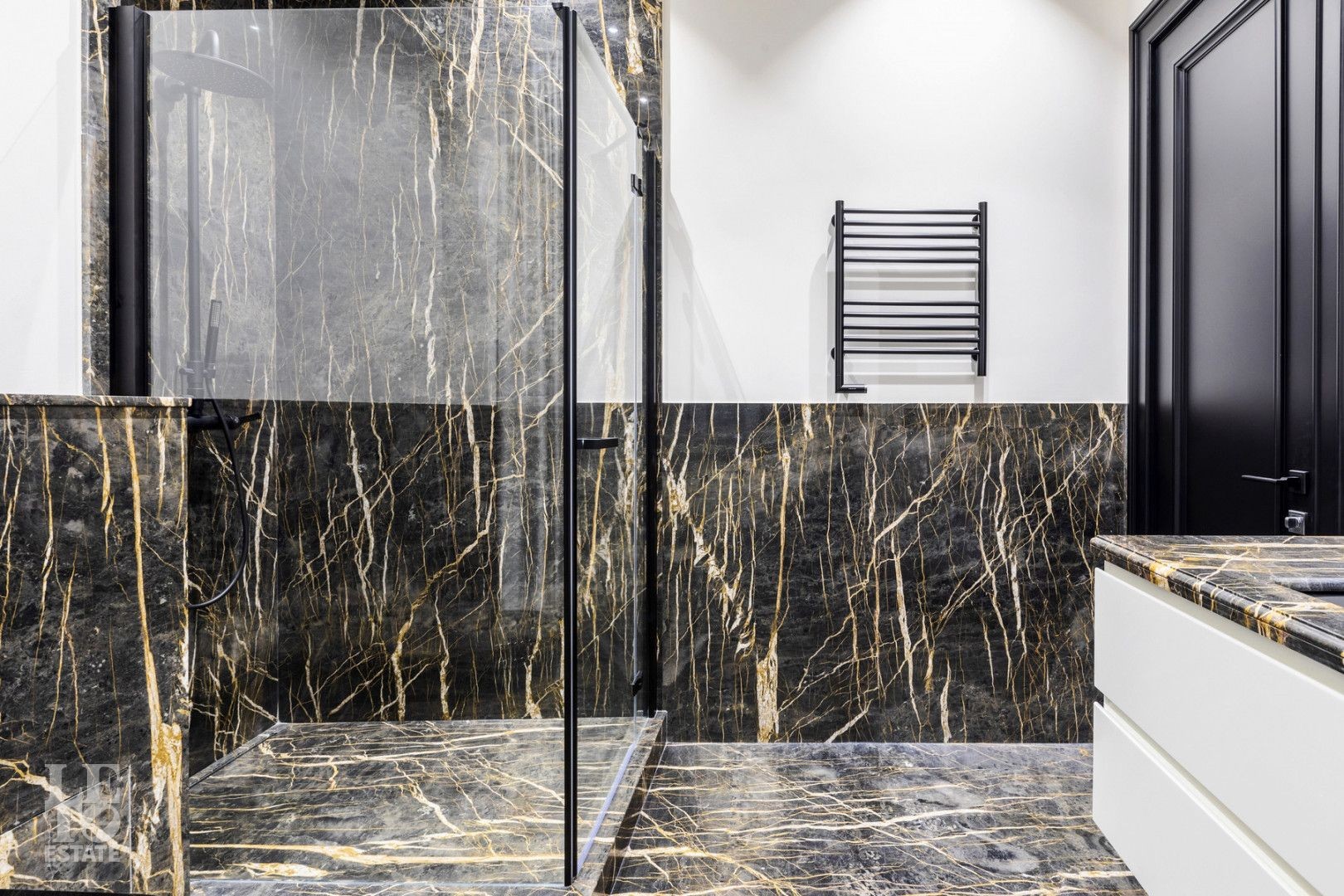 Во внутренней отделке дома использованы натуральные и дорогостоящие материалы - натуральный камень, мрамор и древесина редких пород. Кухня оборудована всей необходимой встроенной техникой ведущих мировых производителей. В доме представлено шесть спален, пять из которых оборудованы гардеробными и санузлами с ванными. Приятным дополнение к дому служит SPA-зона с бассейном и сауной. Для вашего удобства отапливаемый гараж на два авто и комната для персонала расположены в отдельной зоне дома.