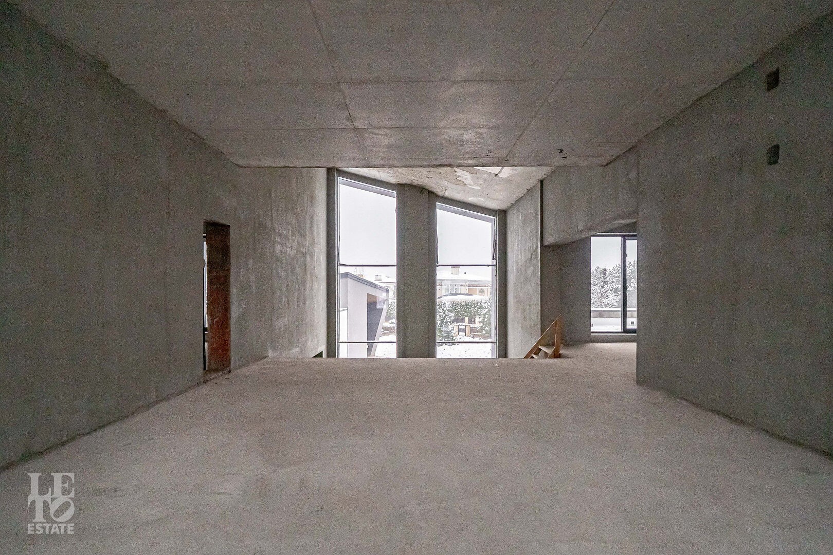 Дом представлен под отделку, что позволяет создать собственный эстетический сценарий и выстроить индивидуальную логику помещений. Просторные помещения, продуманная геометрия и большие световые проёмы дают широкие возможности для будущего интерьера.