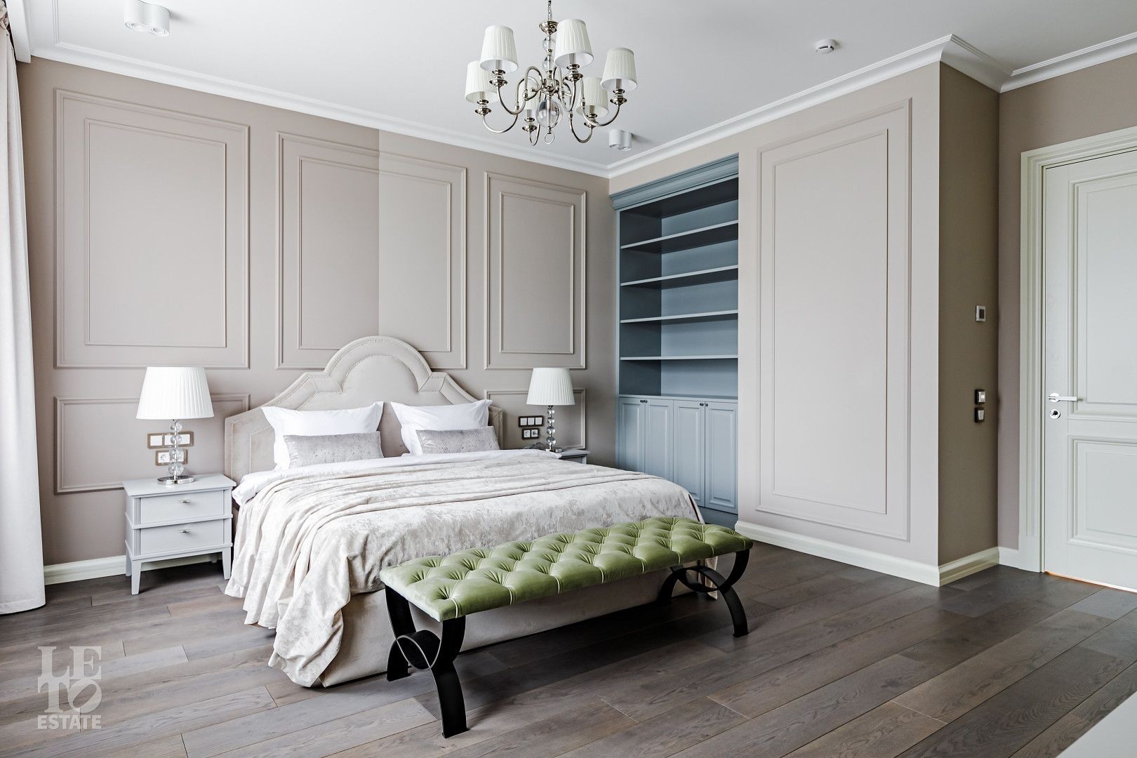 Проект выполнен в стиле американской классики, который сочетает в себе элегантность классических элементов и современную функциональность.