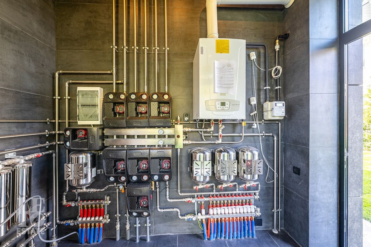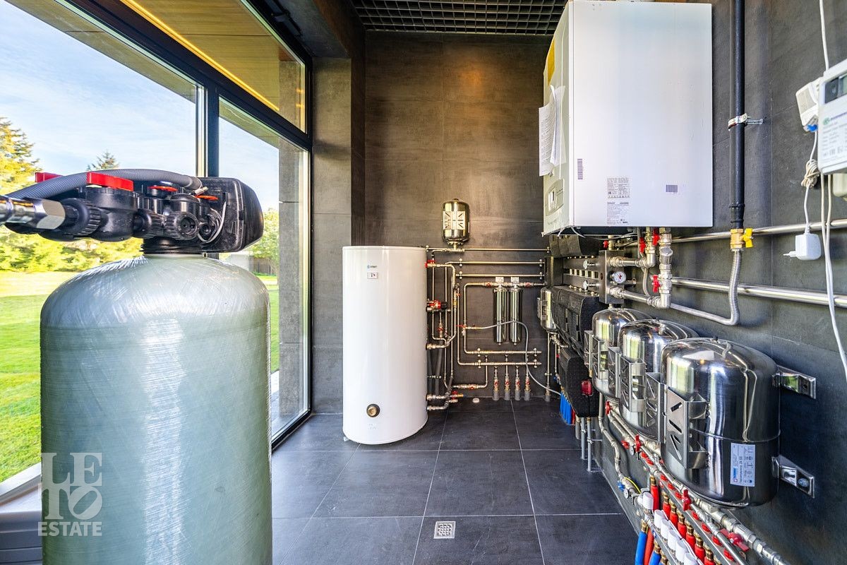 Все центральные коммуникации: газоснабжение, электричество, водопровод, канализация. Организована котельная, установлено оборудование. К дому пристроен гараж для двух автомобилей.