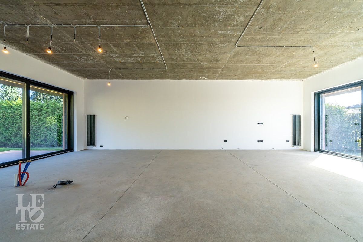 Большие панорамные окна Alutech с электроприводом и высокие потолки 4,1 м создают в доме больше пространства и света. Теплые полы разведены на двух этажах с установкой регуляторов в каждом помещении. Дополнительно отапливаются террасы.