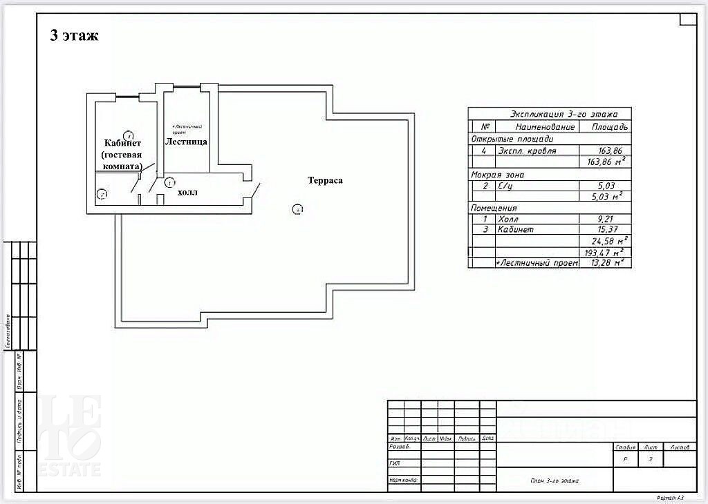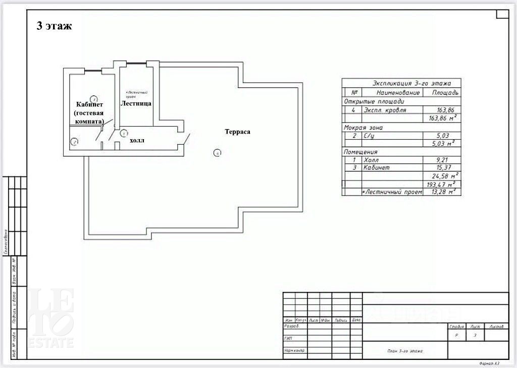 Третий этаж - кабинет/гостевая спальня, с с/у, выход на открытую террасу.