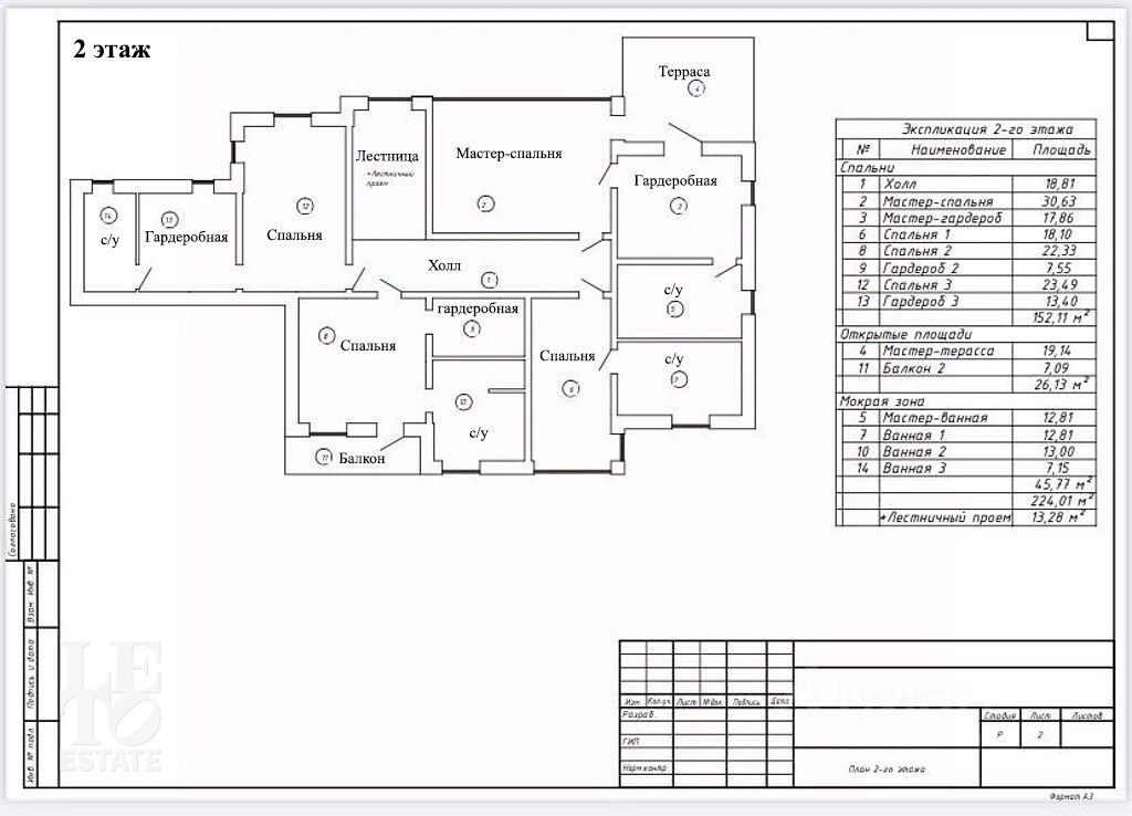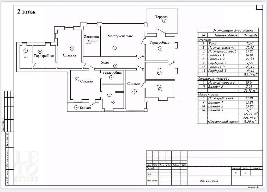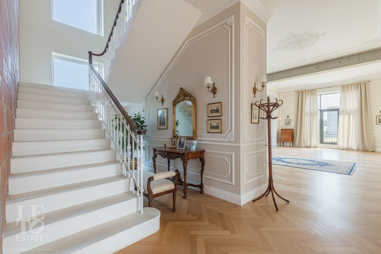 Второй этаж - мастер-спальня, со своей ванной комнатой, гардеробной, и выходом на просторную террасу, две спальни со своим с/у и гардеробной, спальня со своим с/у.