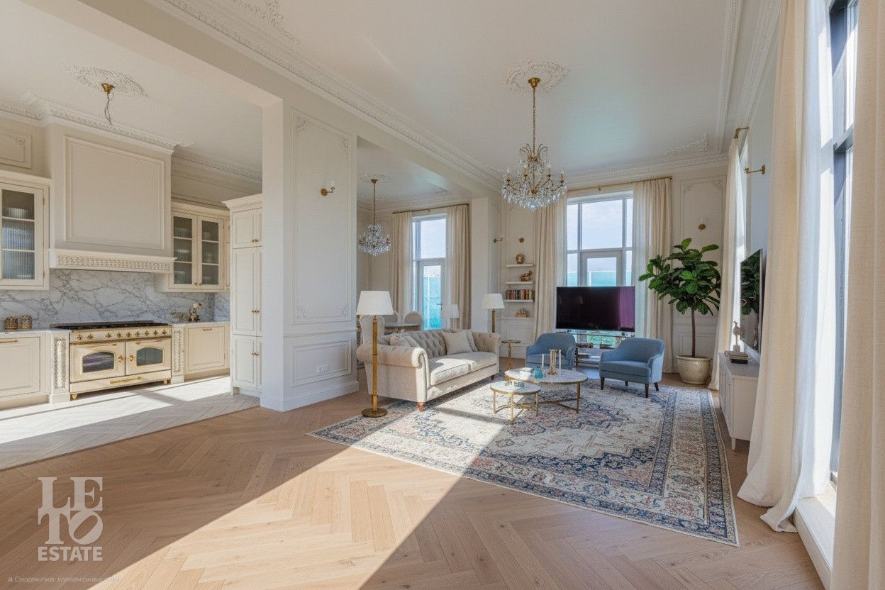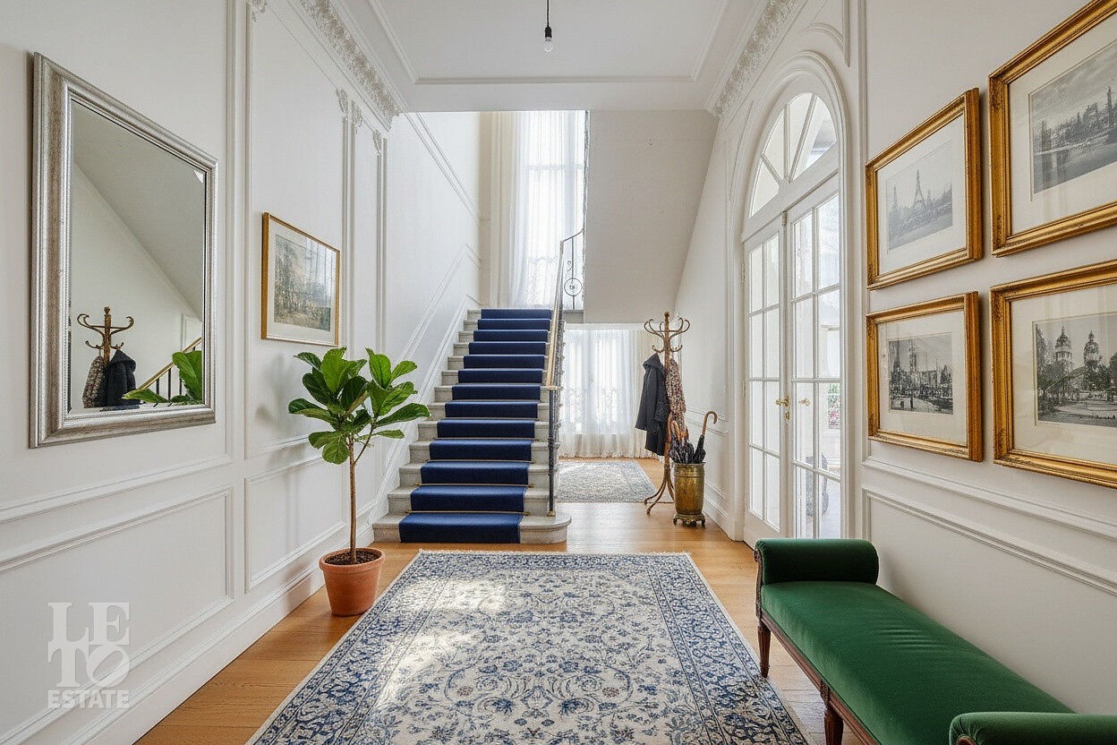 Высота потолков на первом этаже составляет 4,3м, на втором 3,75, на третьем 3,3, что делает помещения очень светлыми и просторными