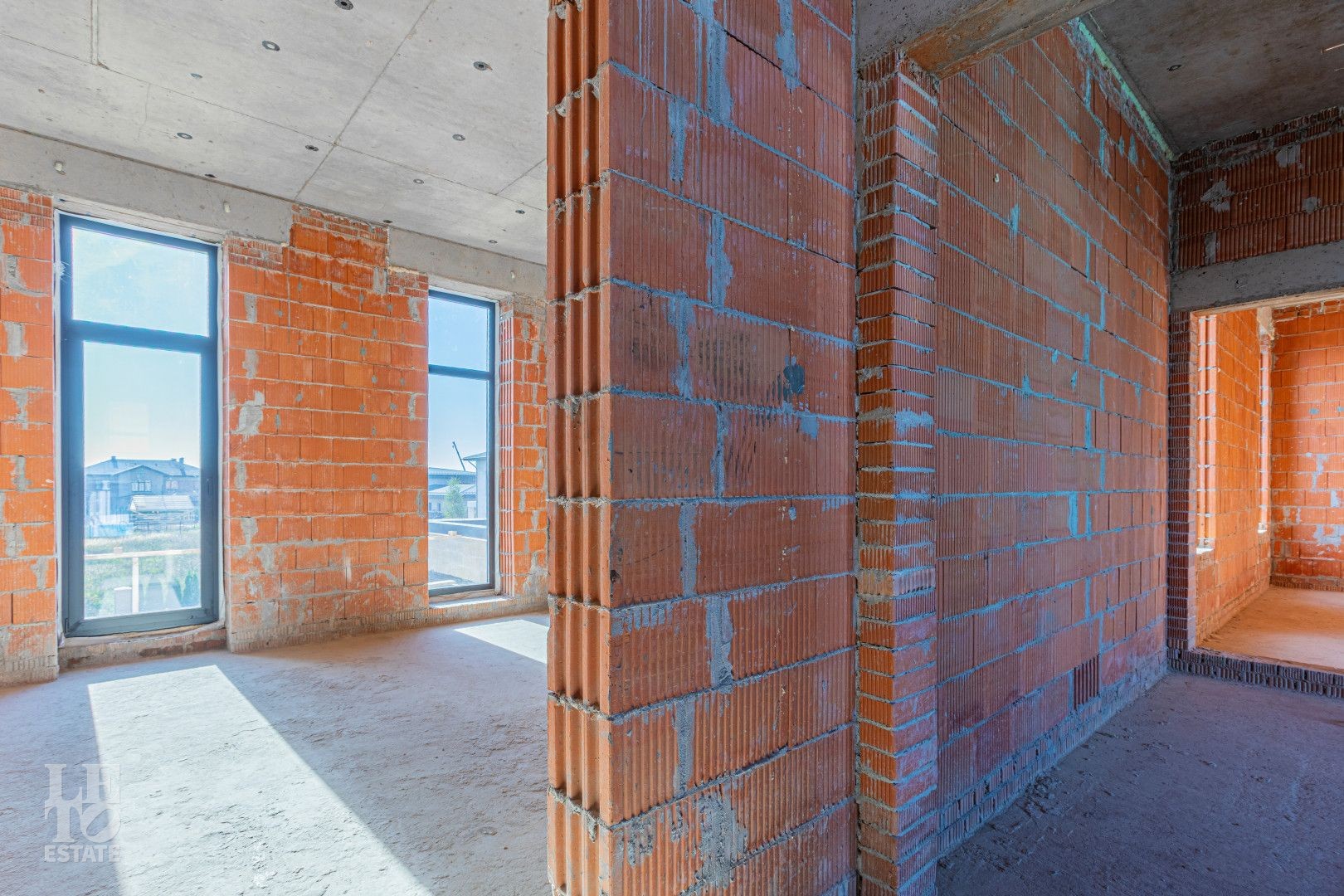 Внутри дома возведены все перегородки, отлита монолитная лестница.