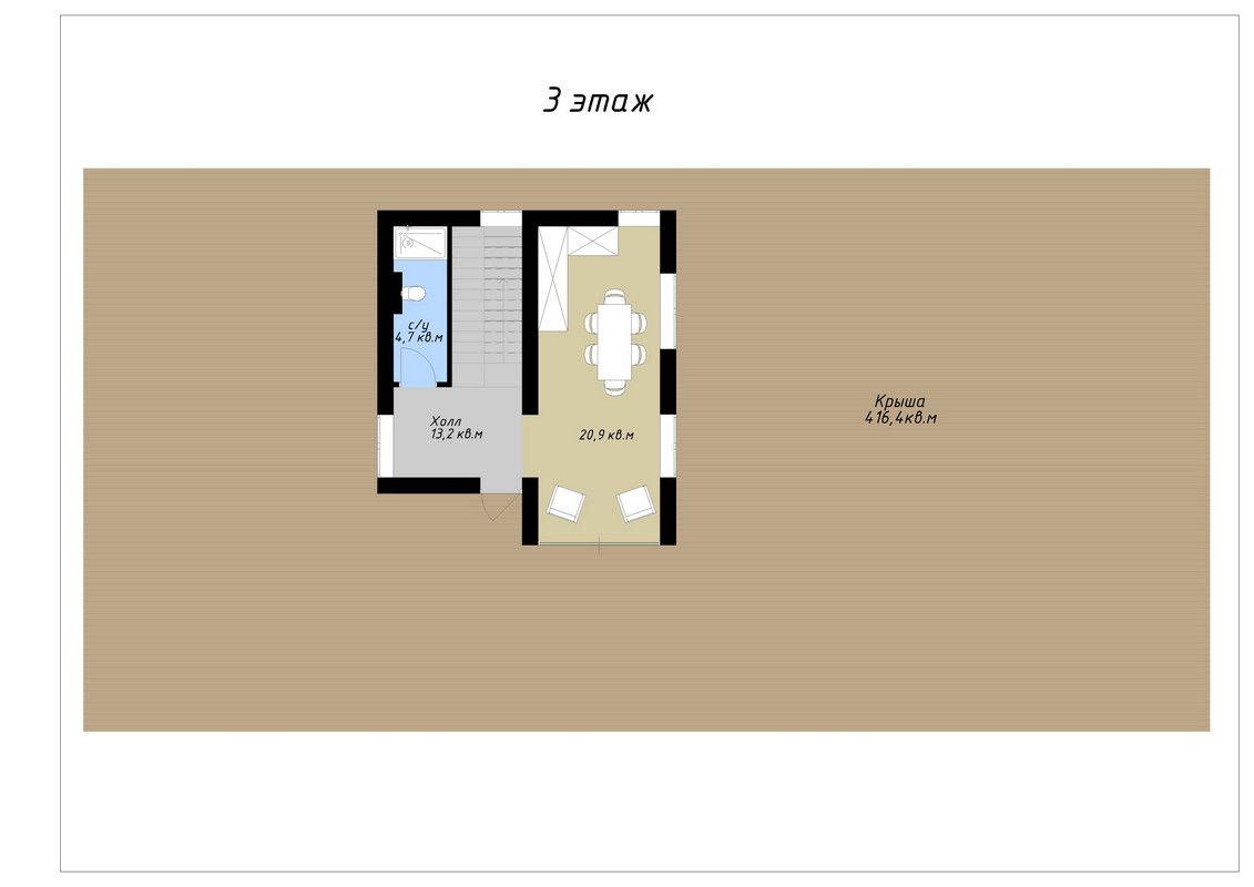 Эксплуатируемая кровля, барная зона и санузел