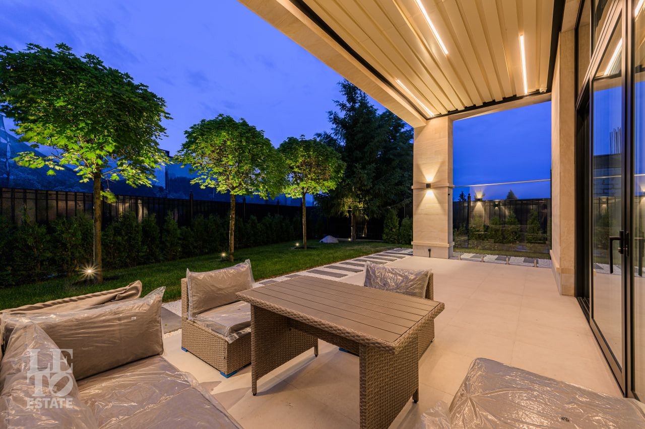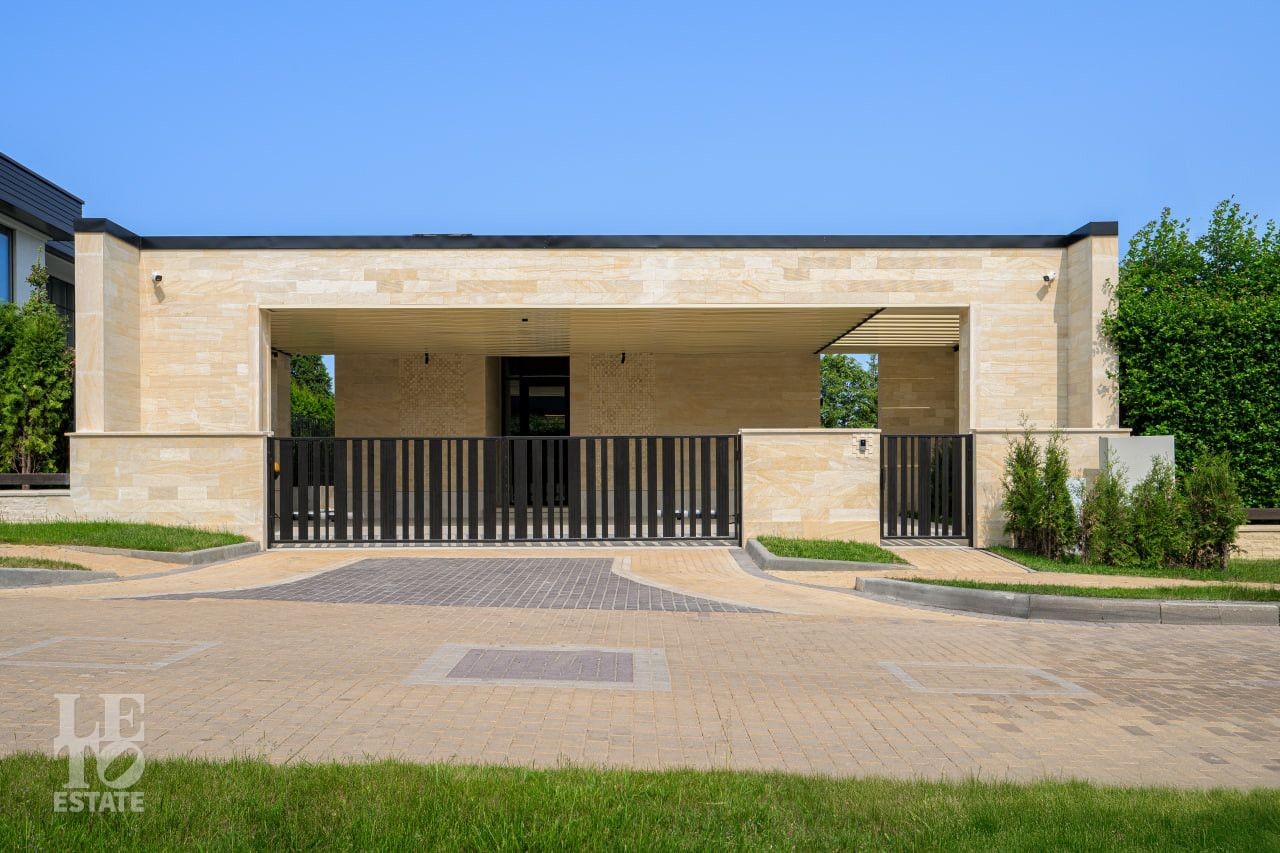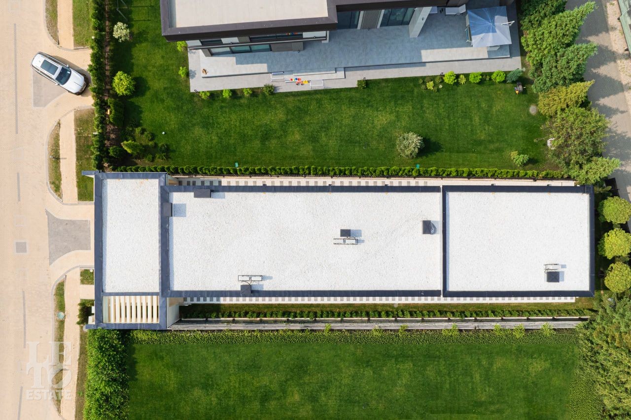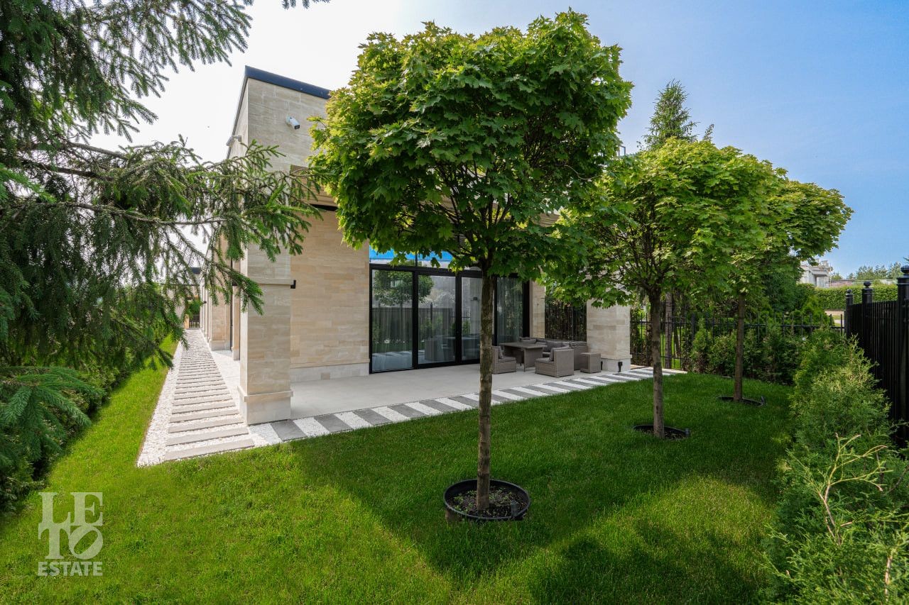 На участке произведены все ландшафтные работы: дренажные системы, газон, освещение участка, обогрев уличной площадки для автомобилей.
