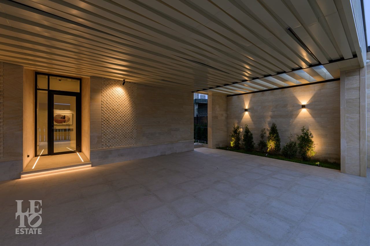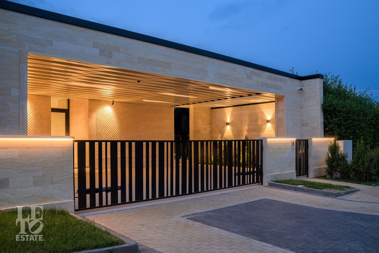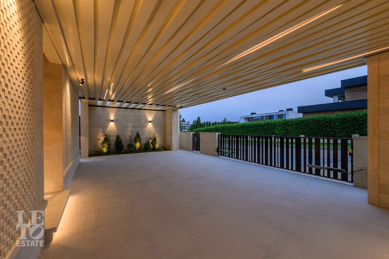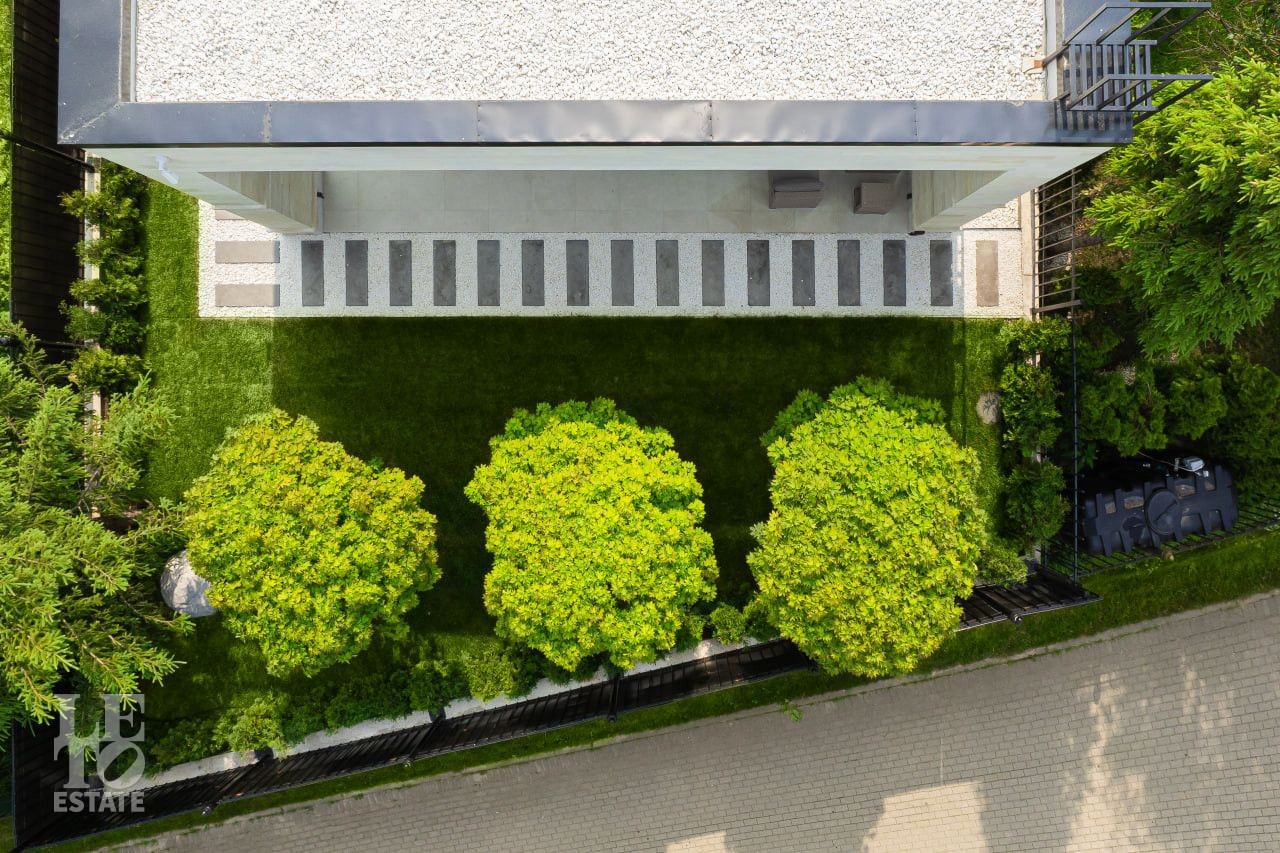 На участке произведены все ландшафтные работы: дренажные системы, газон, освещение участка, обогрев уличной площадки для автомобилей.
