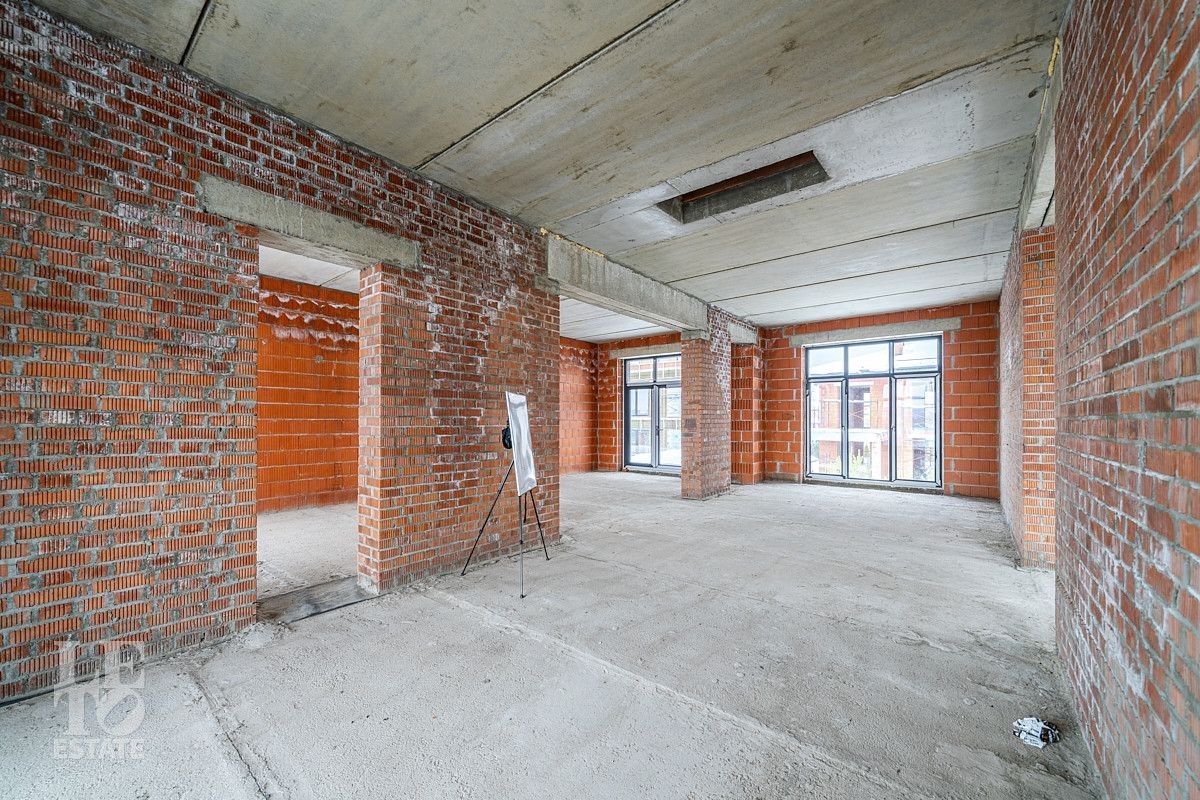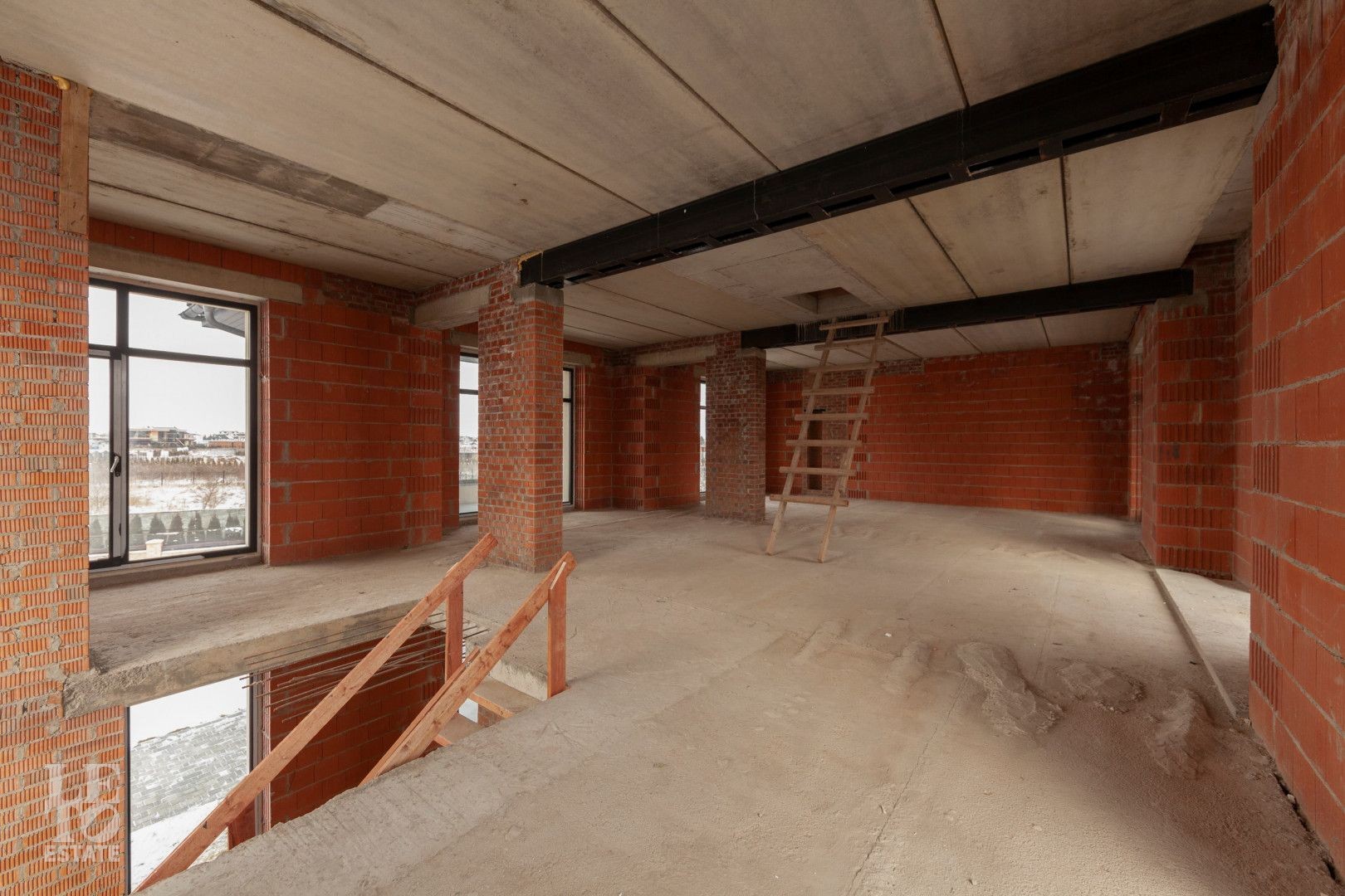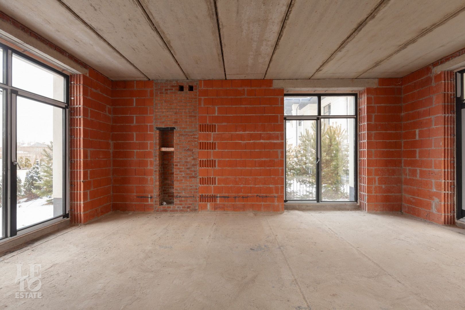 Архитектурный проект дома выполнен в современном стиле Райта. Фундамент дома железобетонный свайный с монолитным ростверком. Стены построены из керамических блоков POROTERM 51. Стропильная система кровли выполнена из сухого хвойного бруса, обработанного огнебиозащитным составом (ГОСТ 20022.6-93), покрыта черепицей BRAAS. Высота потолков составляет 3,3м. На первом и втором этаже есть террасы с стеклянным ограждением. Дом облицован натуральным камнем. Дом продается без отделки.