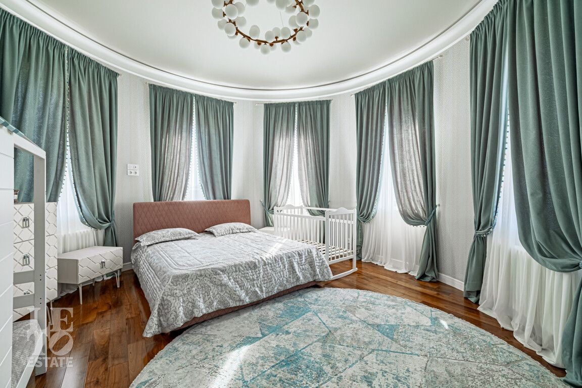 Второй этаж: две спальни с собственными гардеробными и санузлами, две спальни, санузел, гардеробная, кабинет с сейфовой комнатой и санузлом;