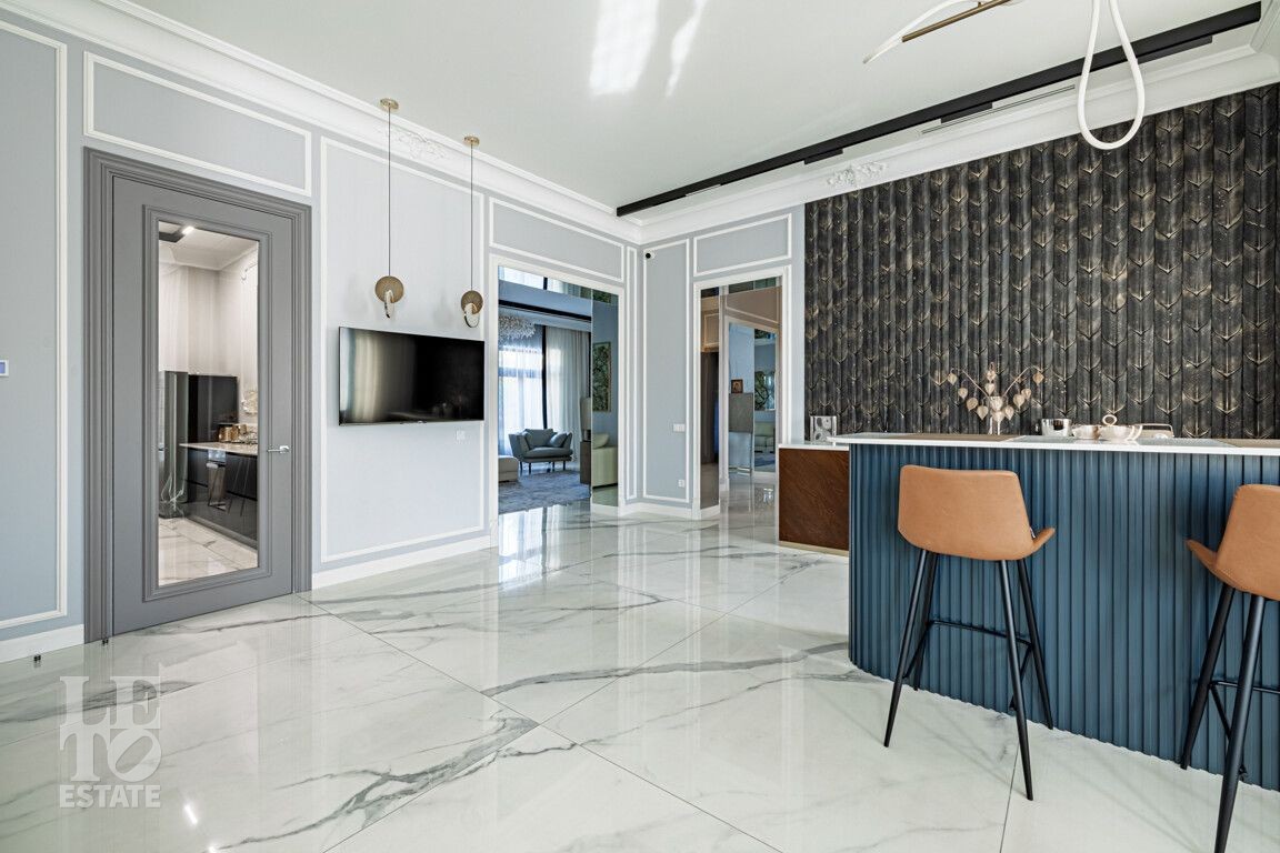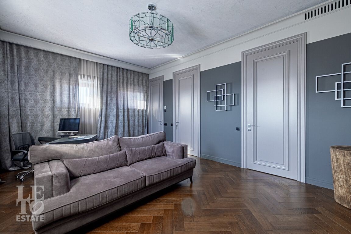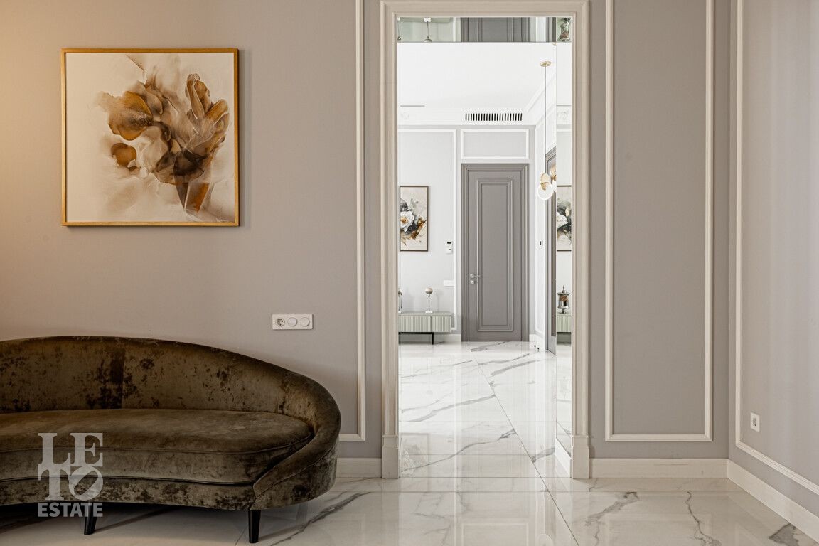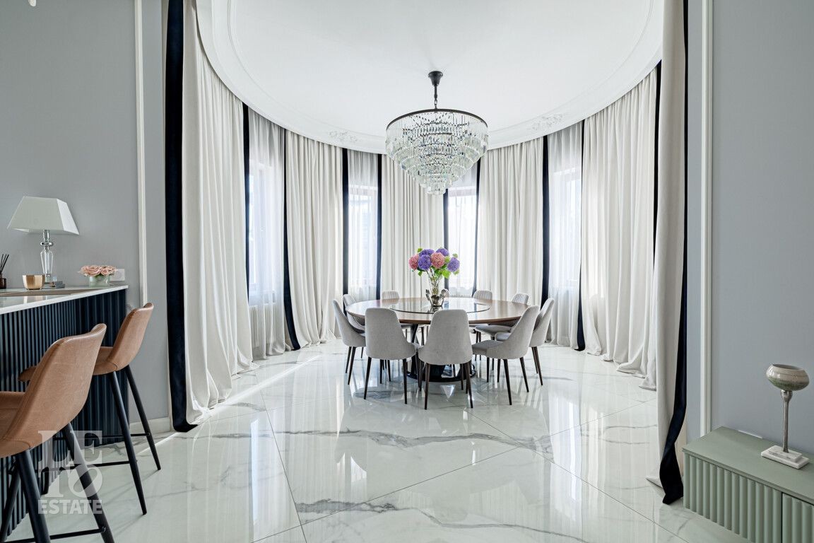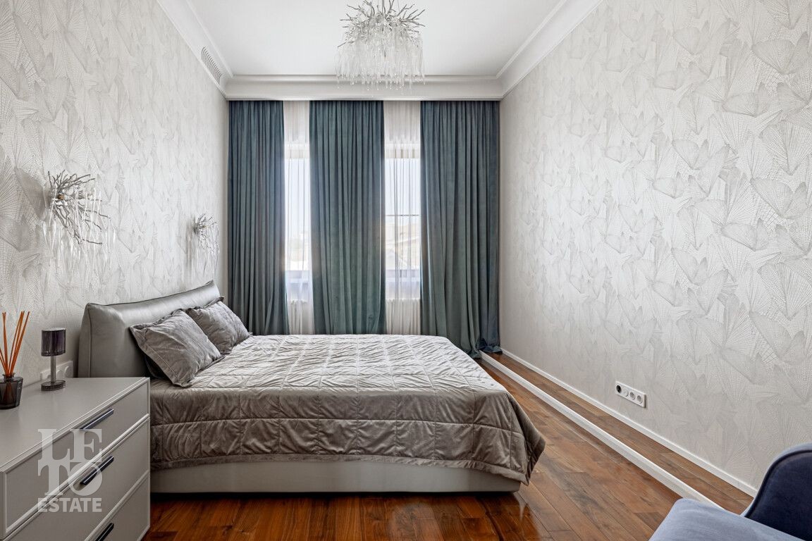 Авторский дизайнерский ремонт выполнен в стиле современной классики, где каждая деталь продумана до мелочей. В отделке - натуральный камень, дерево, лепнина ручной работы. Мебель, текстиль подобраны в единой концепции: лаконичные формы, благородные оттенки, высокое качество исполнения. Бытовая техника MIELE, ASKO.