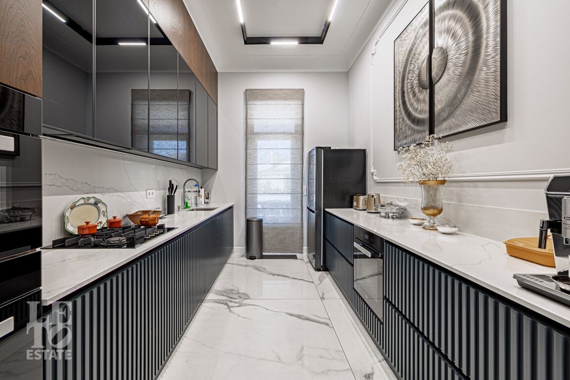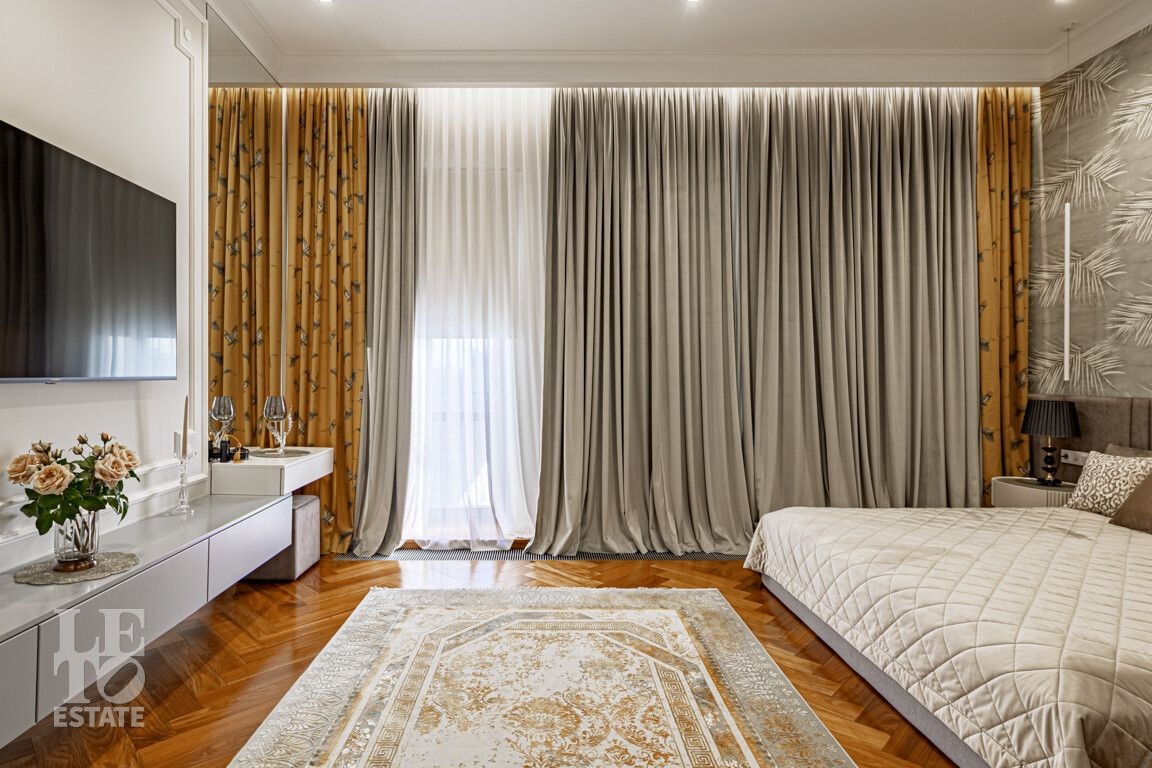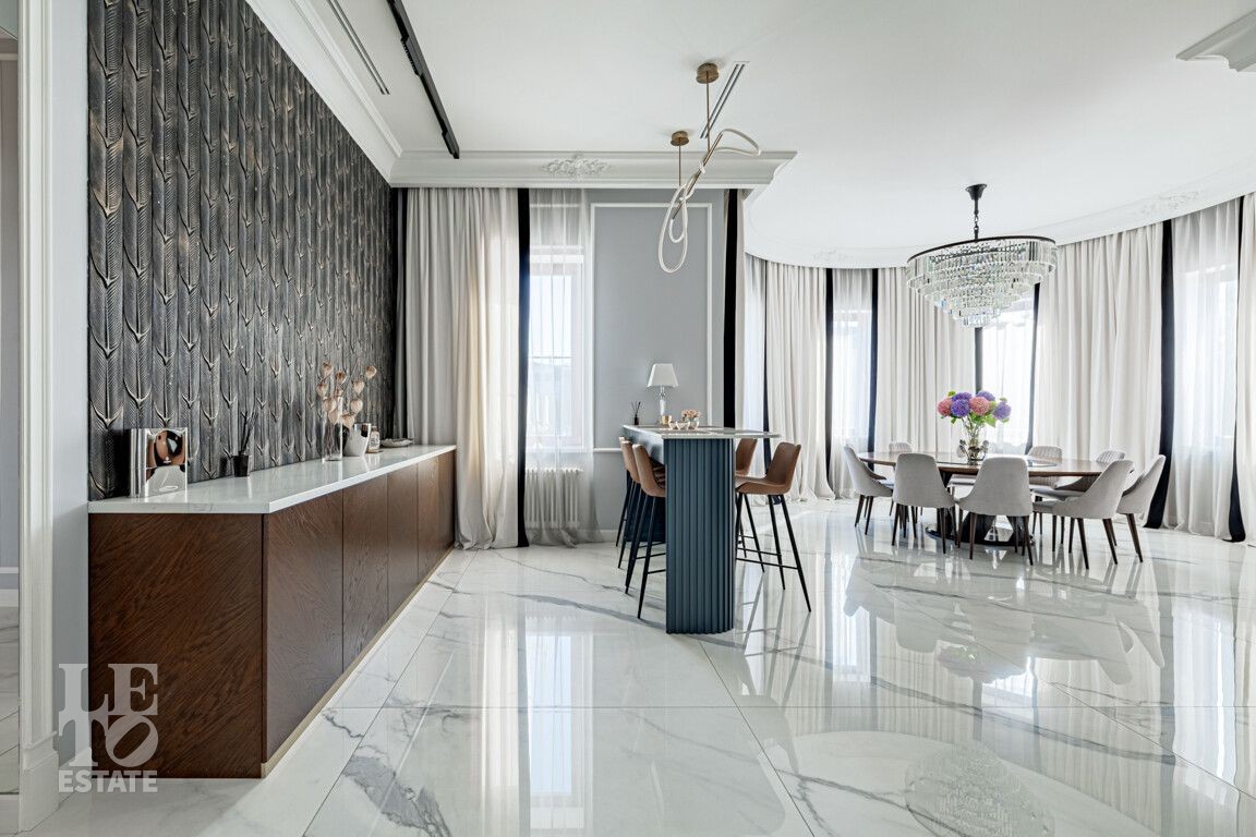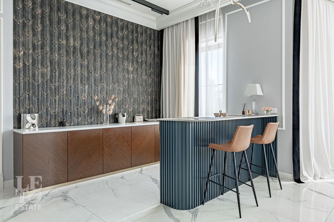 Авторский дизайнерский ремонт выполнен в стиле современной классики, где каждая деталь продумана до мелочей. В отделке - натуральный камень, дерево, лепнина ручной работы. Мебель, текстиль подобраны в единой концепции: лаконичные формы, благородные оттенки, высокое качество исполнения. Бытовая техника MIELE, ASKO.