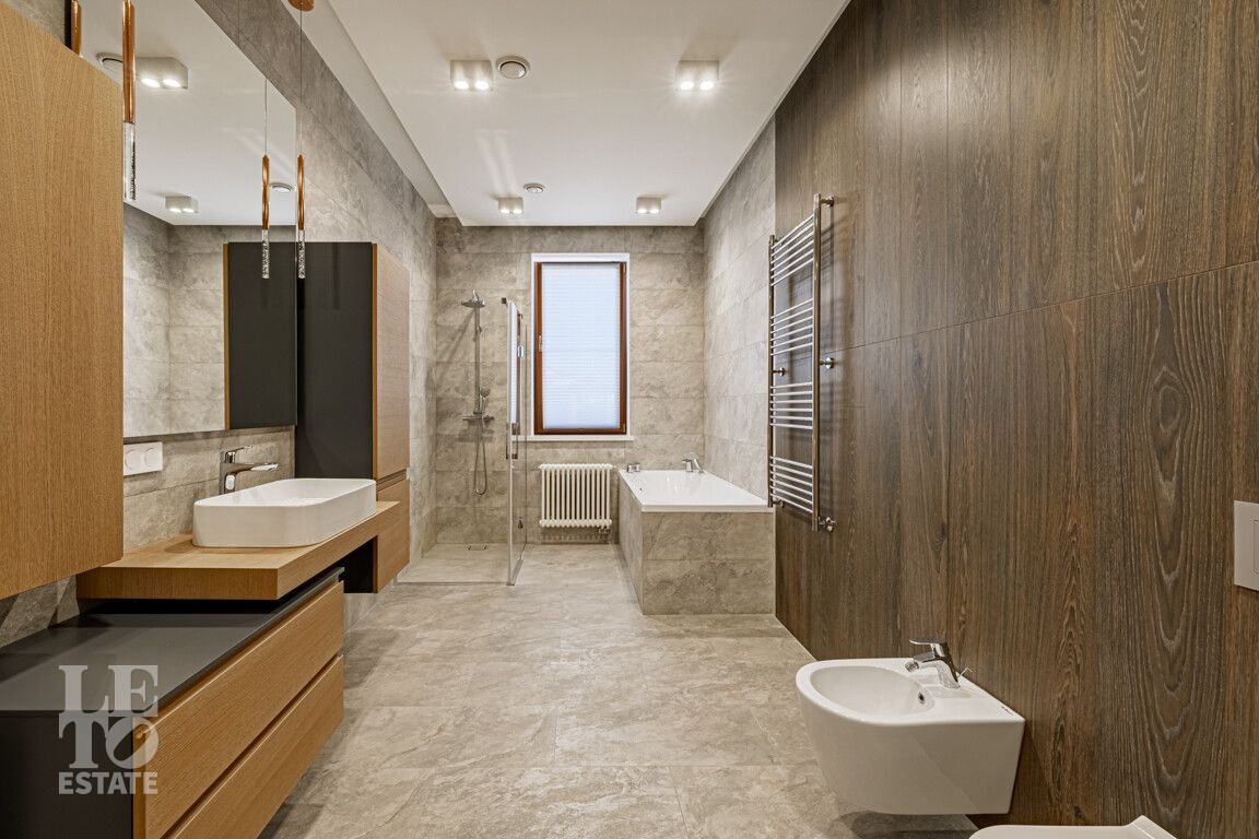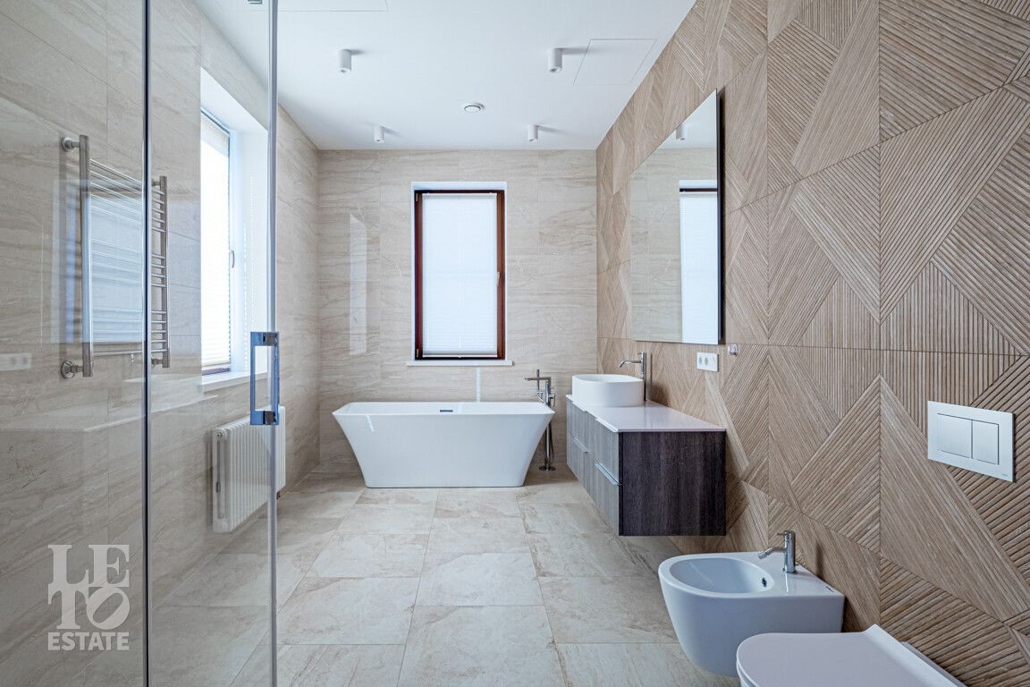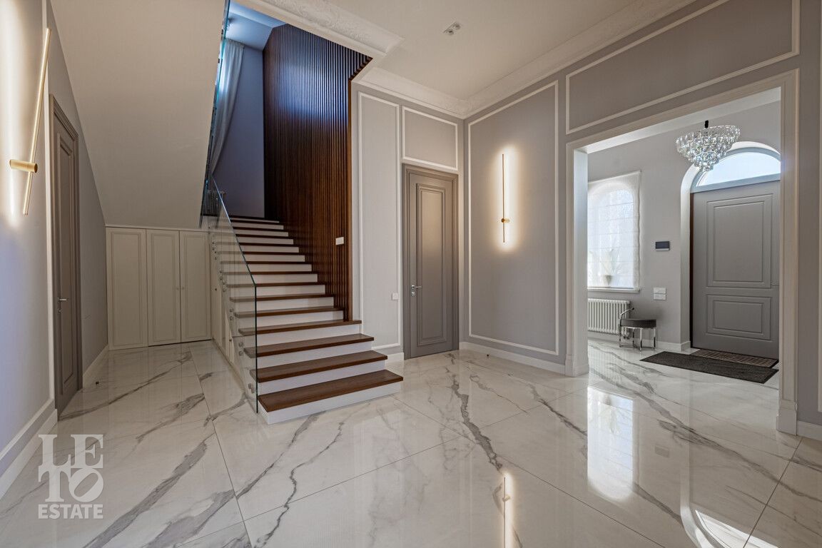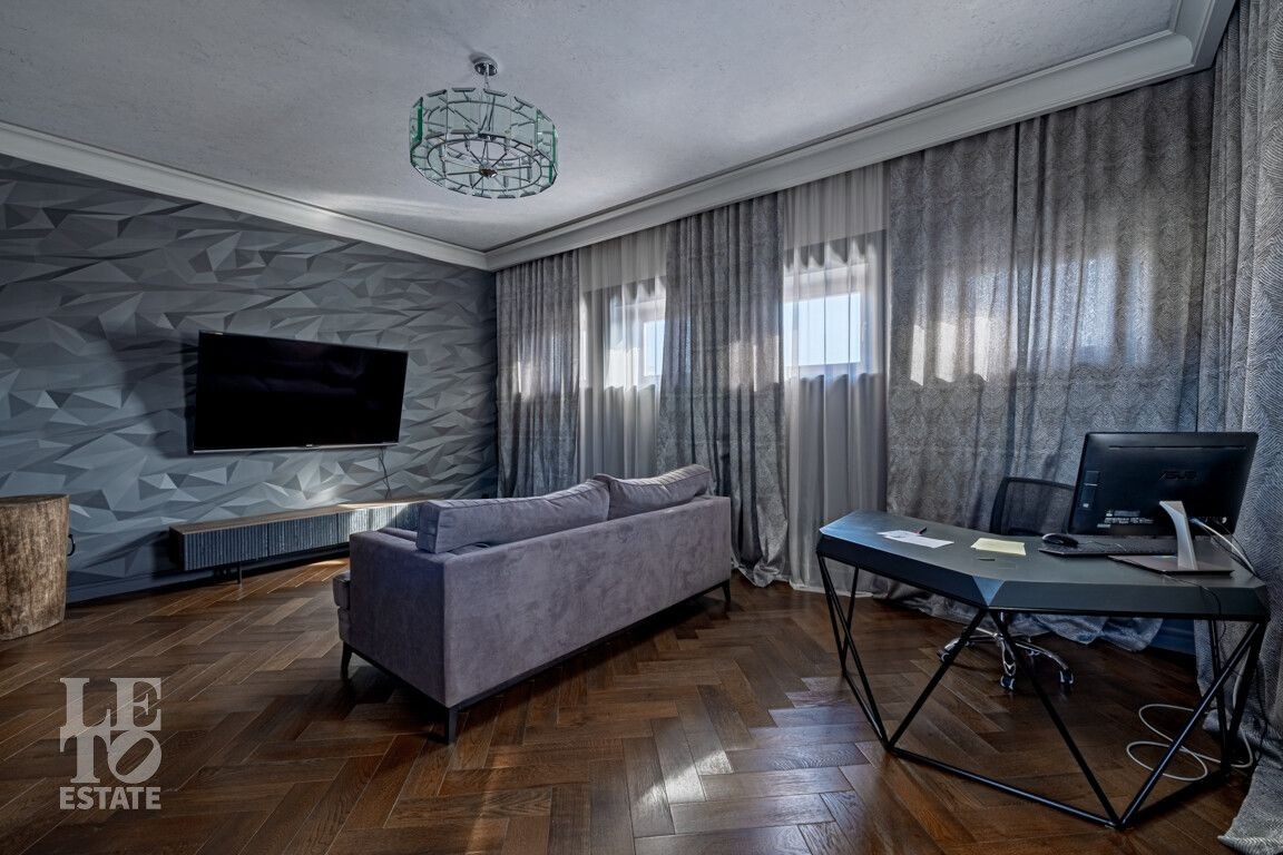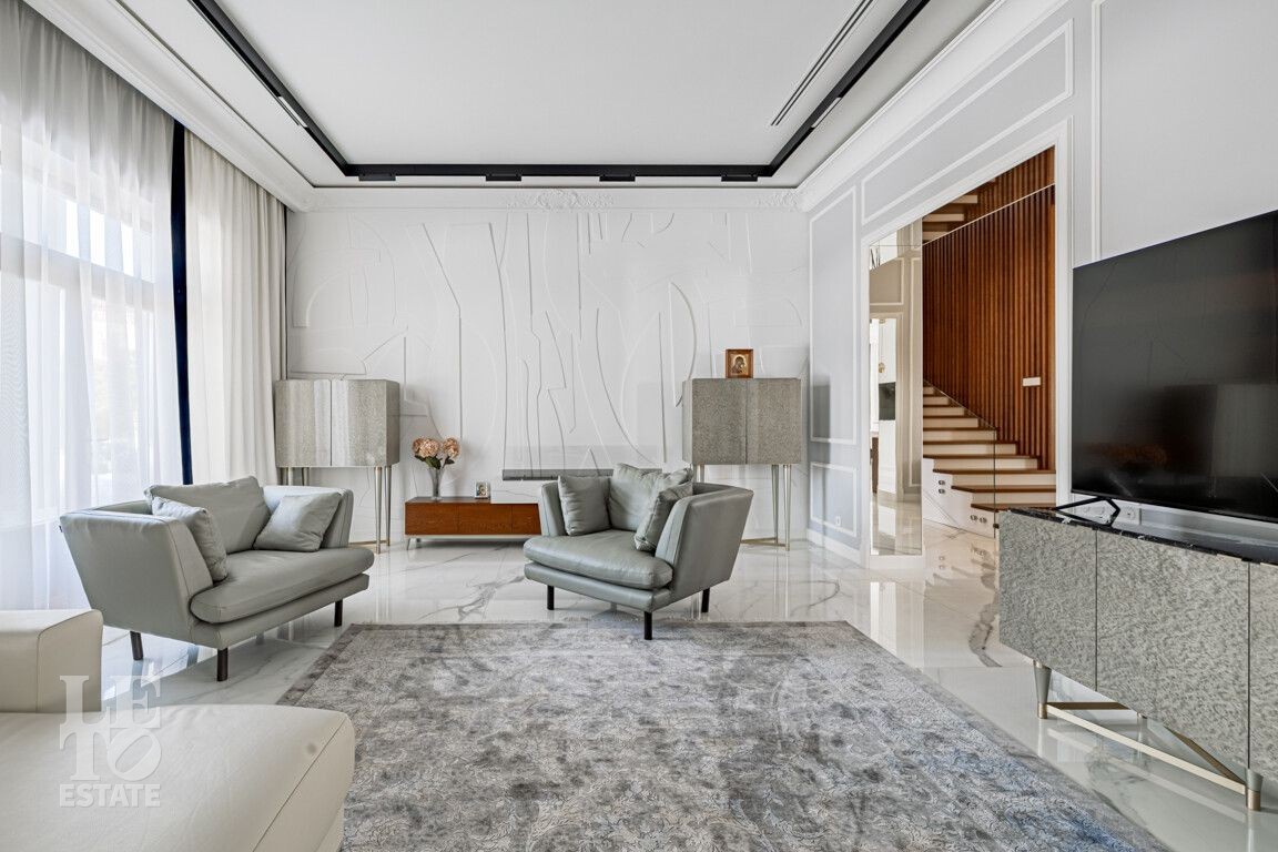 Авторский дизайнерский ремонт выполнен в стиле современной классики, где каждая деталь продумана до мелочей. В отделке - натуральный камень, дерево, лепнина ручной работы. Мебель, текстиль подобраны в единой концепции: лаконичные формы, благородные оттенки, высокое качество исполнения. Бытовая техника MIELE, ASKO.