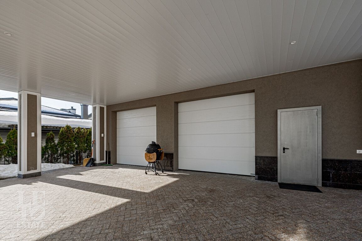 На участке выполнен ландшафтный дизайн с системой автополива и освещением, разбит сад, оборудована зона отдыха с кострищем. Есть гараж на 6 машин и гостевой дом 250 м2.