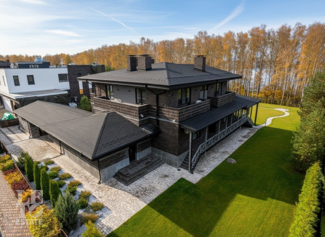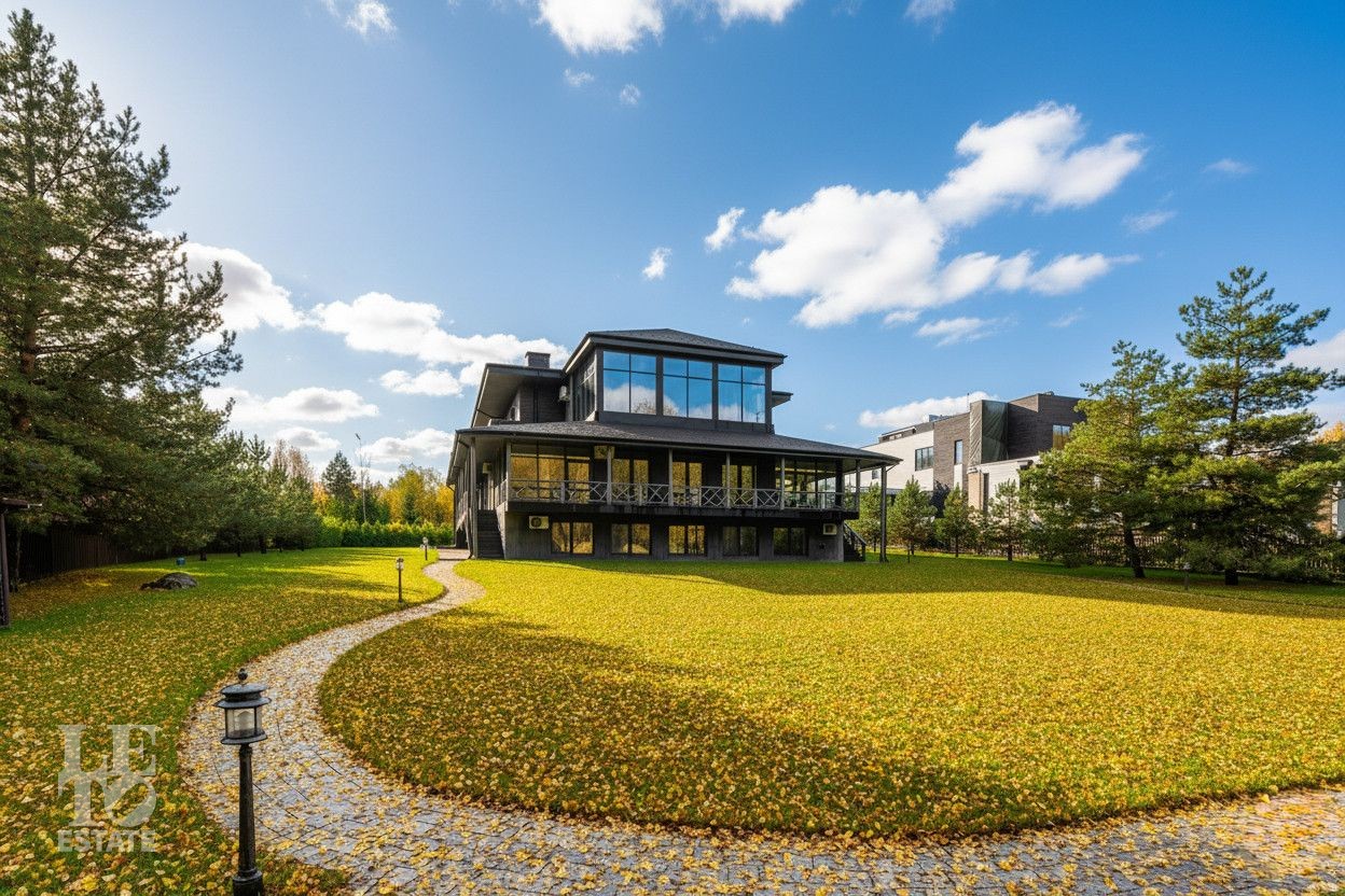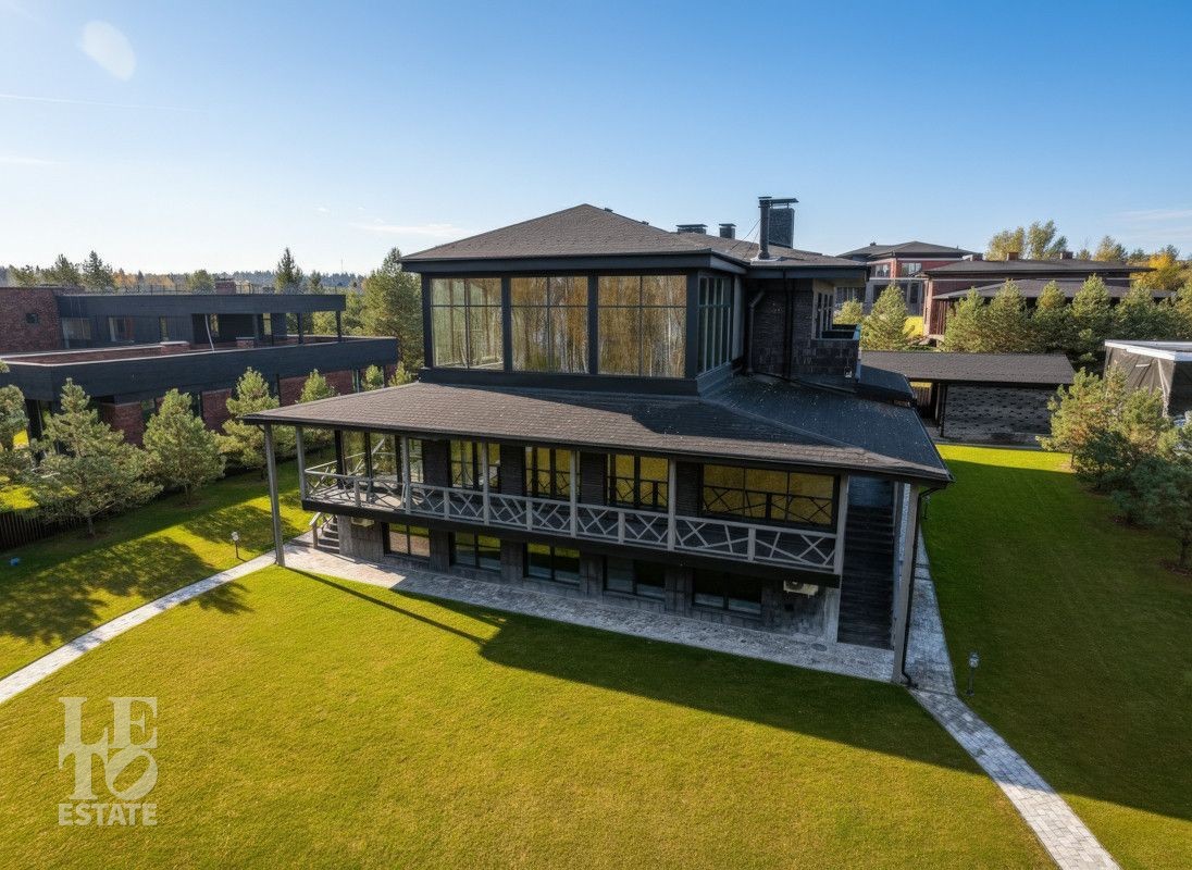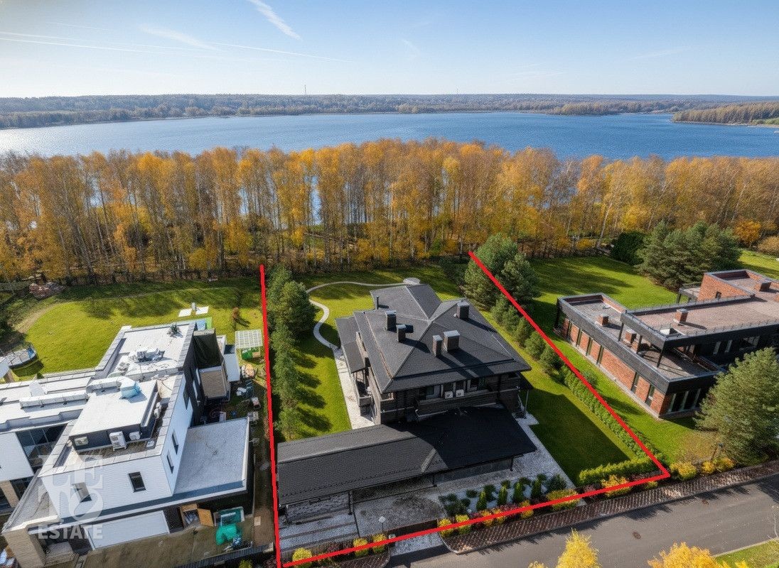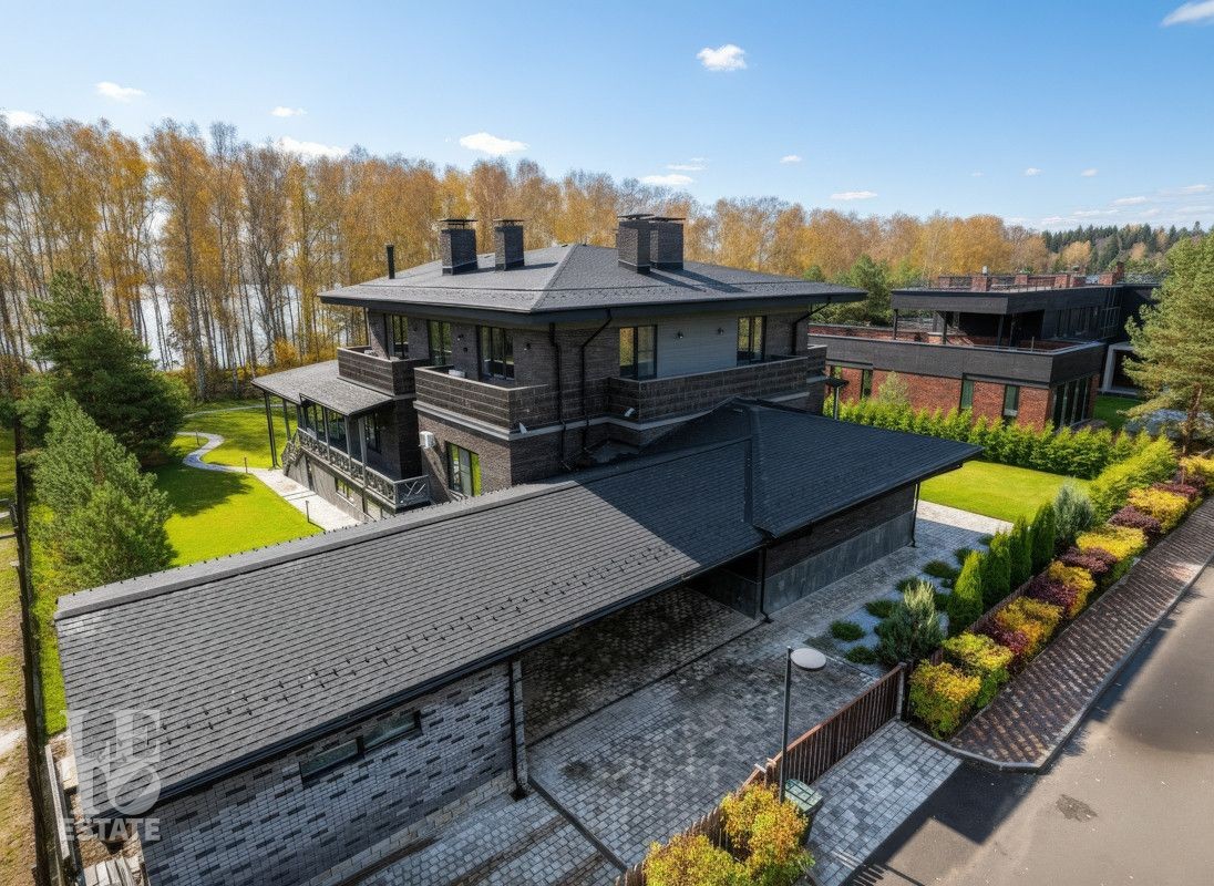 Вашему вниманию предлагается новый, современный загородный дом в стиле Фрэнка Ллойда Райта, площадью 950 кв.м на первой видовой линии водохранилища, на участке размером 33 сотки, расположенный по Дмитровскому шоссе в 26 км от МКАД, в коттеджном поселке единого стиля Монаково, на берегу Икшинского водохранилища.