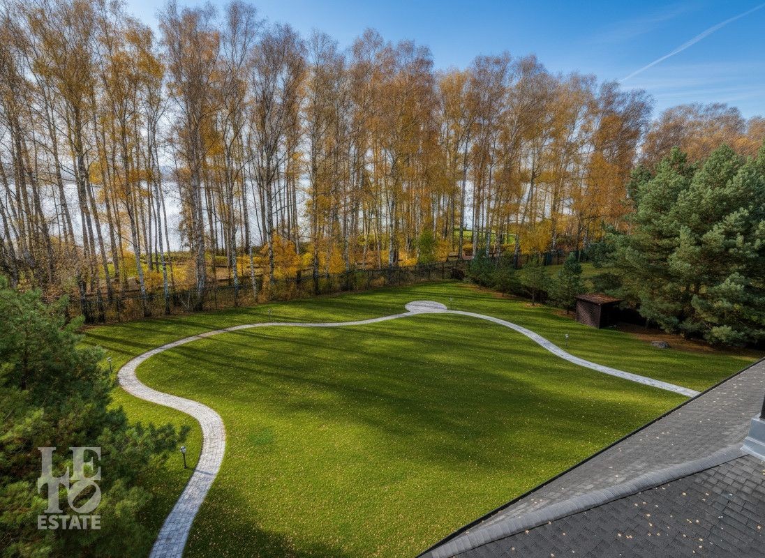 На участке выполнен ландшафтный дизайн, высажены многолетние деревья и кустарники, установлено вечернее освещение и автополив.