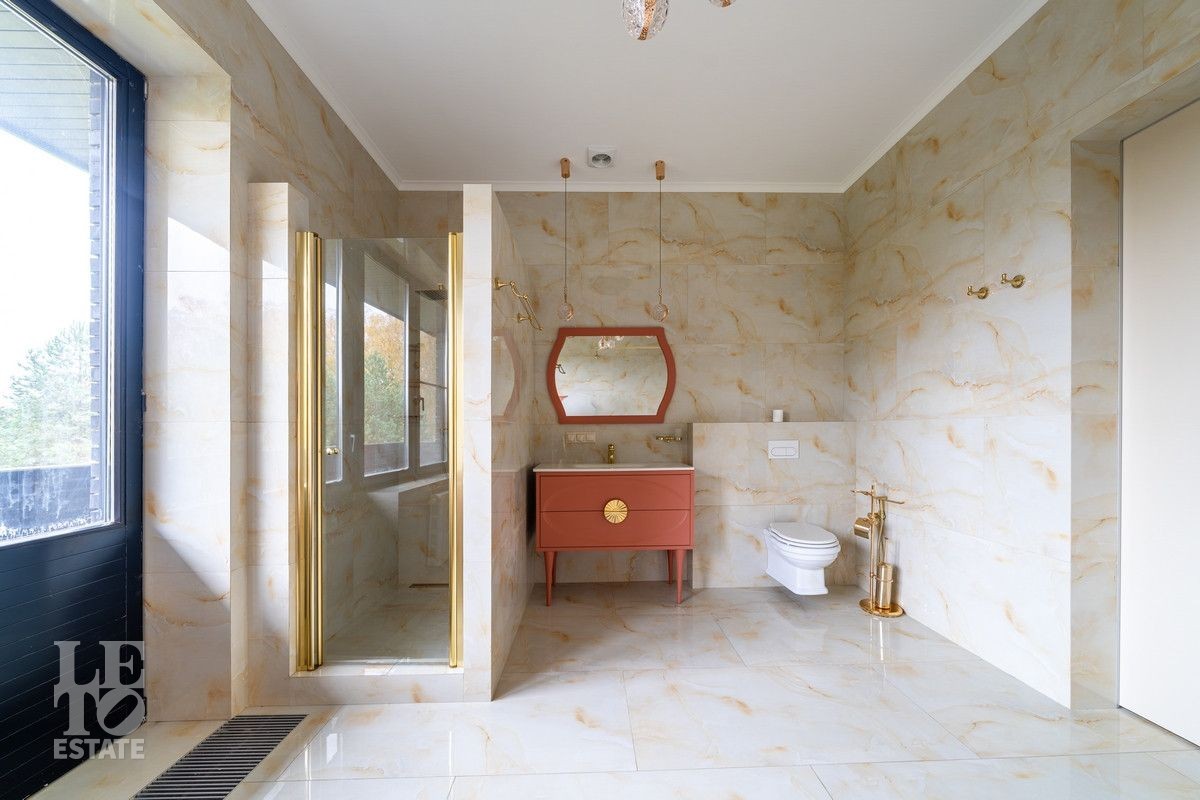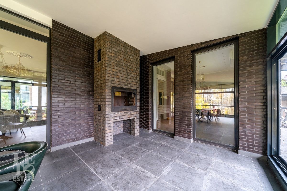 Прекрасная, объемная гостиная с с камином и видом на водохранилище, каждая спальня -со своим санузлом и гардеробной, мастер-блок площадью более 60 кв.м. со своей теплой террасой, из которой открывается завораживающий вид на воду, в цокольном этаже расположена зона спа с бассейном и многофункциональные помещения. Из гостиной и кухонной зоны есть выход на террасу с зоной отдыха и барбекю, которая располагается по периметру всего дома.