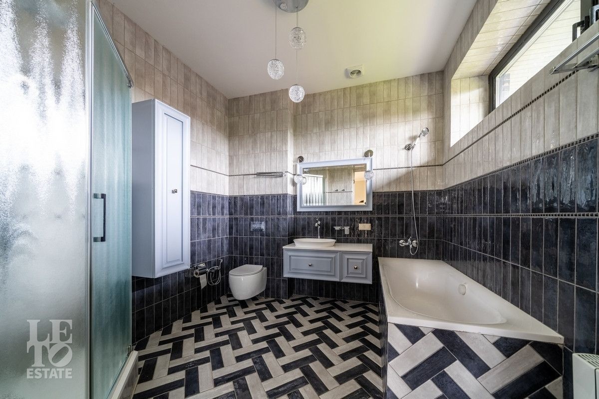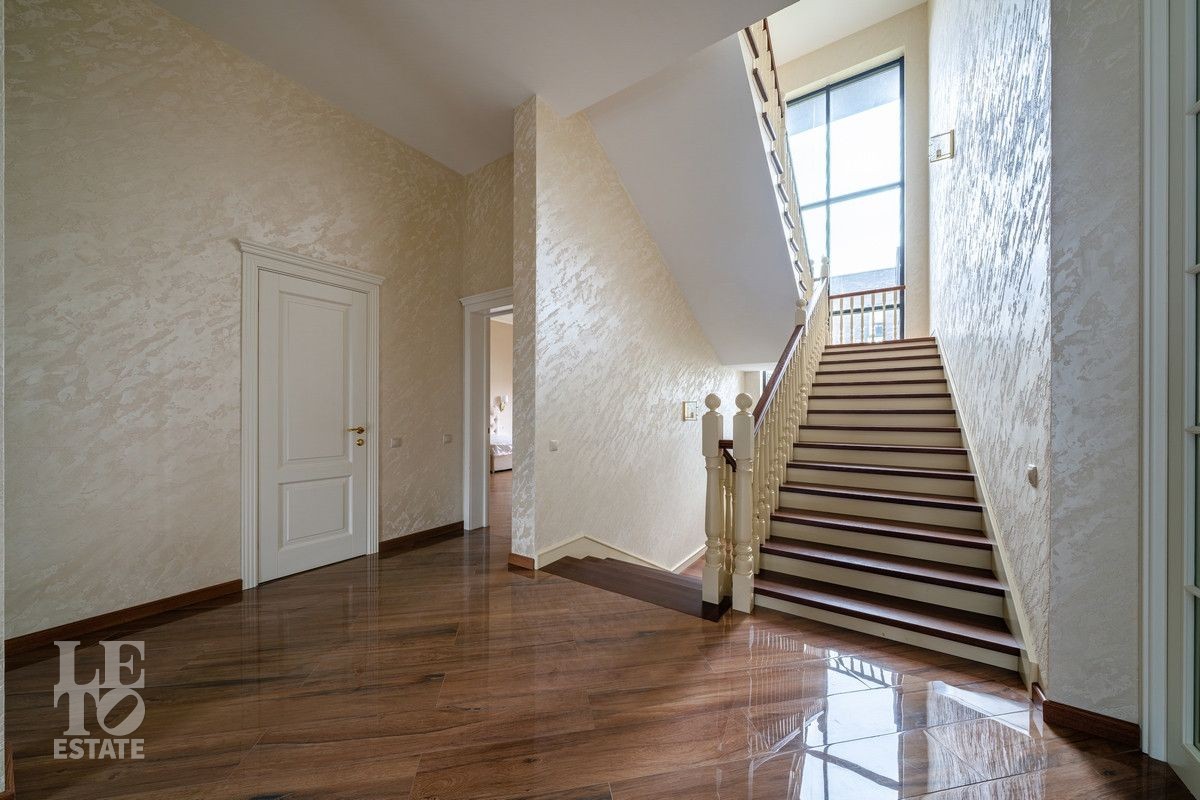 Все полы с плиткой имеют водяной подогрев, полы в комнатах и лестница выполнены из массива дерева, в доме установлена кондиционеры и очистители воздуха.