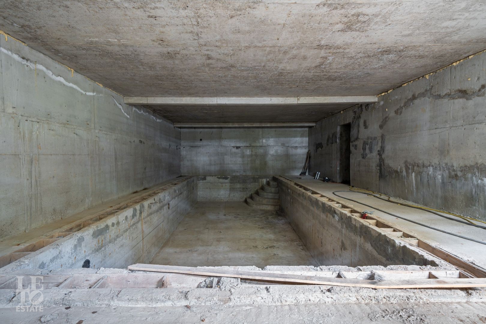 Цокольный этаж: спа зона с шикарным бассейном с панорамным видом на участок и воду, хаммам, сауна, зоны отдыха и спальни.