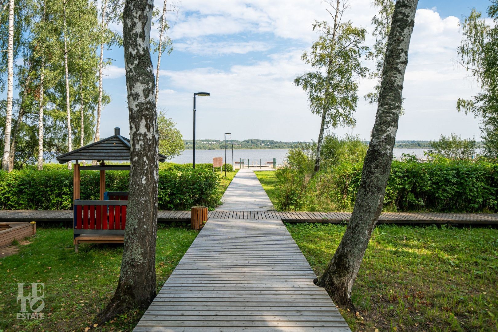 Вдоль береговой линии водоема протянулась прогулочная территория для жителей Монаково. Здесь обустроена детская игровая площадка, ведутся работы по установке причального комплекса с приватной зоной для купания.