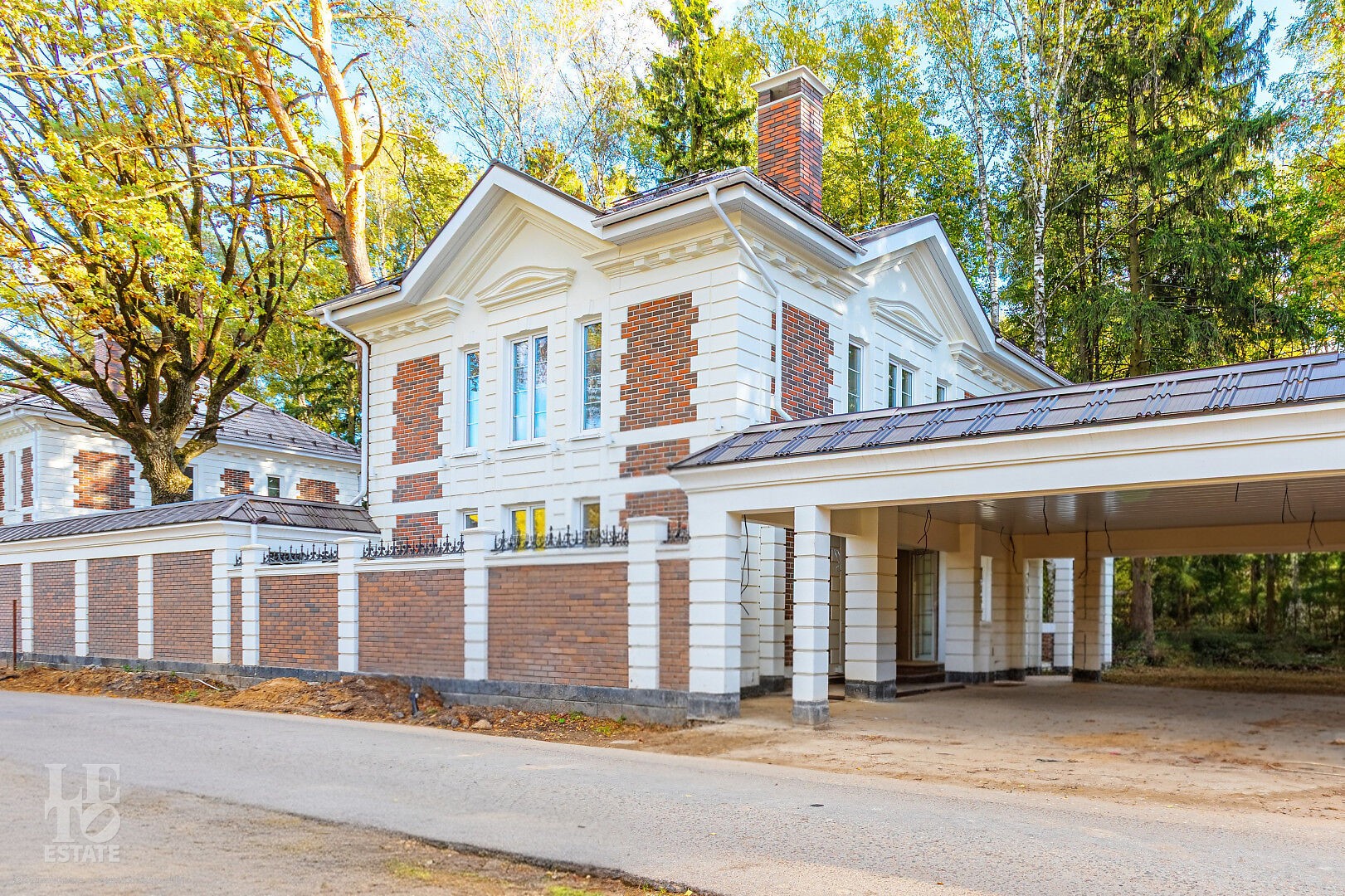 Представляю вашему вниманию дом площадью 390 кв. м с гаражом в классической архитектуре на прилесном участке, построенном в коттеджном поселке Монплезир-Переделкино, расположенном в Одинцовском районе в 6 км от МКАД по Минскому шоссе.