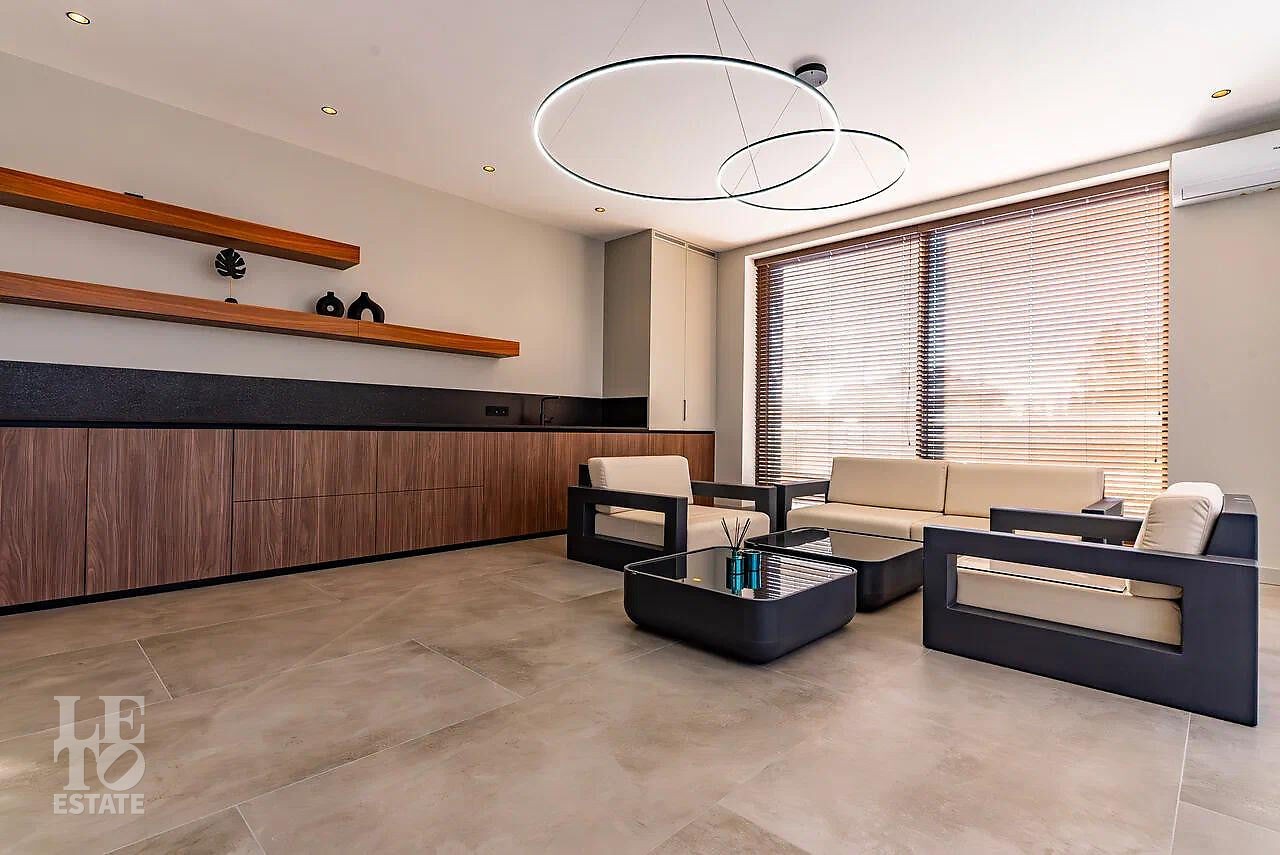Интерьер дома наполнен мебелью в стиле минимализма. В гостиной установлен подвесной камин. Во всех помещения дома установлено многоуровневое освещение (дневное и вечернее). Сантехническое оборудование подключено. Есть приточно-вытяжная вентиляция.