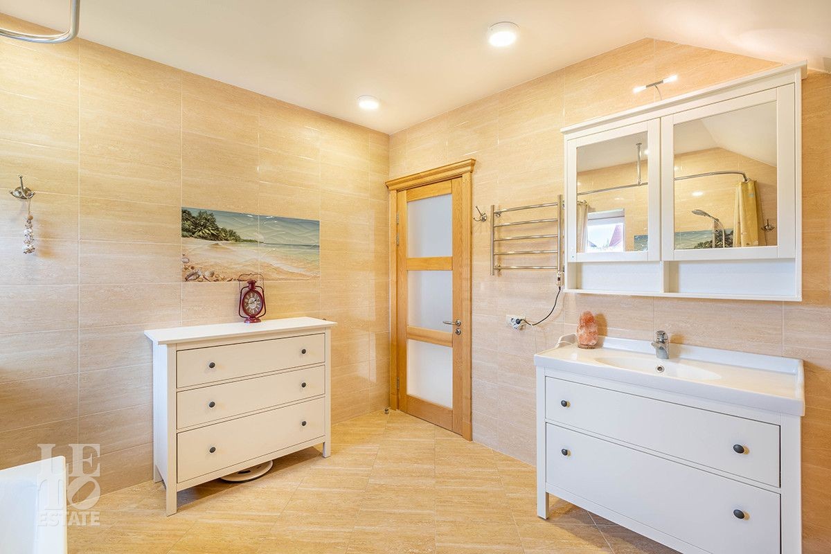 Дом выполнен из качественных строительных материалов. Фундамент - бетонная плита. Пирог стены: кирпич - пеноблок - утеплитель и дополнительное утепление эко-вата 100 мм. Кровля - черепица BRAAS. Дом полностью меблирован и укомплектован всей необходимой бытовой техникой. Дом оборудован встроенным пылесосом, системой теплых полов (в зоне плитки), приточно-вытяжной вентиляцией и стабилизаторами электричества.