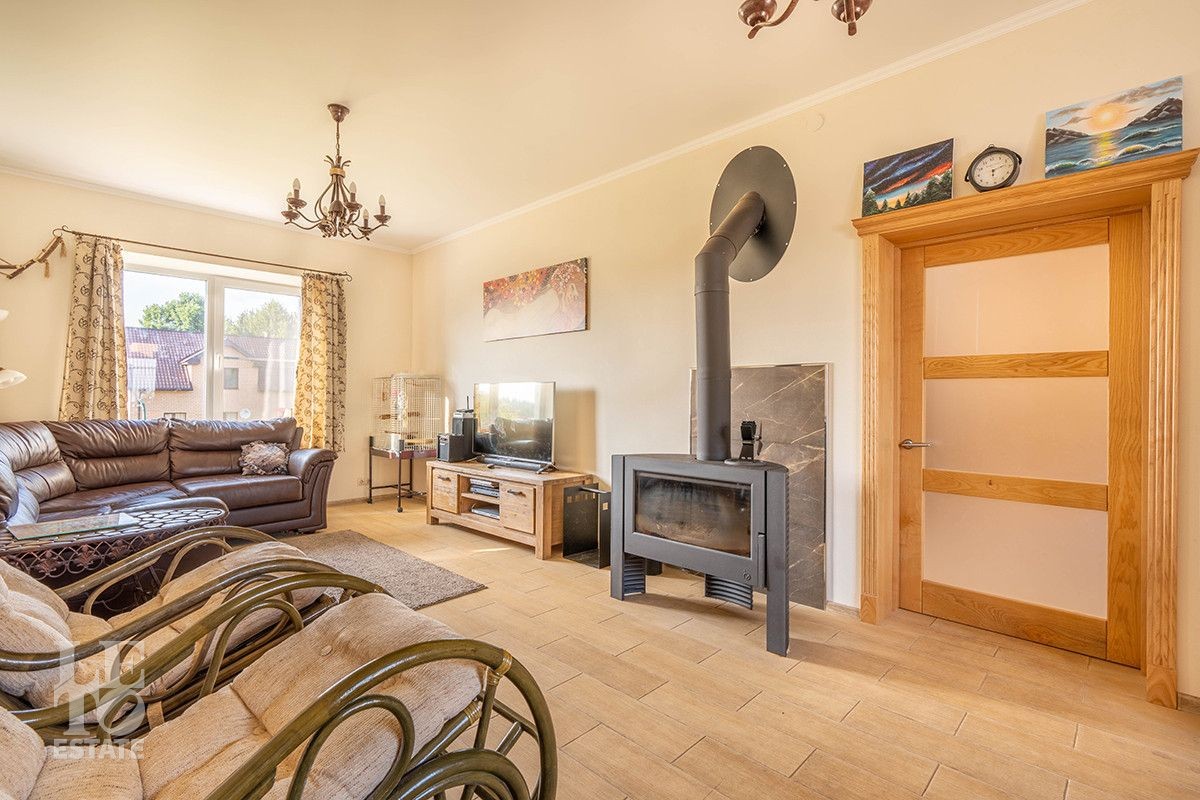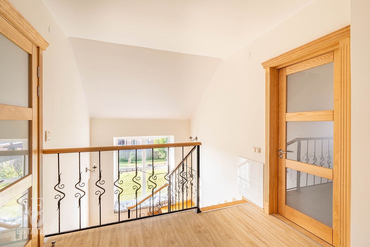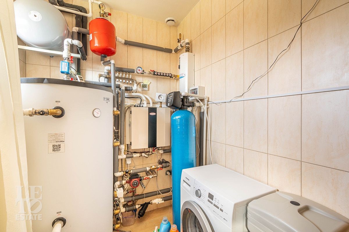 Подключены все центральные коммуникации: электричество 25 кВт, центральная канализация и водопровод. Газа нет. Дом отапливается тепловым насосом.