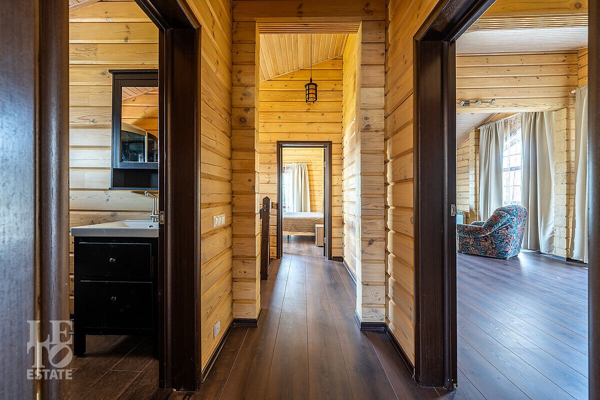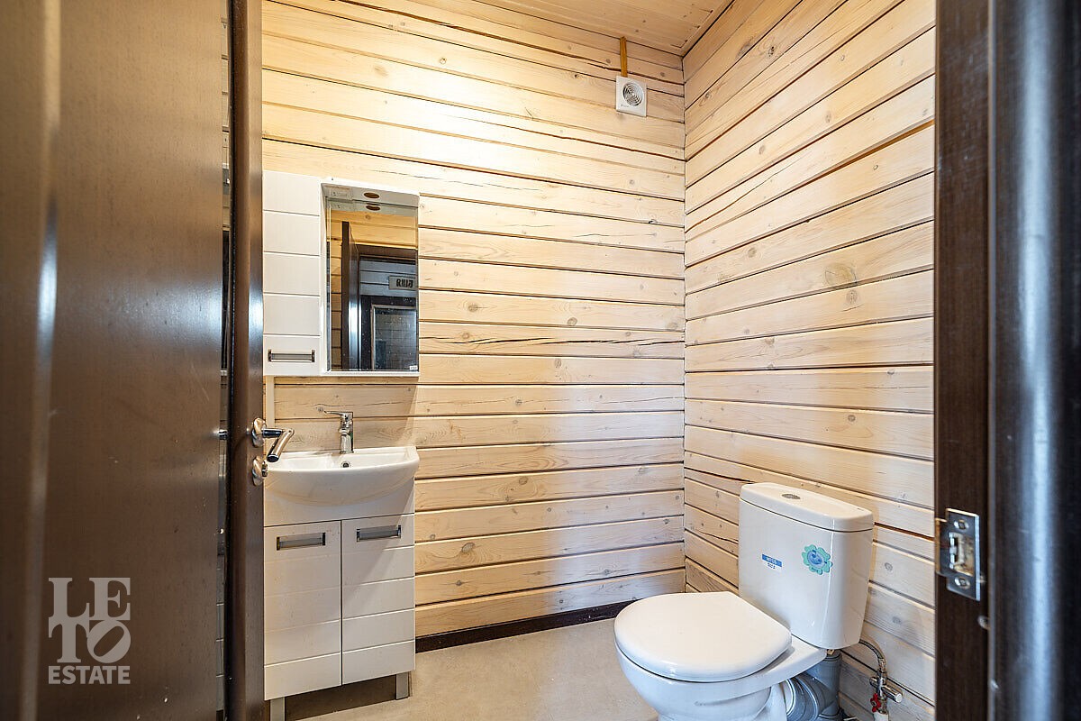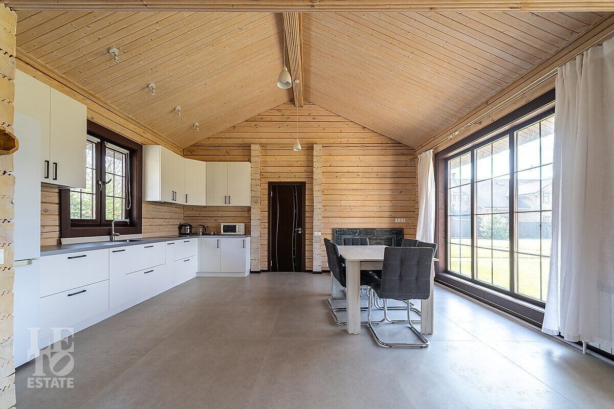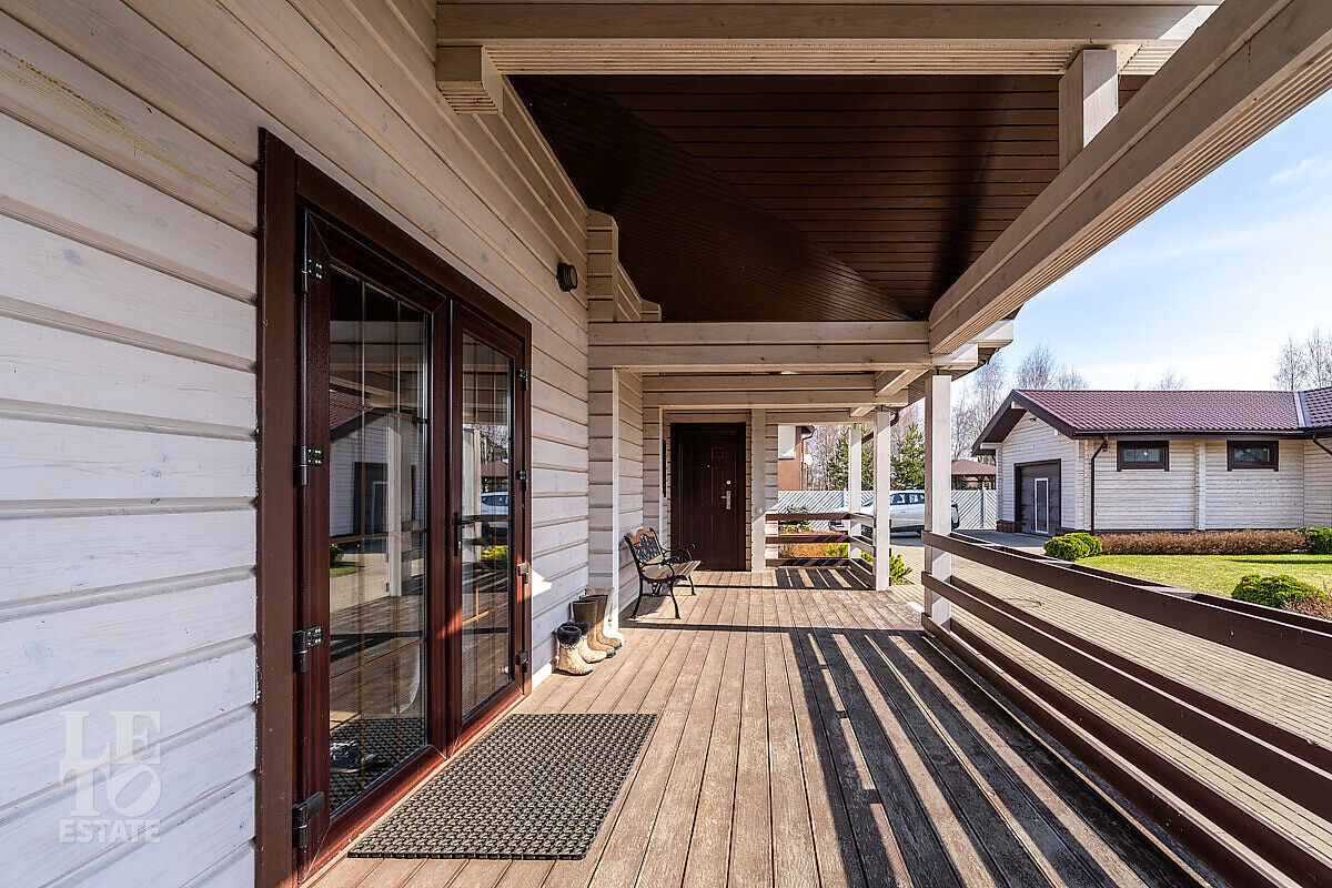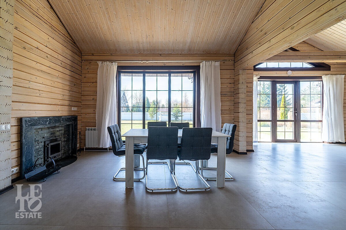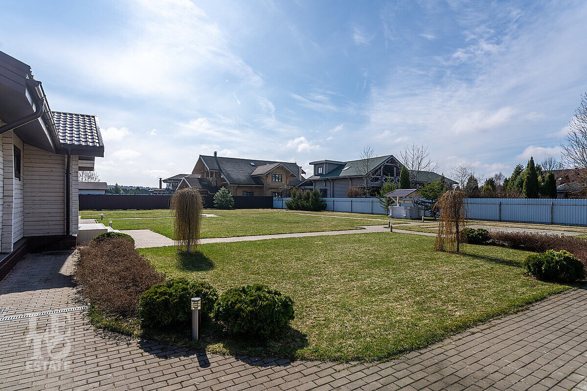 На участке вас ждет полноценная инфраструктура для отдыха: отдельный гостевой дом с дровяной баней, просторной гостиной и кухней, а также террасой, на которой можно с удовольствием проводить время не только летом, но и в трескучие морозы. Здание гостевого дома построено в едином стиле с жилым домом, образуя целостный архитектурный ансамбль. Все коммуникации — центральные, что гарантирует привычный уровень городского комфорта вдали от шума мегаполиса.
