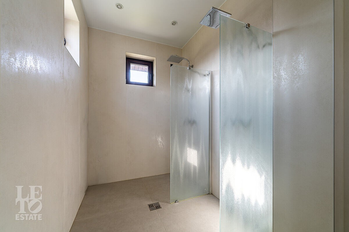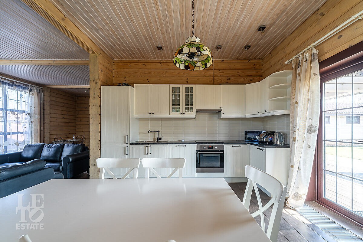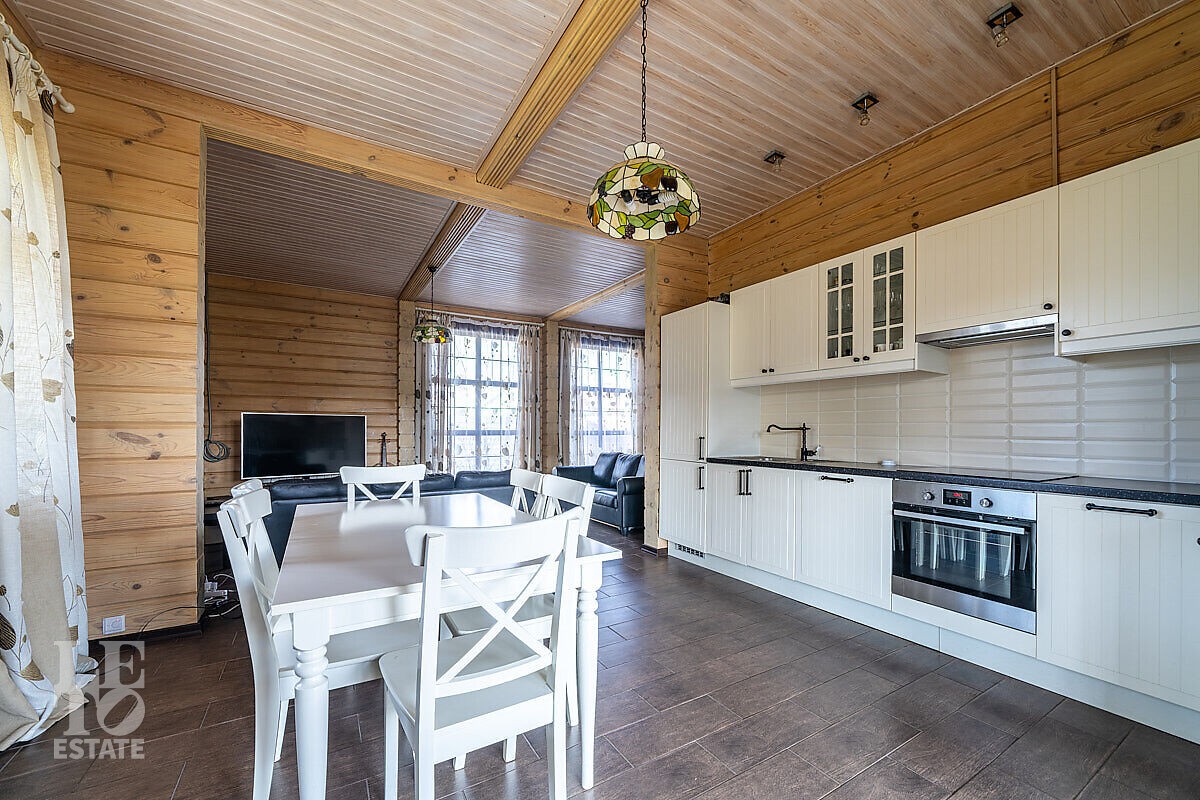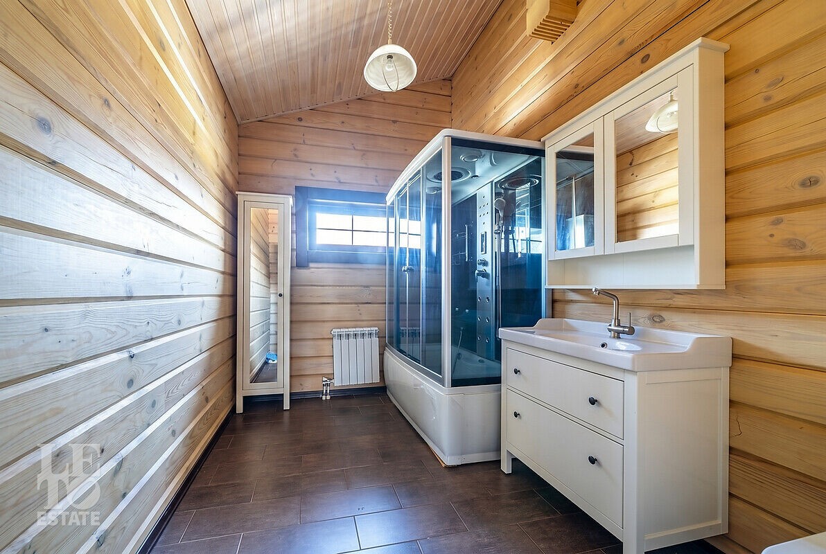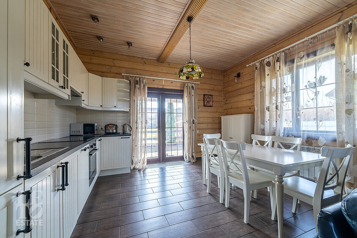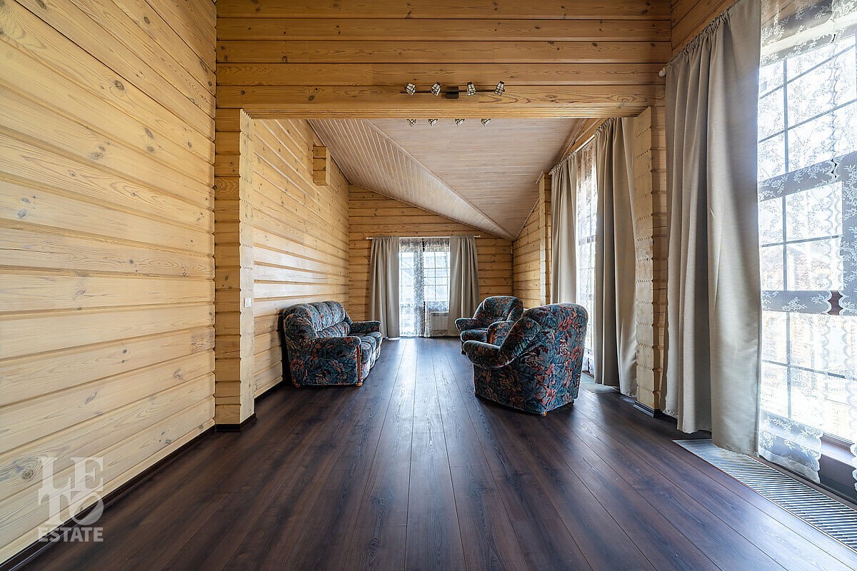 На участке вас ждет полноценная инфраструктура для отдыха: отдельный гостевой дом с дровяной баней, просторной гостиной и кухней, а также террасой, на которой можно с удовольствием проводить время не только летом, но и в трескучие морозы. Здание гостевого дома построено в едином стиле с жилым домом, образуя целостный архитектурный ансамбль. Все коммуникации — центральные, что гарантирует привычный уровень городского комфорта вдали от шума мегаполиса.