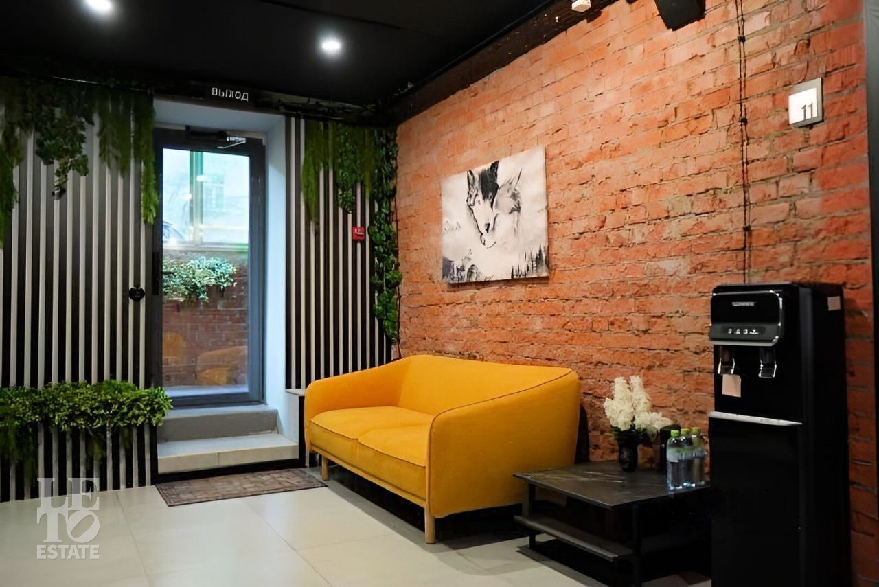 Помещение имеет качественную офисную отделку, высота потолков 2.7 м. Основным видом деятельности является аренда офисов. Планировка кабинетная, включает 11 кабинетов различной площади, оборудованных электронными замками с удаленным управлением. Также имеются 2 санузла и кухня. Объект оснащен современными коммуникациями, на территории есть паркинг. Мощность электросети 30 кВт. Дизайн интерьера выполнен в стиле "Loft style". На этаже есть видеонаблюдение и фоновая музыка.