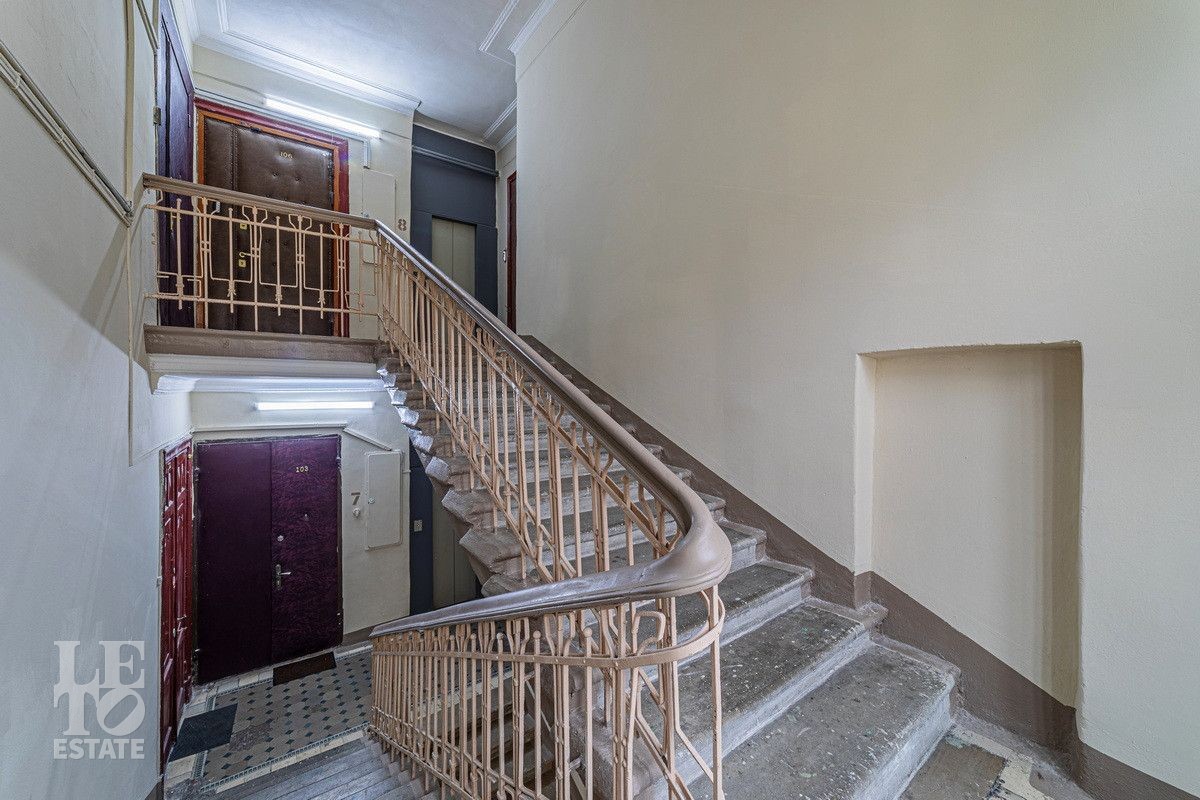 Квартира в дореволюционном доме 1910 года постройки, в котором уже сделан капитальный ремонт кровли, входной группы и трубопровода. В квартире очень тепло, полы выполнены из паркетной плитки на заказ, и остается все, что находится на текущий момент: итальянская мебель, элементы декора, вся бытовая техника.