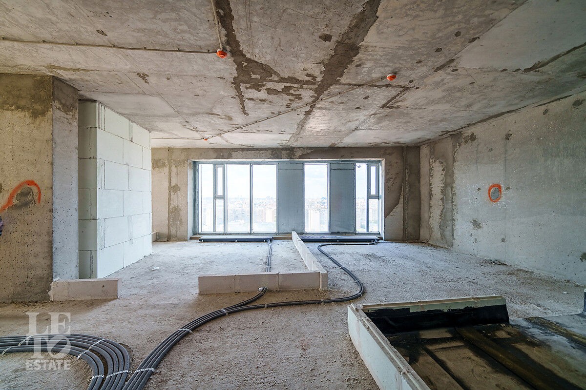 Квартира без отделки, высота потолков 3,2м. Панорамные окна из квартиры на северную и восточную стороны и открывают широкий обзор на город.