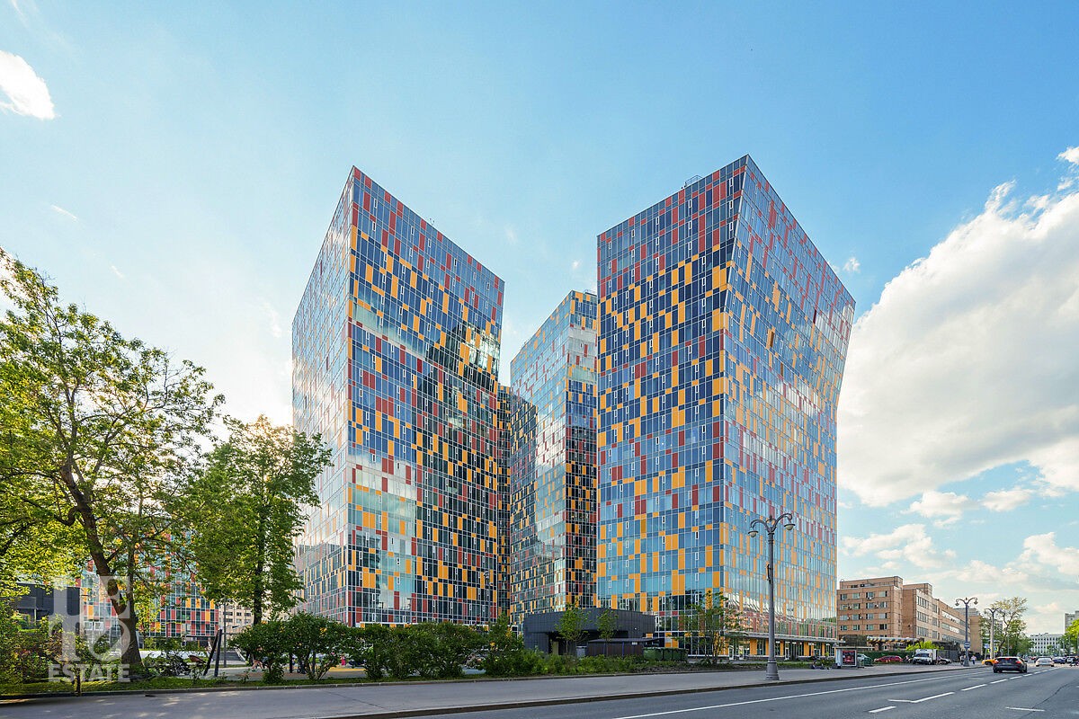 ЖК Скай Хаус - это четыре жилых дома высотой 22 — 29 этажей. Архитектура башен авторства Александра Скокана, бюро «Остоженка», отражает стиль жизни города: зеркальные фасадные панели с яркими акцентами образуют мозаику и притягивают взгляд.