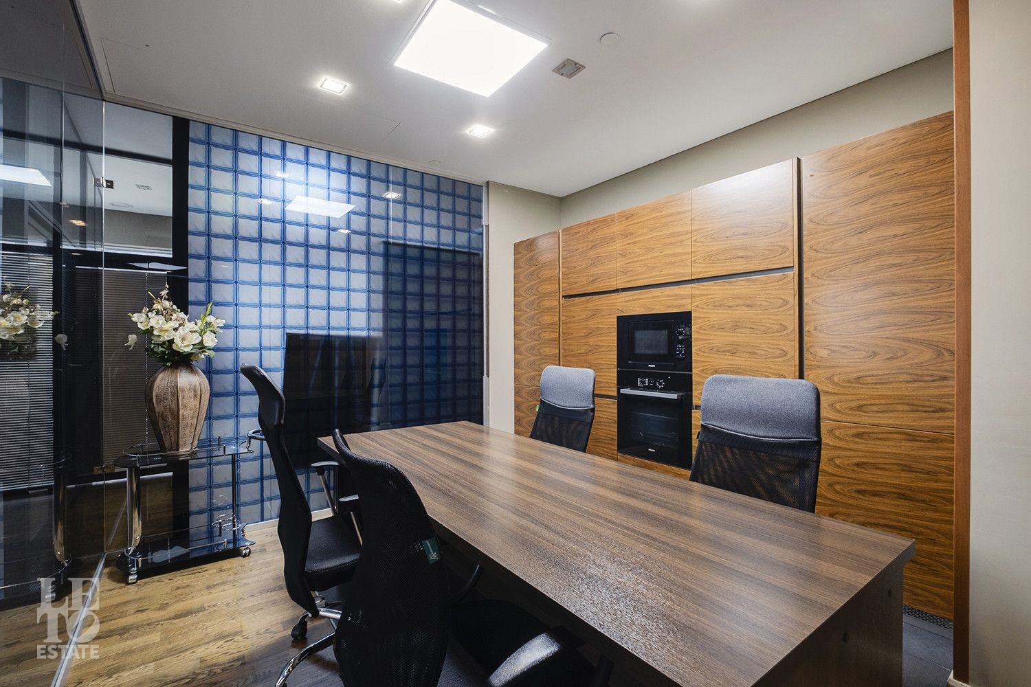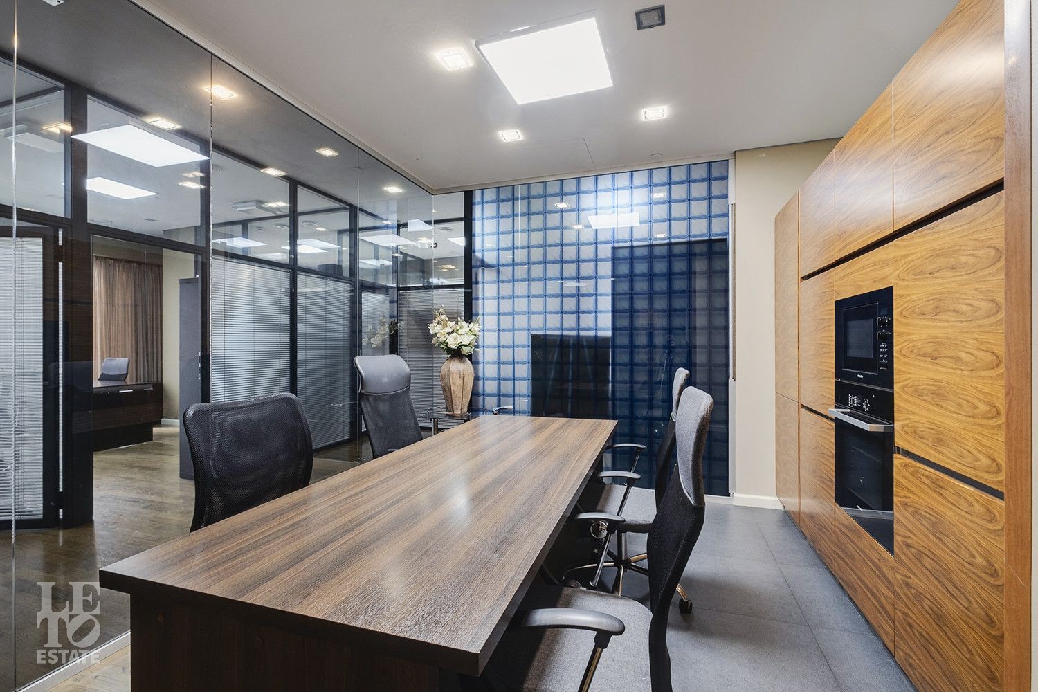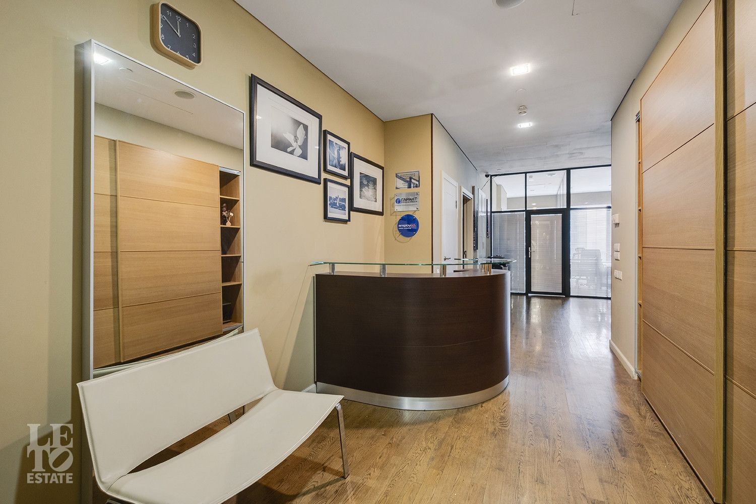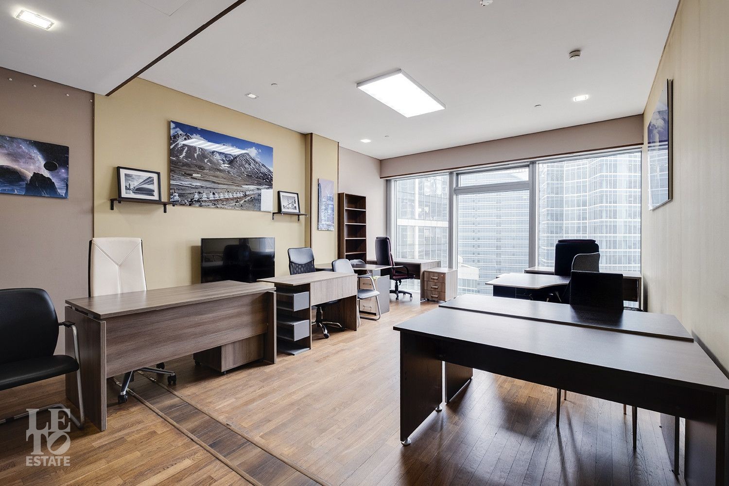 Пространство спроектировано с учётом комфорта и функциональности: восемь кабинетов разного метража, просторная переговорная на 20 кв. м, зона ресепшн, два санузла, в одном из которых расположилась ванная и гостевая зона - создают удобную рабочую атмосферу. Для комфорта сотрудников предусмотрены кофе-поинт, гардеробная и два санузла. Этот объект сочетает в себе продуманную планировку и современный дизайн, обеспечивая комфортные условия для ведения бизнеса, а панорамные окна наполняют пространство естественным светом и открывают впечатляющий вид на деловой центр «Москва-Сити».