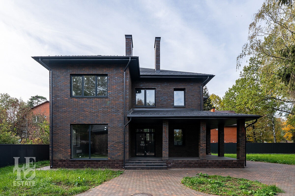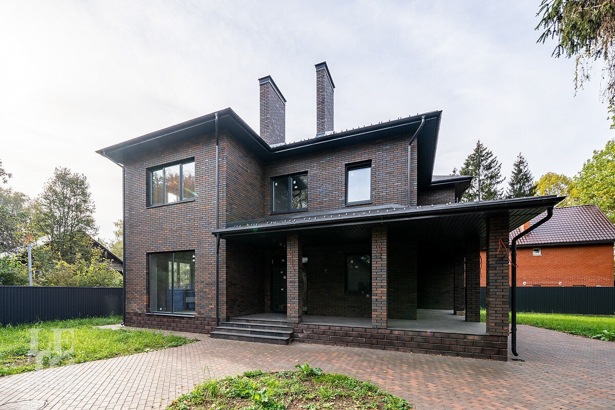 Дом, общей площадью 439,2 кв. м, построен в 2024 году на придомовом участке 9,74 сотки. Проект, надёжный и основательный, выполнен в три уровня. Фасад оформлен благородным тёмным облицовочным кирпичом. Ключевыми принципами проекта стали чистота линий, обилие естественного света и красота архитектурного стиля без избыточных деталей.