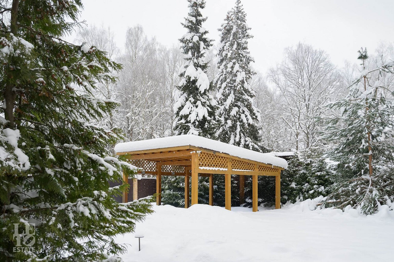 На участке взрослые сосны, а по периметру - вековые ели. Обустроены дорожки с фонариками, лаунж-зона, есть навес на 2 авто и выведены коммуникации для организации барбекю-зоны.