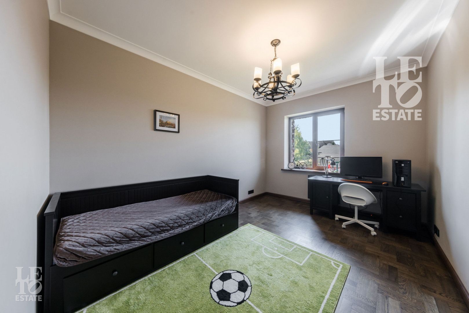 Двухэтажный, кирпичный очень просторный дом с высокими потолками, рассчитан на комфортное проживание большой семьи: два больших холла, обширные: гостиная, кухня – столовая и веранда; семь спален, пять из которых имеют свои санузлы; кабинет, постирочная, гостевой туалет, зона барбекю, подвал и гараж. Полы в спальнях из дубового паркета, в остальных помещениях керамогранит или напольная плитка. Окна – стеклопакеты.
