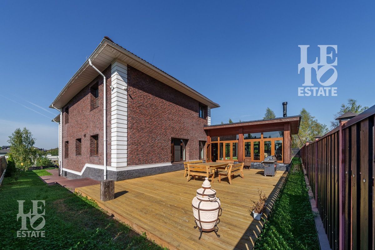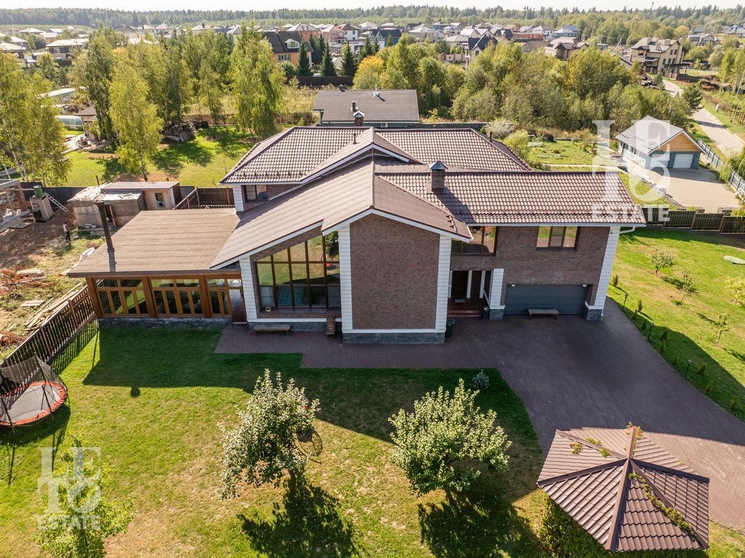 Дом общей площадью 594,8 кв.м. расположен на квадратном ухоженном участке площадью 25,17 соток.