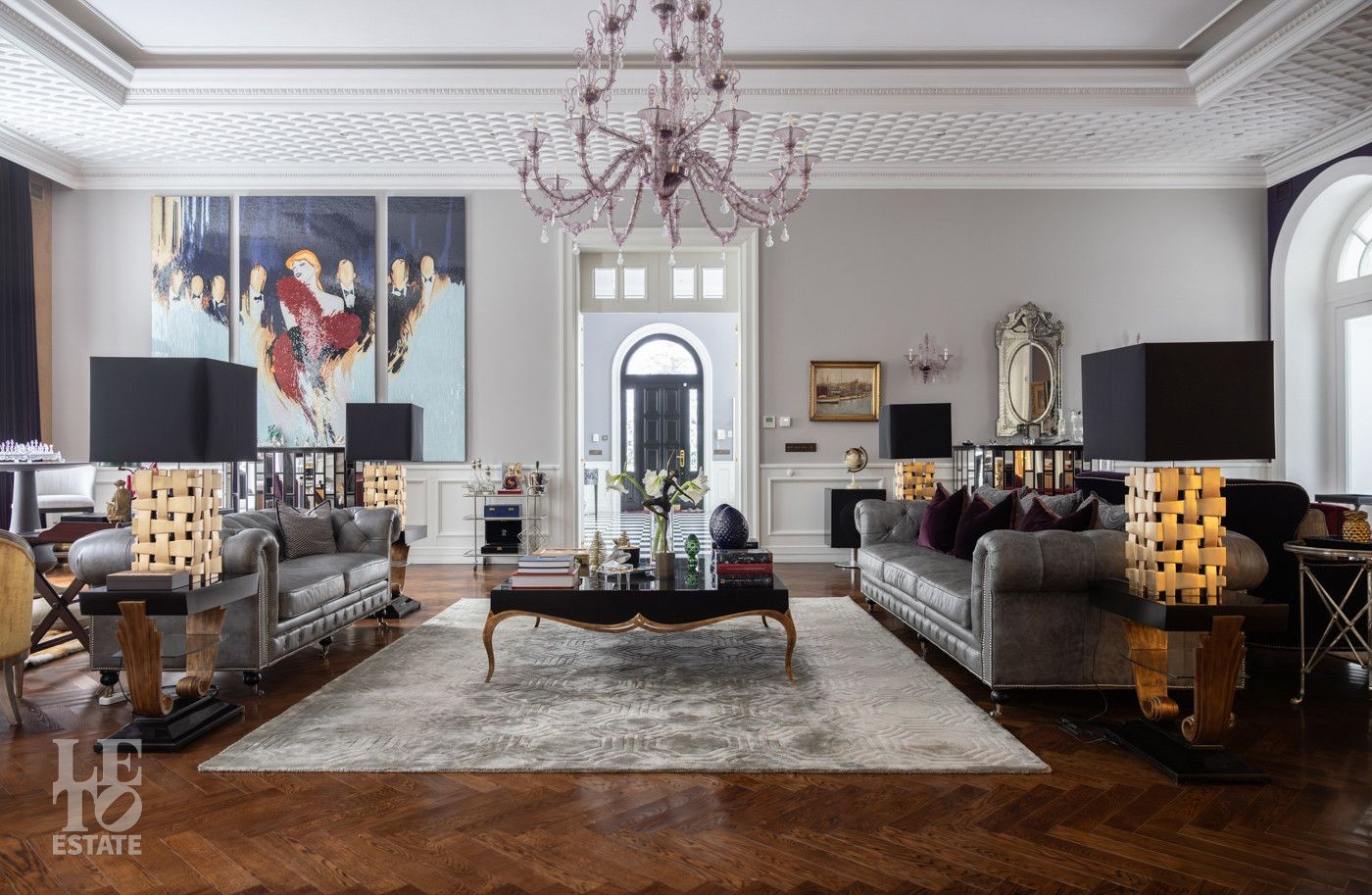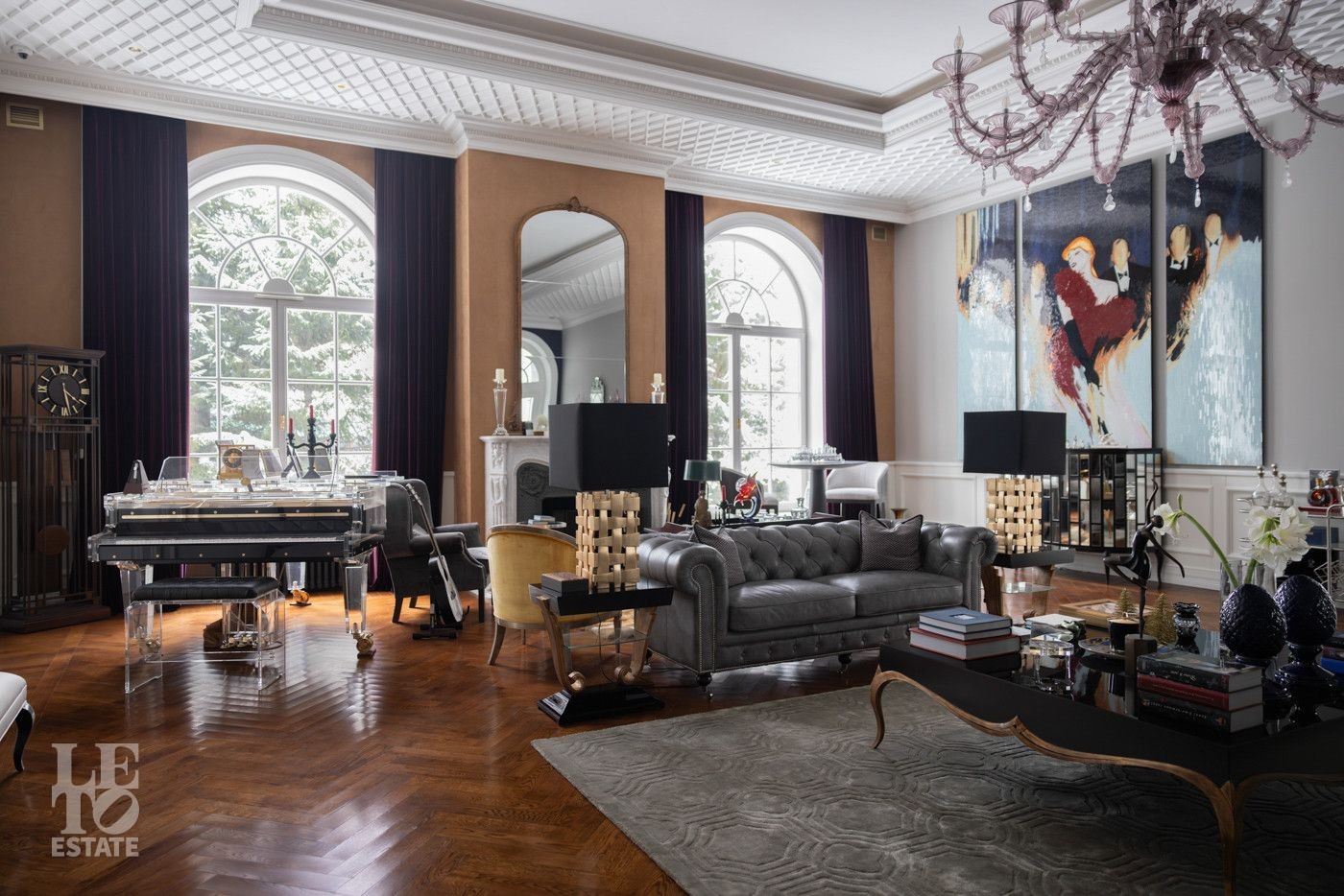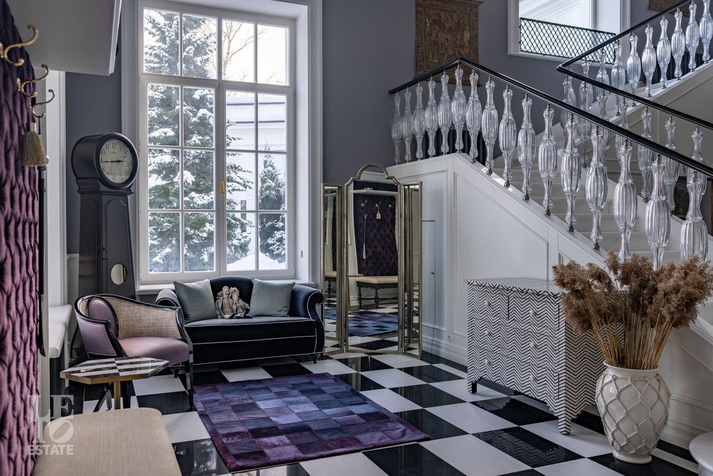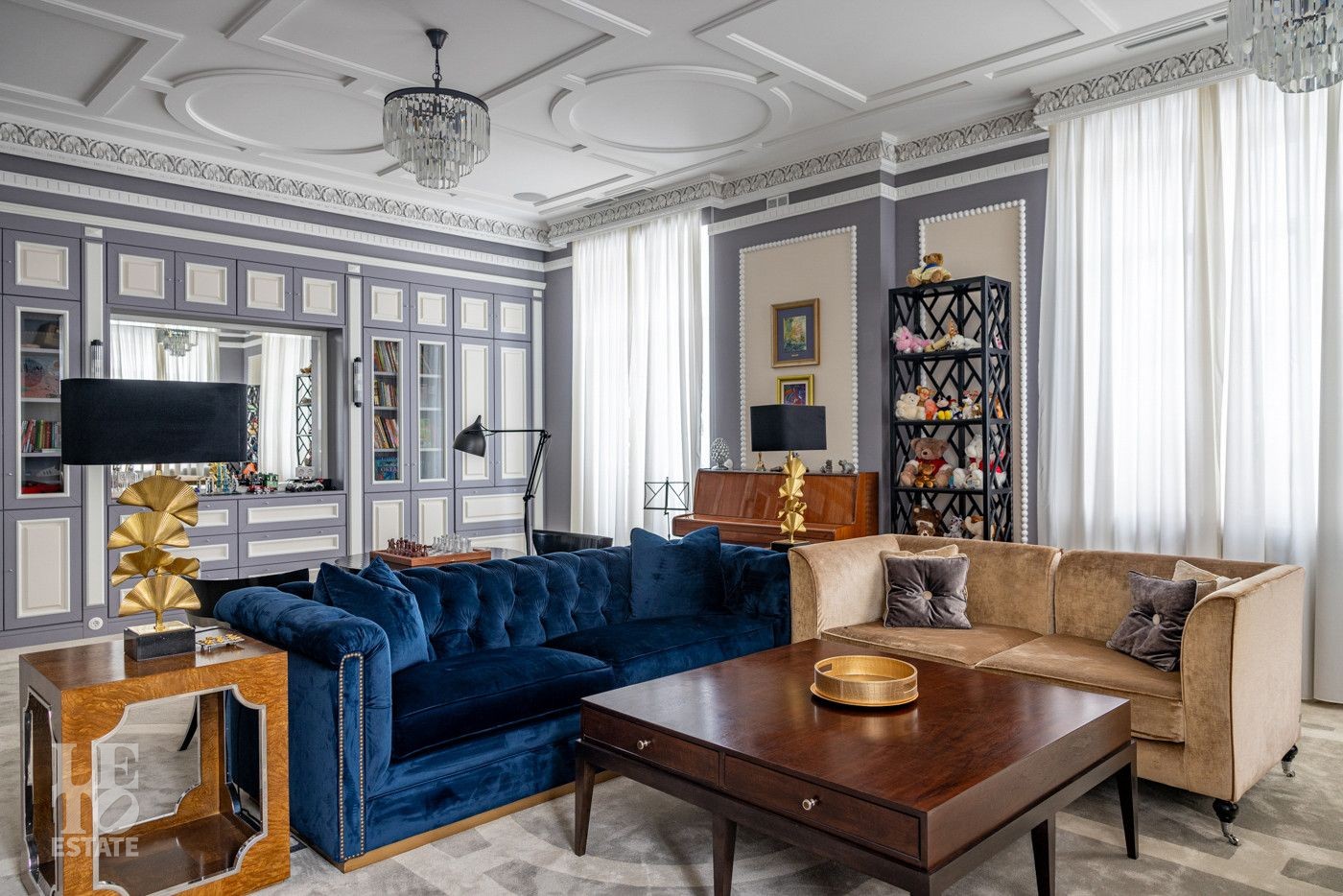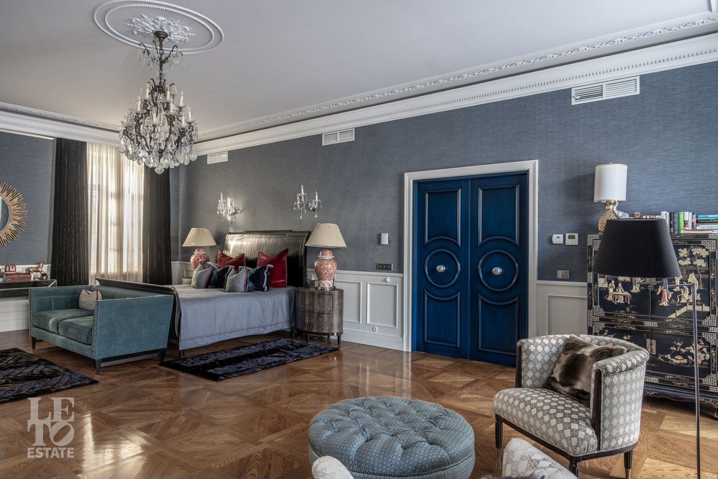 В холле вас встретит роскошная парадная лестница с балясинами из хрусталя, выполненными эксклюзивно для этого дома. Затем мы увидим просторную гостиную со вторым светом и зоной камина, профессиональную кухню с высококлассным оборудованием премиум-класса.