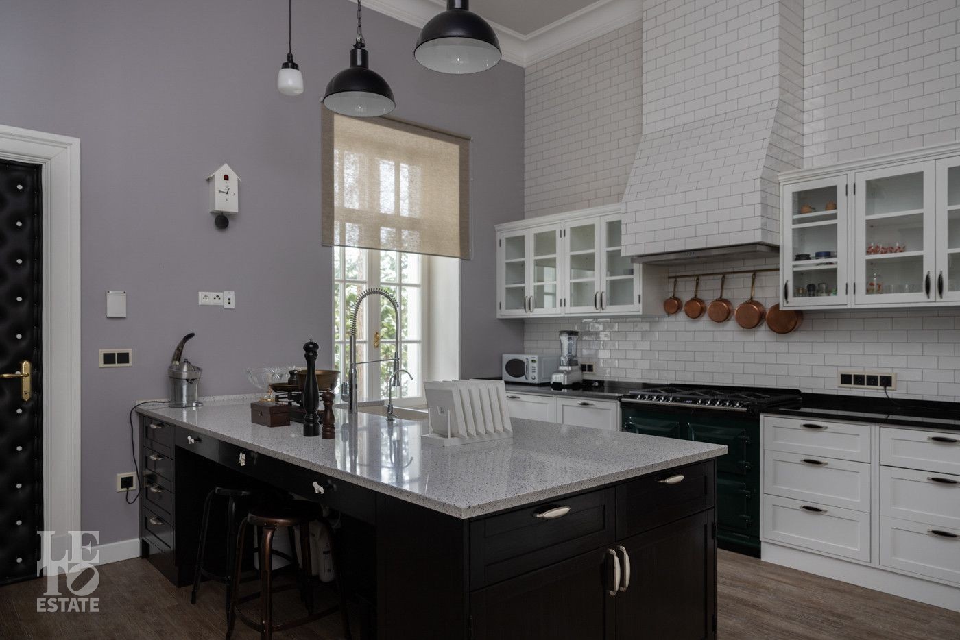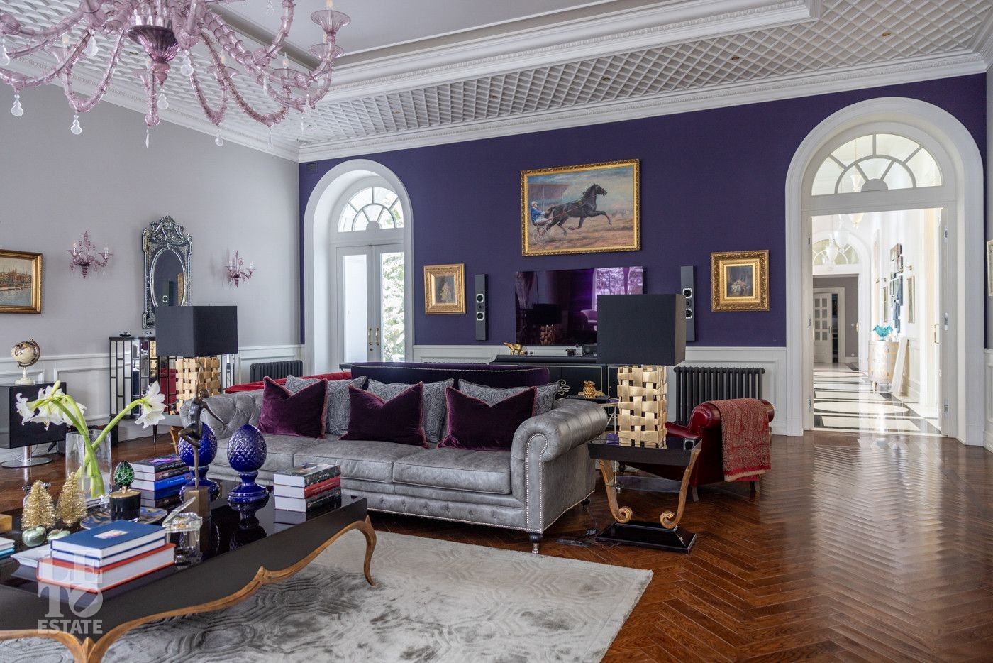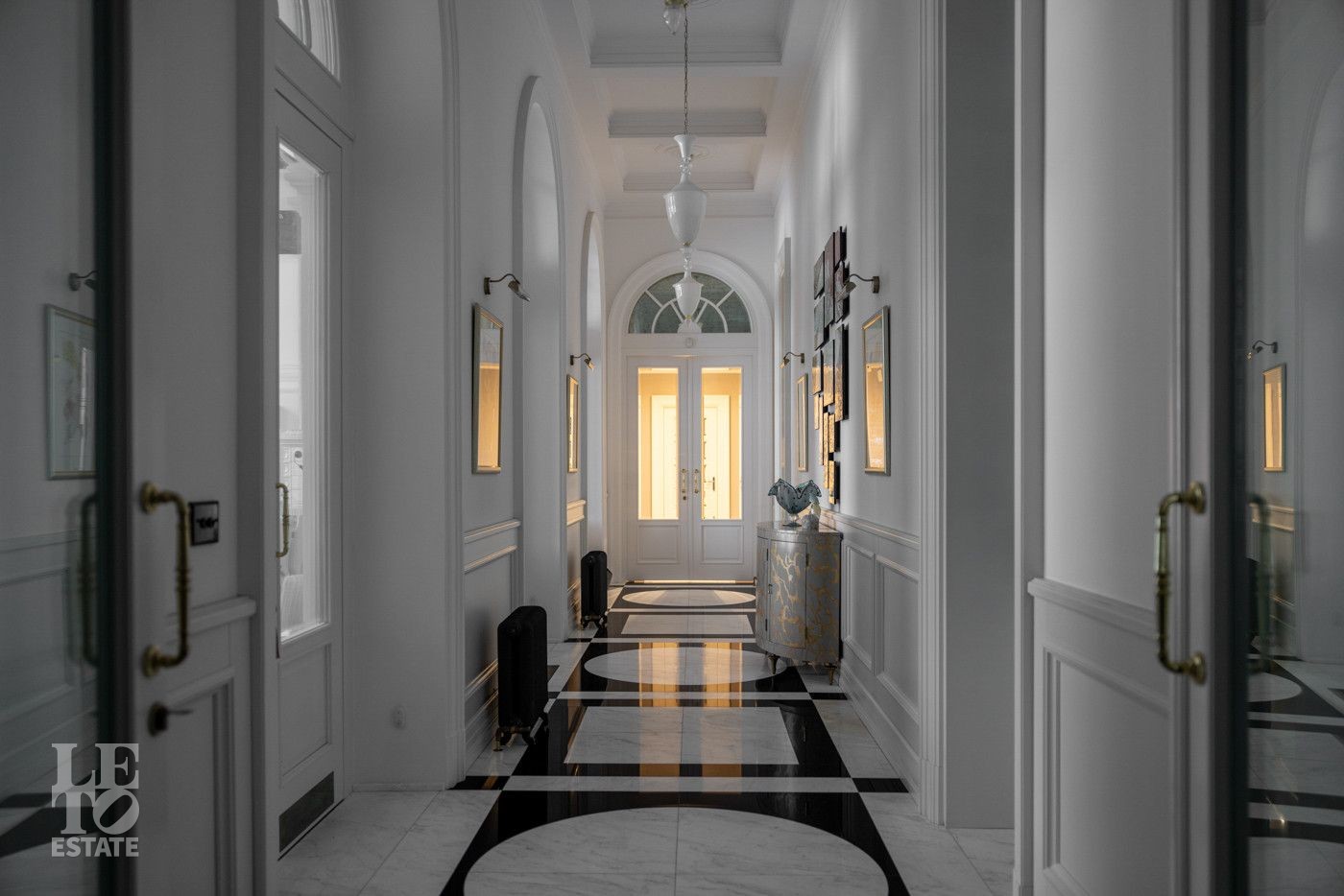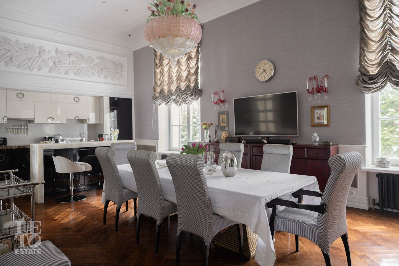 В холле вас встретит роскошная парадная лестница с балясинами из хрусталя, выполненными эксклюзивно для этого дома. Затем мы увидим просторную гостиную со вторым светом и зоной камина, профессиональную кухню с высококлассным оборудованием премиум-класса.