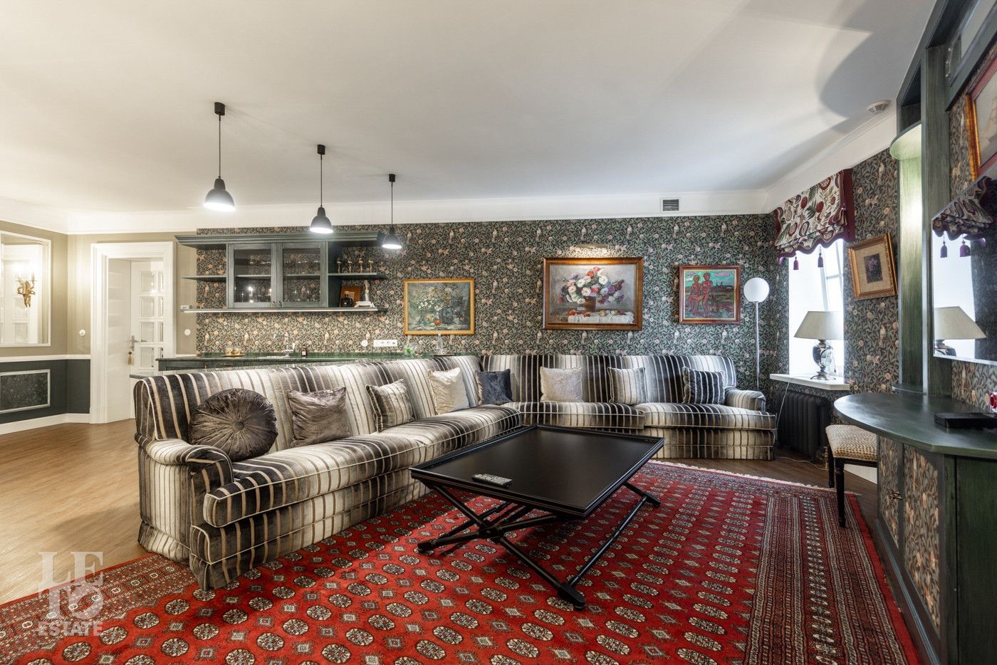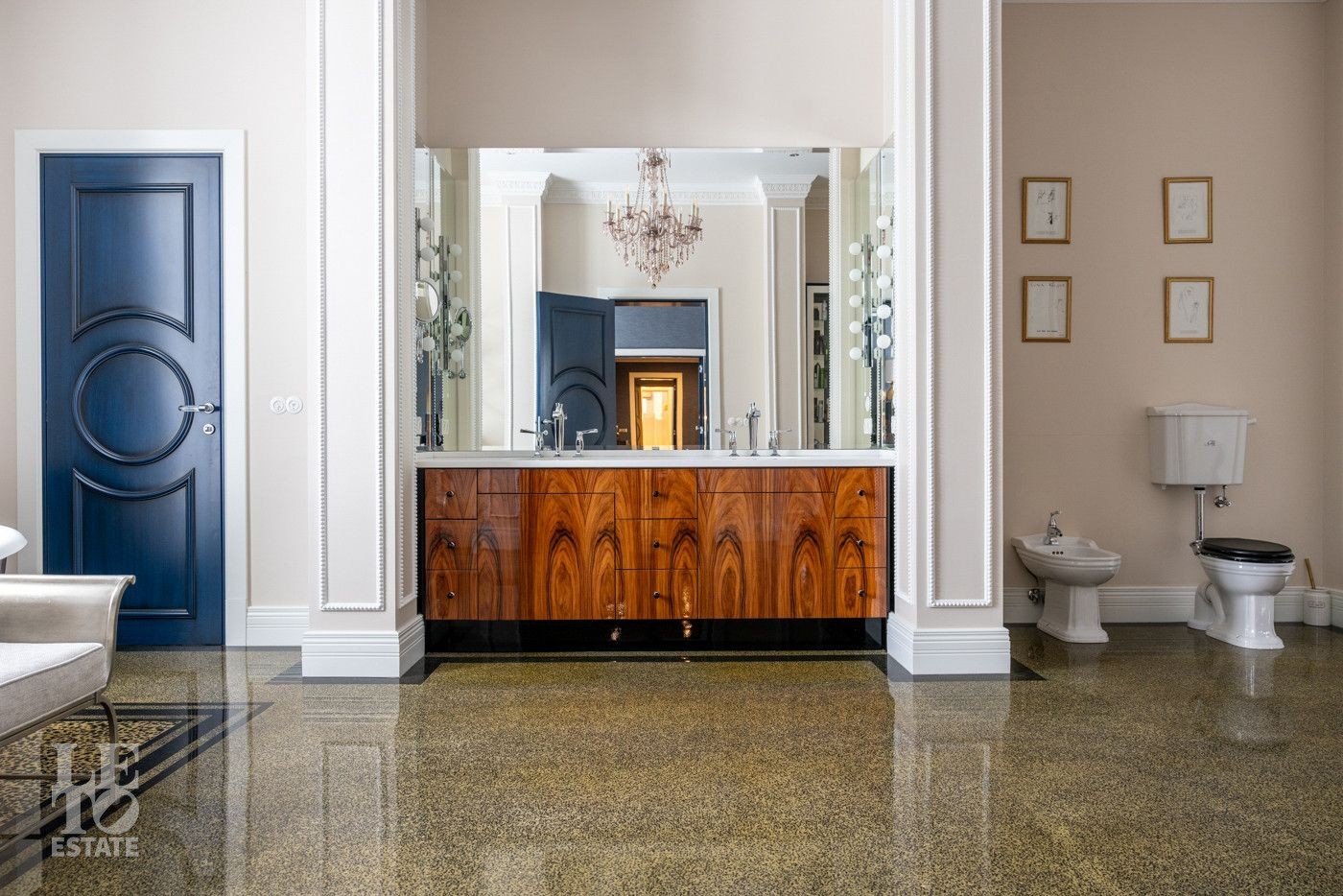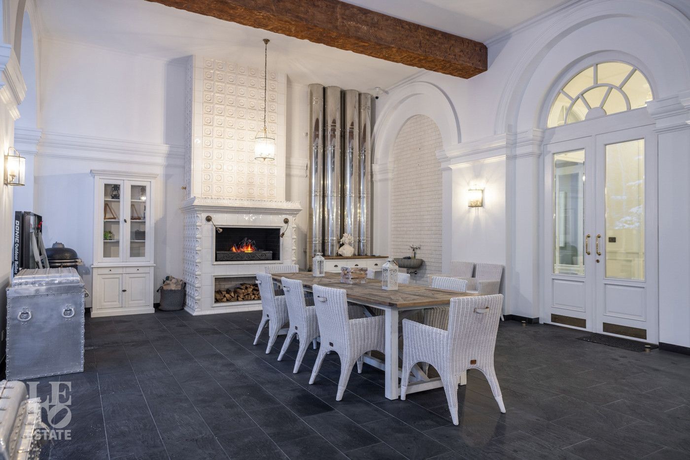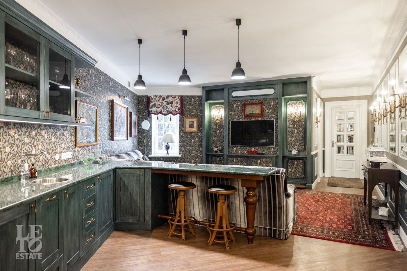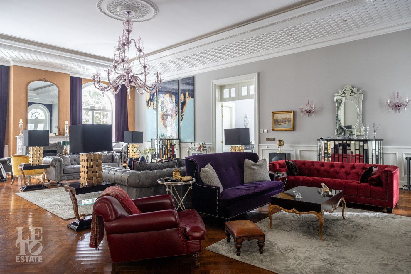 В холле вас встретит роскошная парадная лестница с балясинами из хрусталя, выполненными эксклюзивно для этого дома. Затем мы увидим просторную гостиную со вторым светом и зоной камина, профессиональную кухню с высококлассным оборудованием премиум-класса.